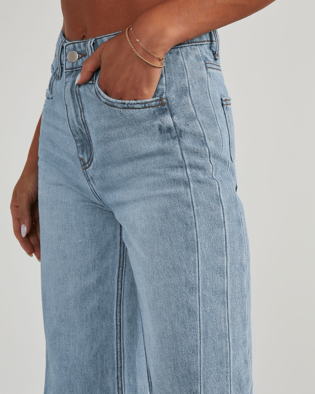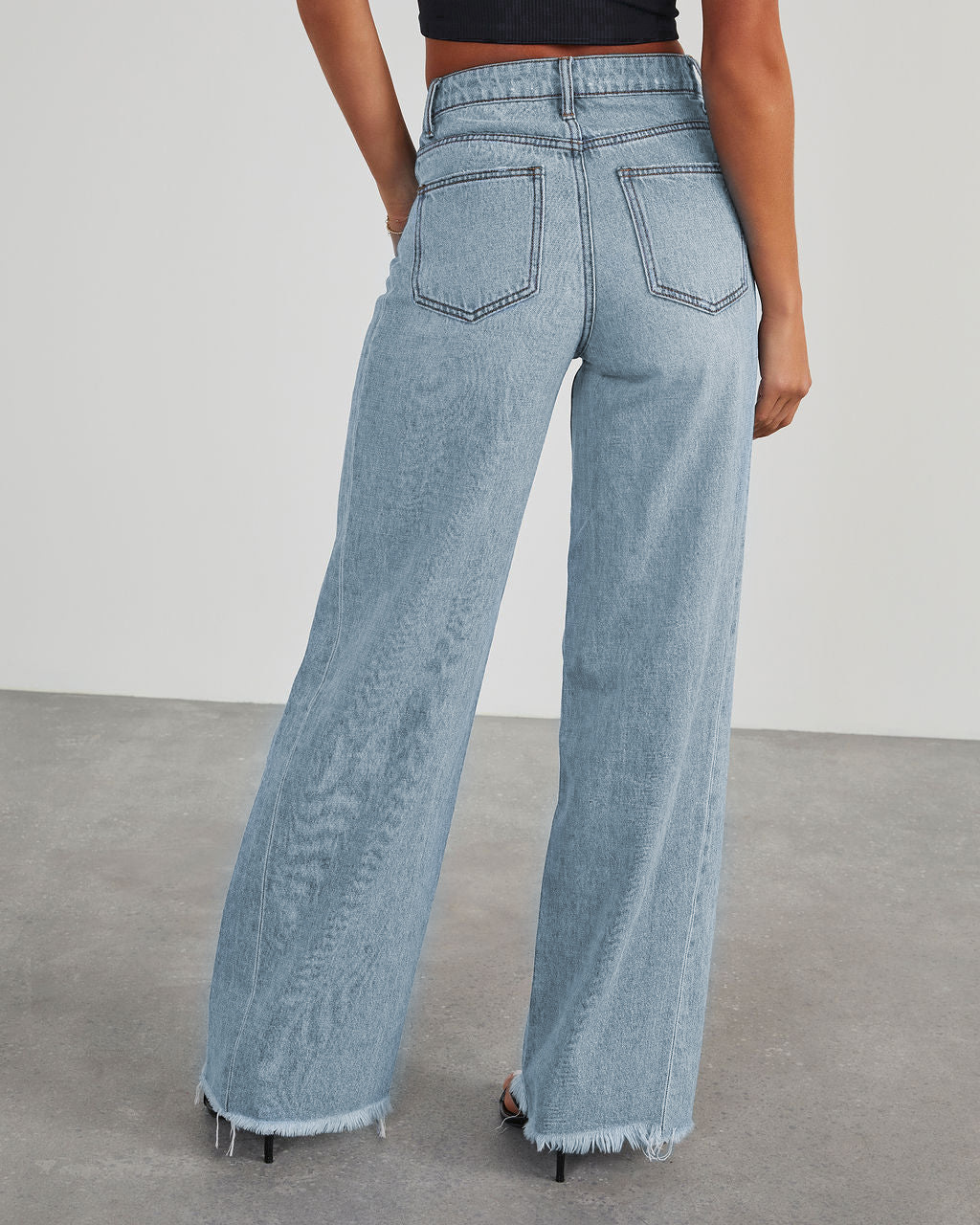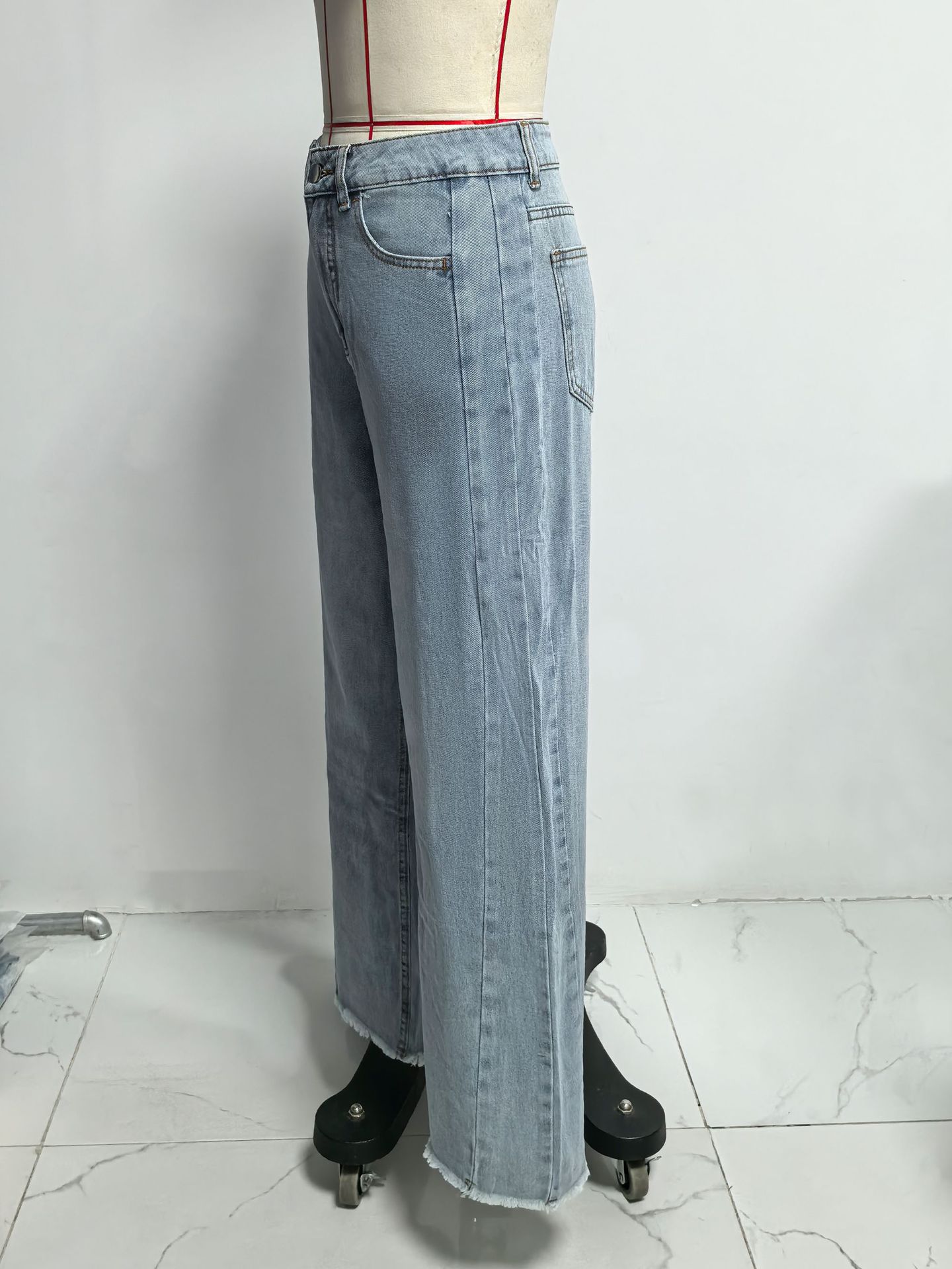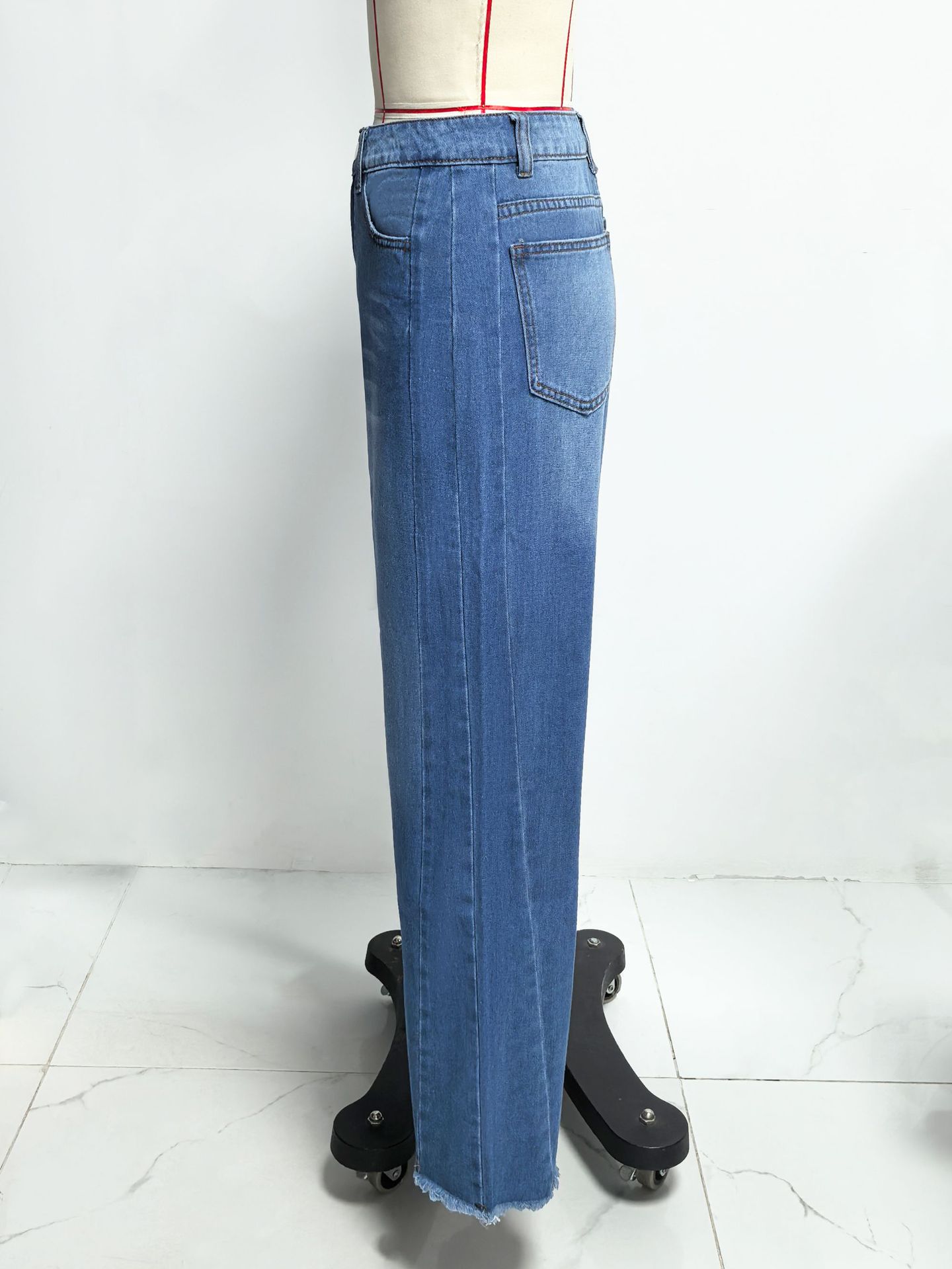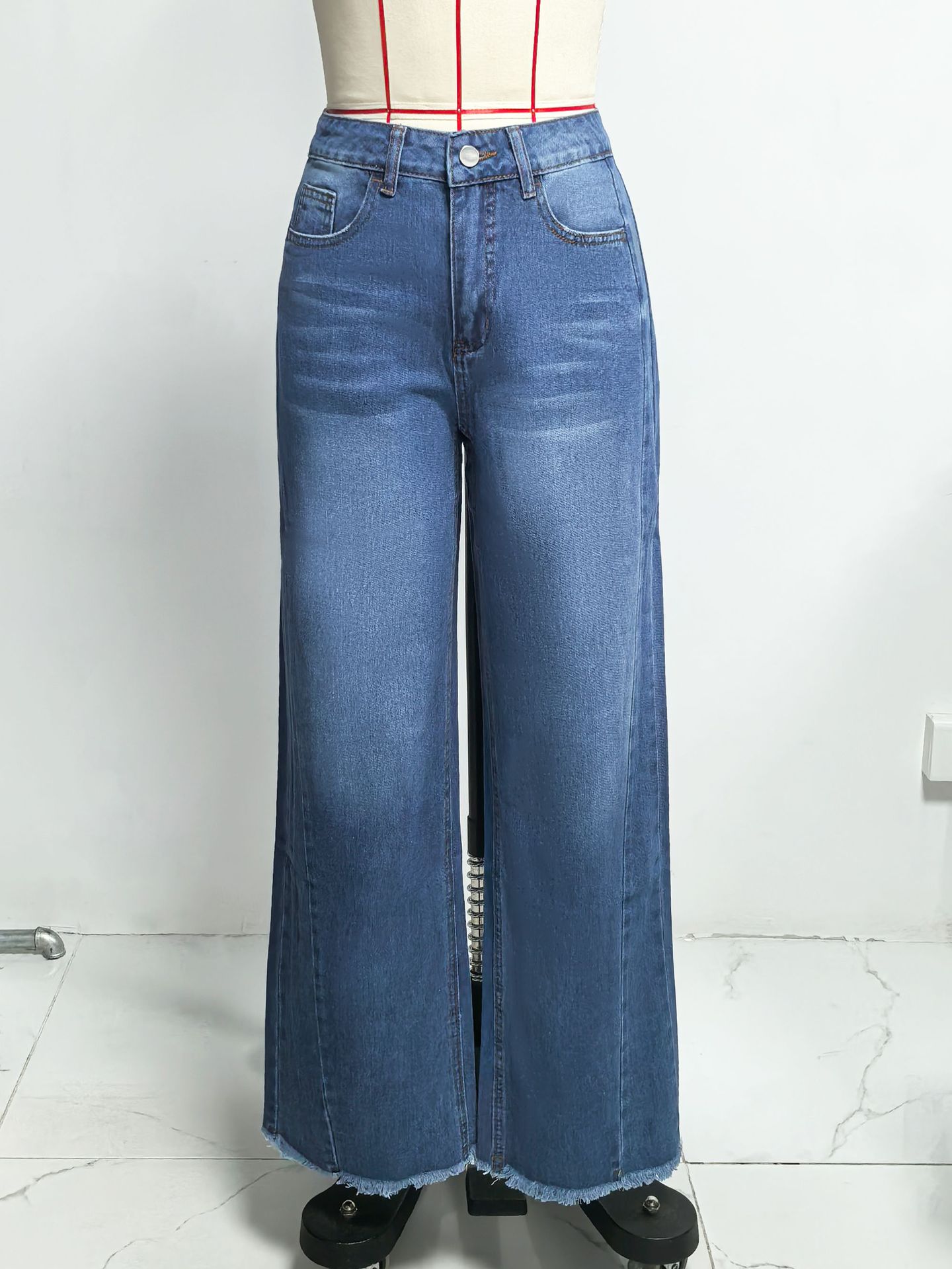 국경 간 2025 봄 신작 아마존 독립 스테이션 대외 무역 여성 데님 바지 워시 데님 와이드 레그 팬츠 재고 있음