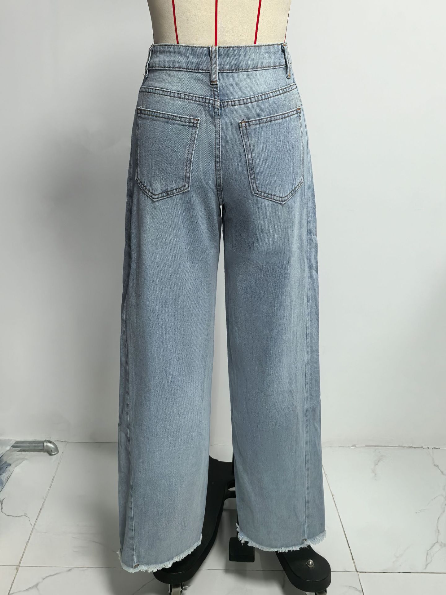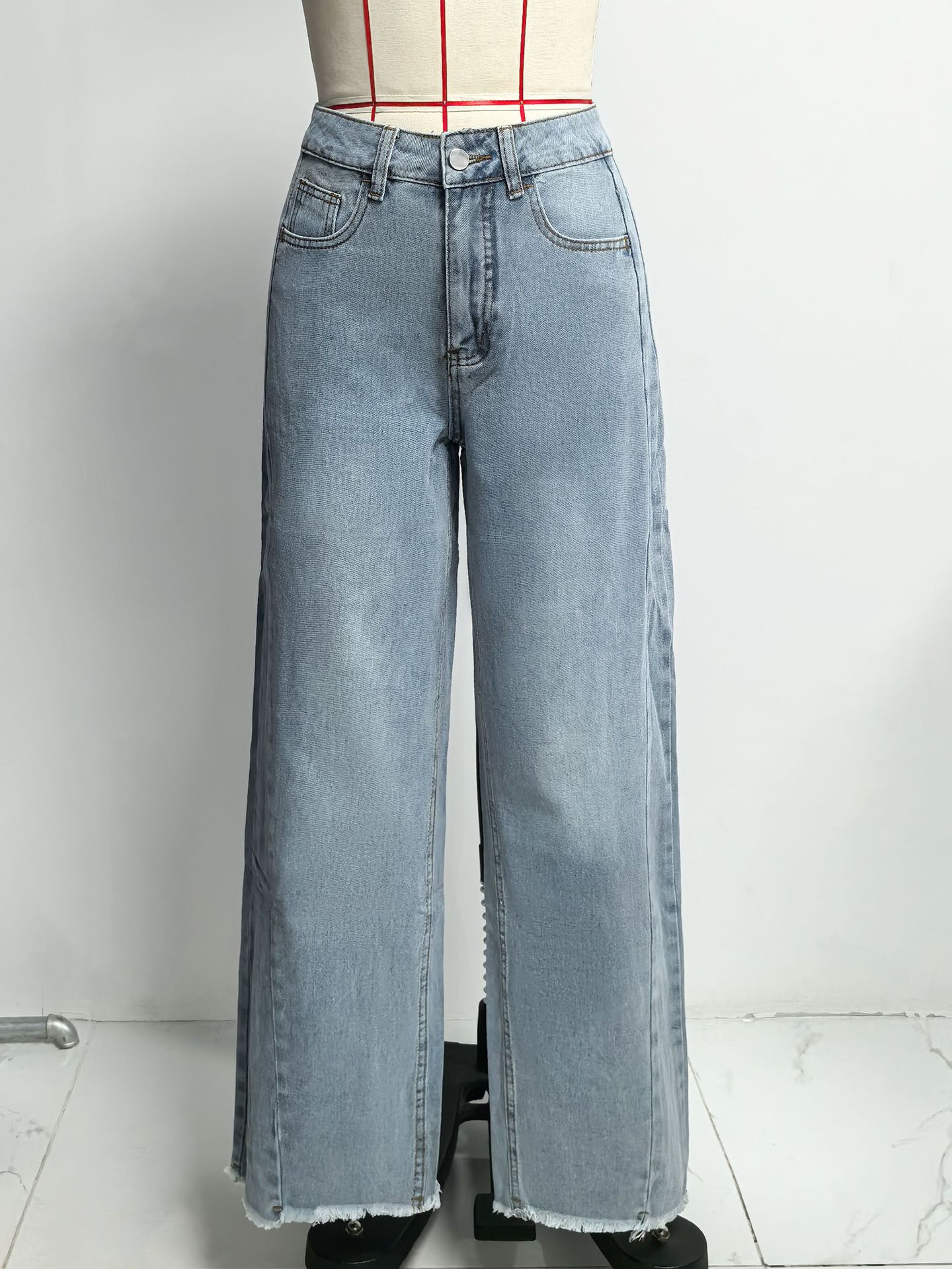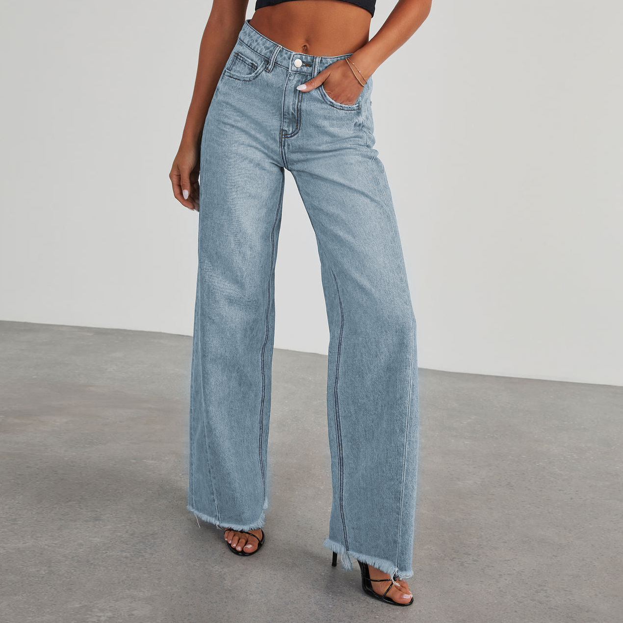 국경 간 2025 봄 신작 아마존 독립 스테이션 대외 무역 여성 데님 바지 워시 데님 와이드 레그 팬츠 재고 있음스토어 가기