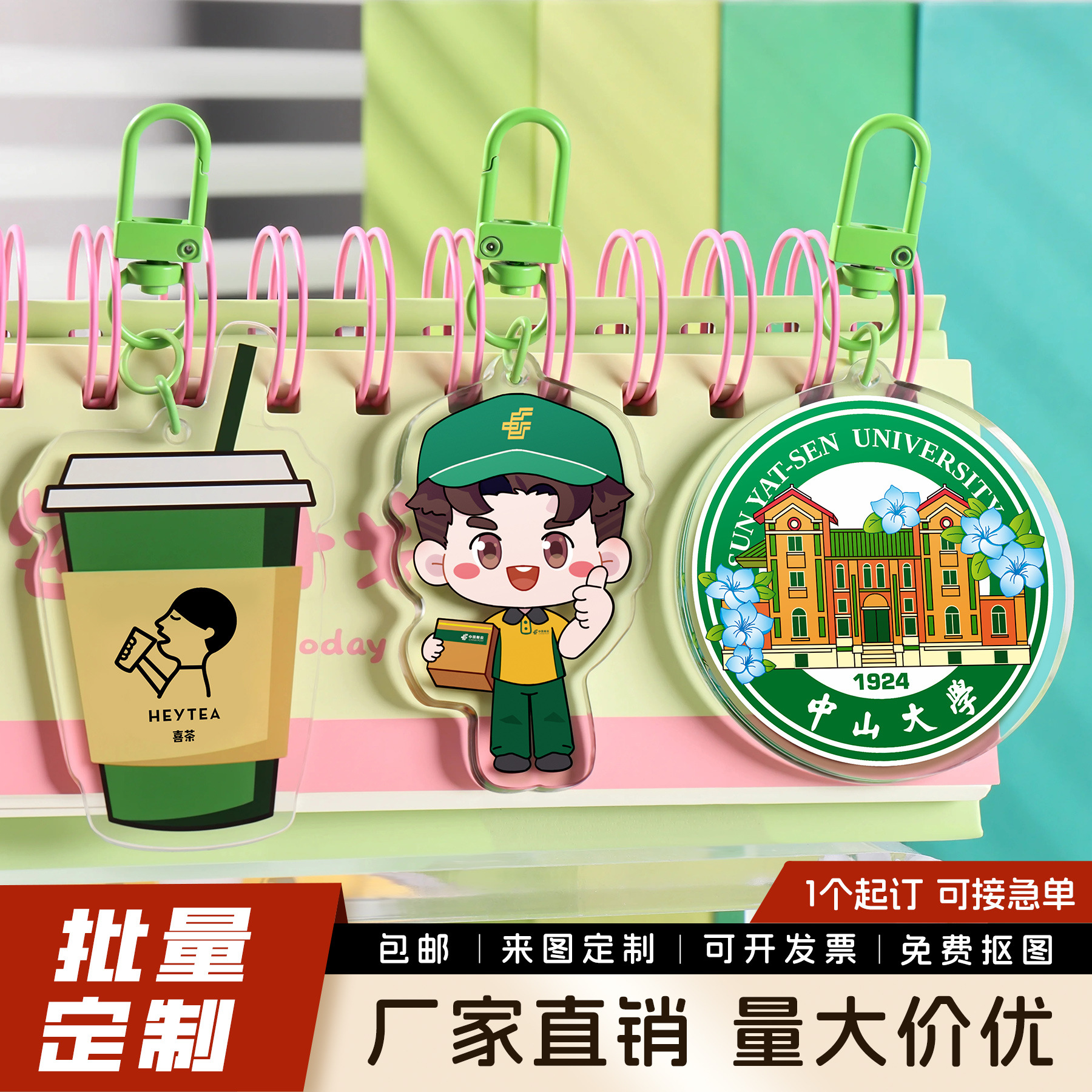 아크릴 기업 프로모션 키 체인 학교 로고 광고 체인 사진 양면 크리 에이 티브 diy 만화 펜던트스토어 가기