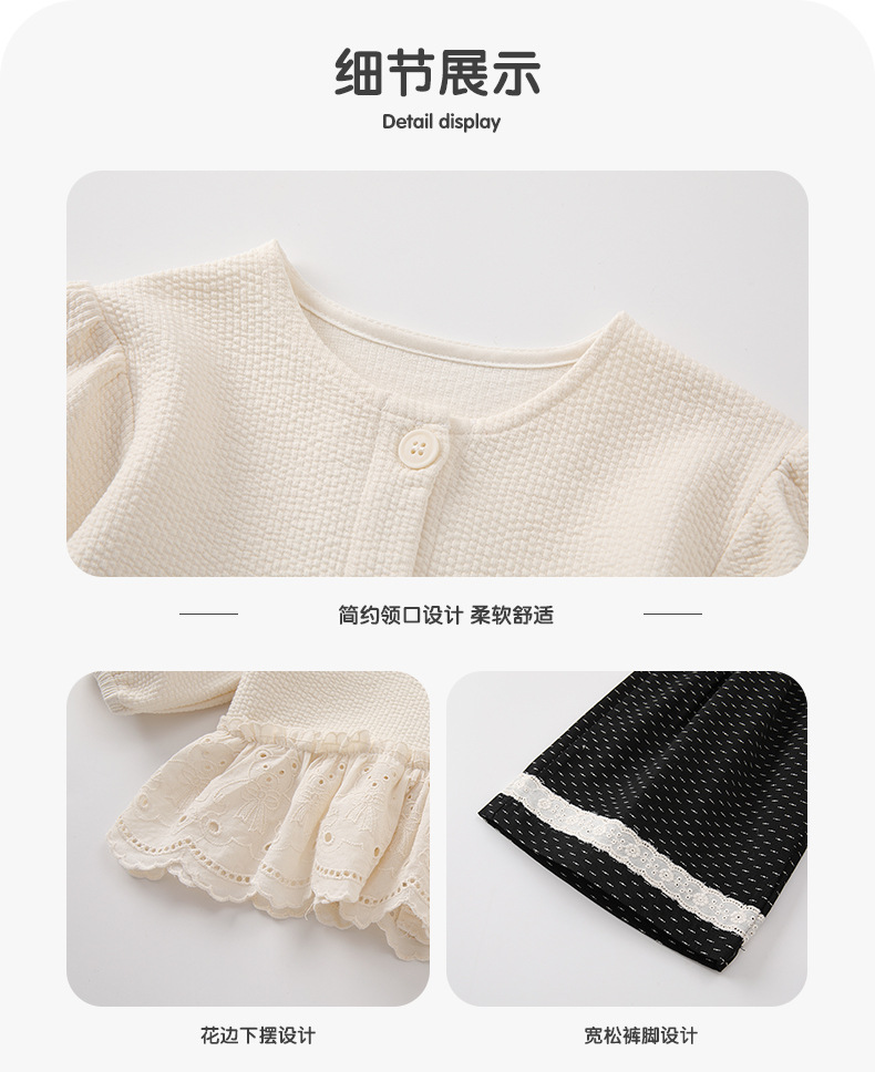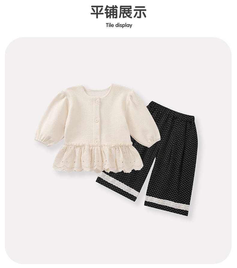 2025 새로운 가을 스타일 유아용 패치워크 재킷 정장 아기 소녀 유행 카디건 폴카 도트 와이드 팬츠 투피스 세트