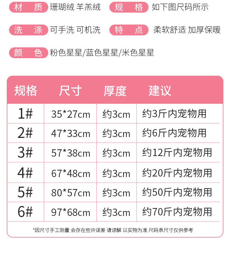 • 핑크 스타-애완 동물 수면 매트