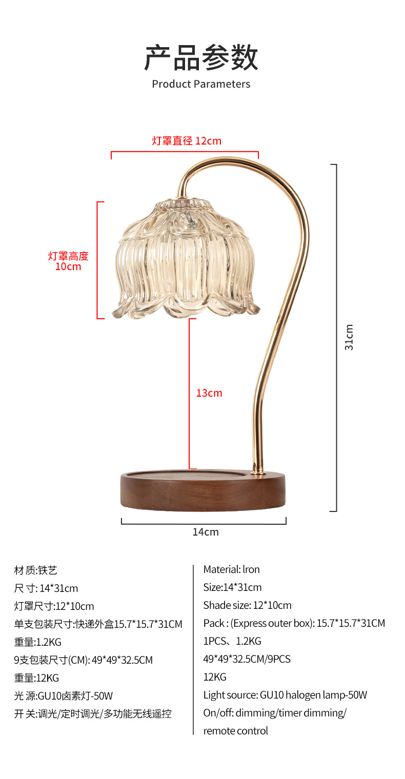 • 여덟 꽃잎 연꽃 호박 갓 + 금 기둥 + 둥근 호두 + 타이머 조광기 스위치