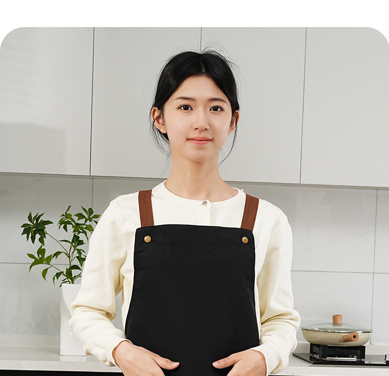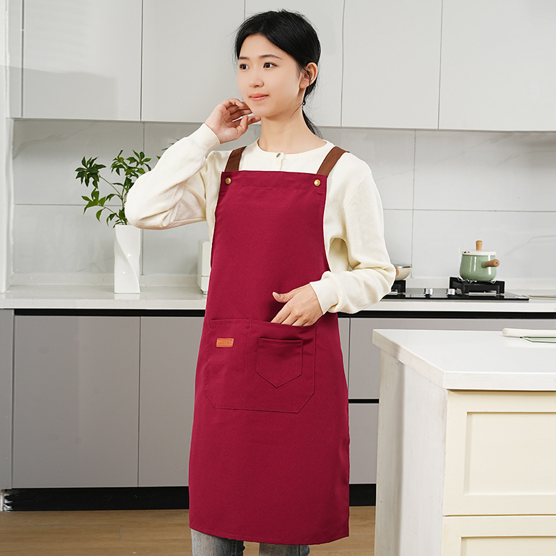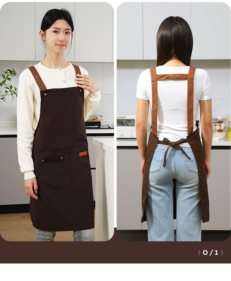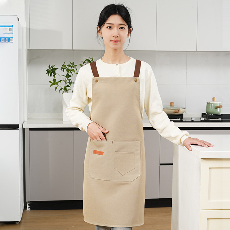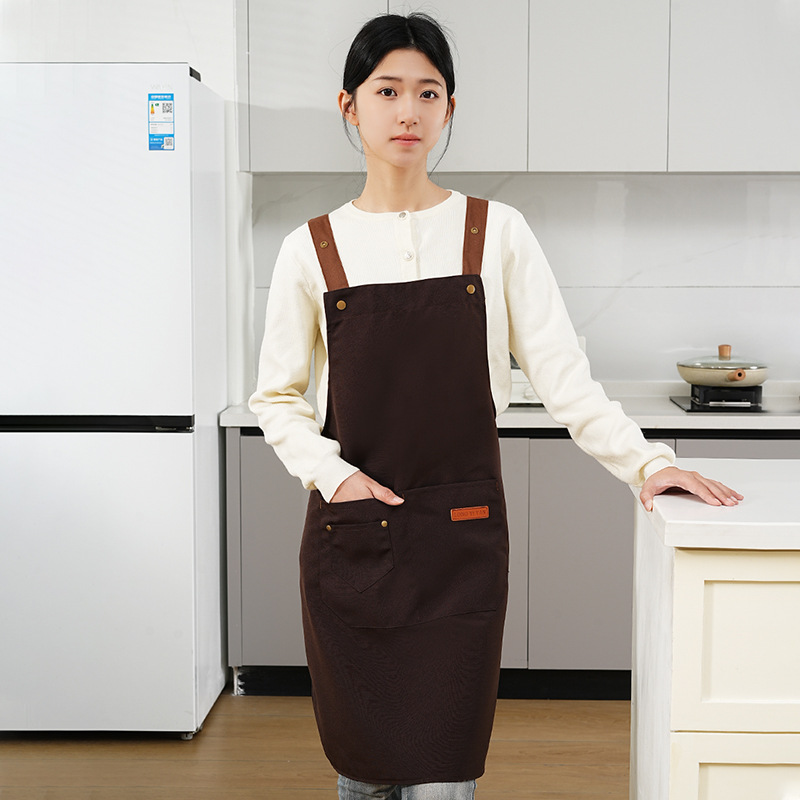 커피숍 여성을 위한 방수 및 방유 로고 프린팅이 있는 여성용 서스펜더 앞치마, 인터넷 연예인 레스토랑 여성 작업복, 주머니가 있는 캔버스
