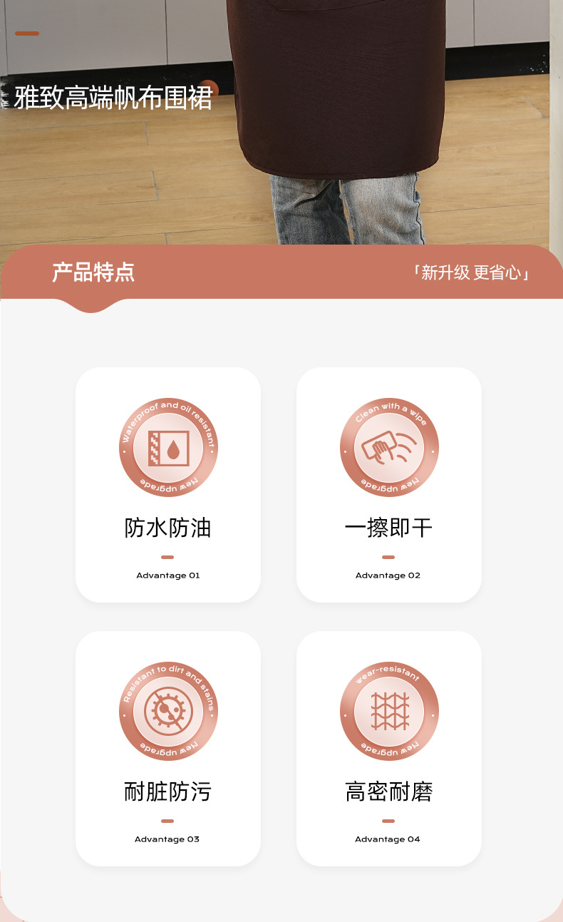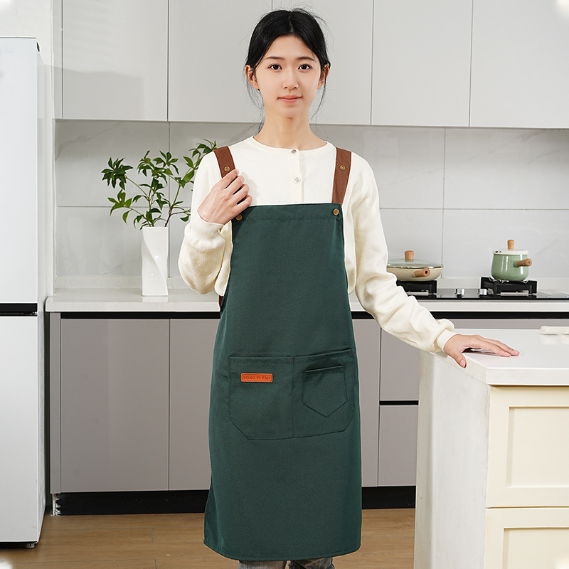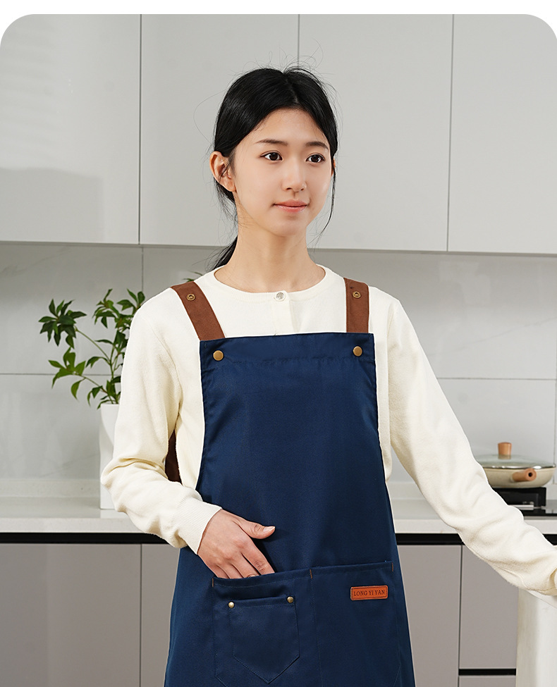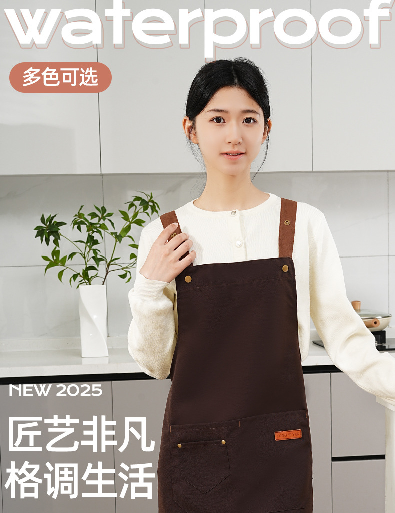 커피숍 여성을 위한 방수 및 방유 로고 프린팅이 있는 여성용 서스펜더 앞치마, 인터넷 연예인 레스토랑 여성 작업복, 주머니가 있는 캔버스