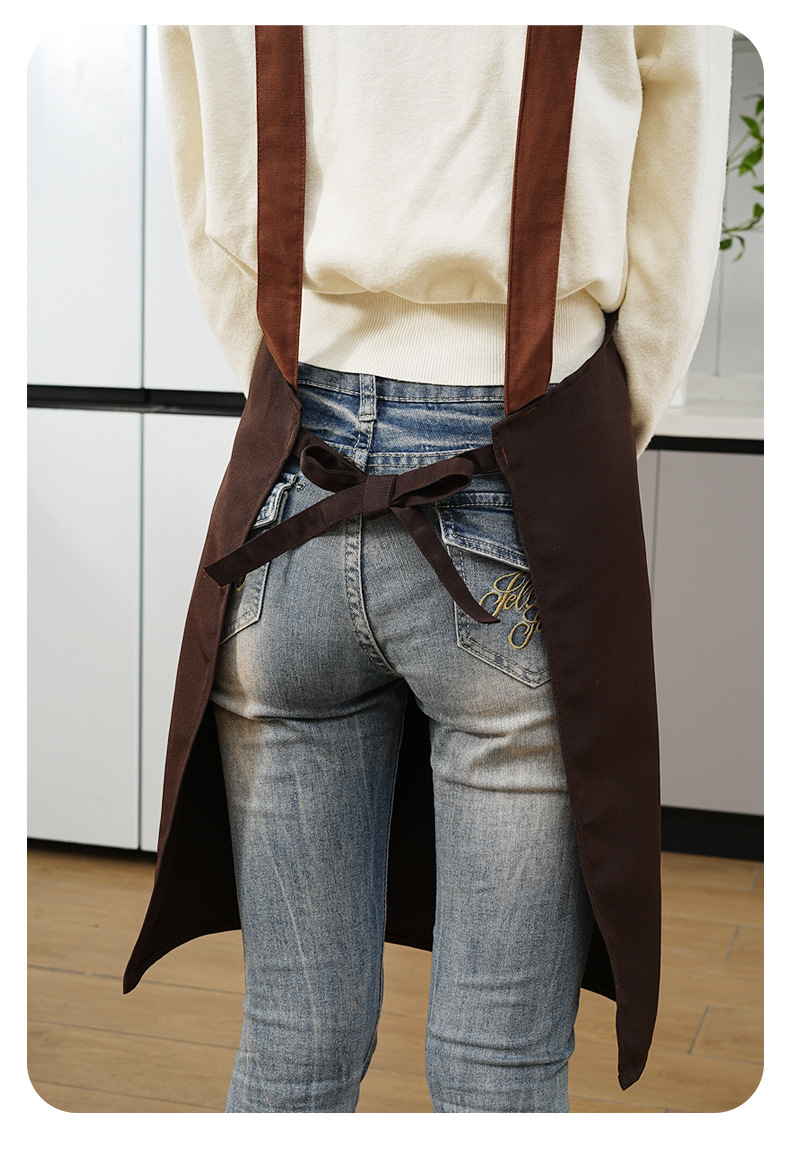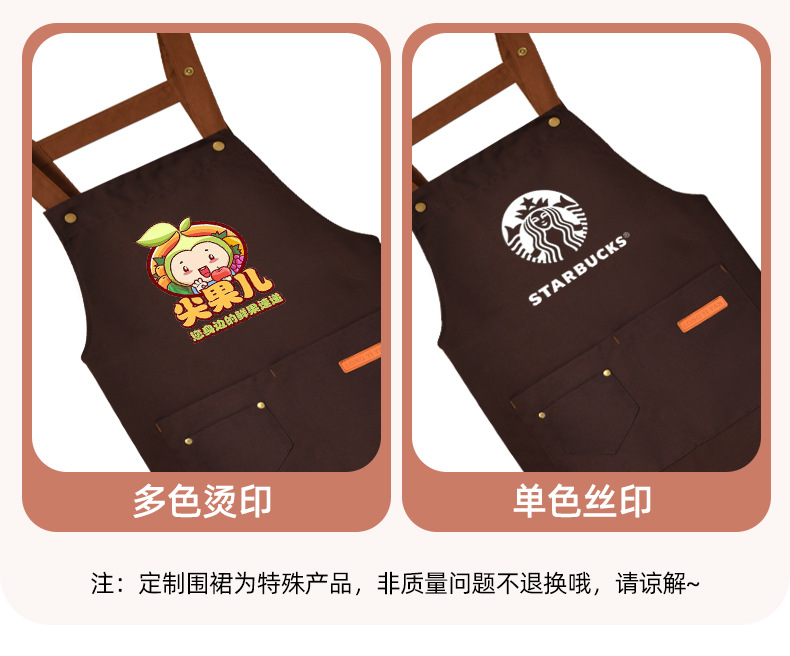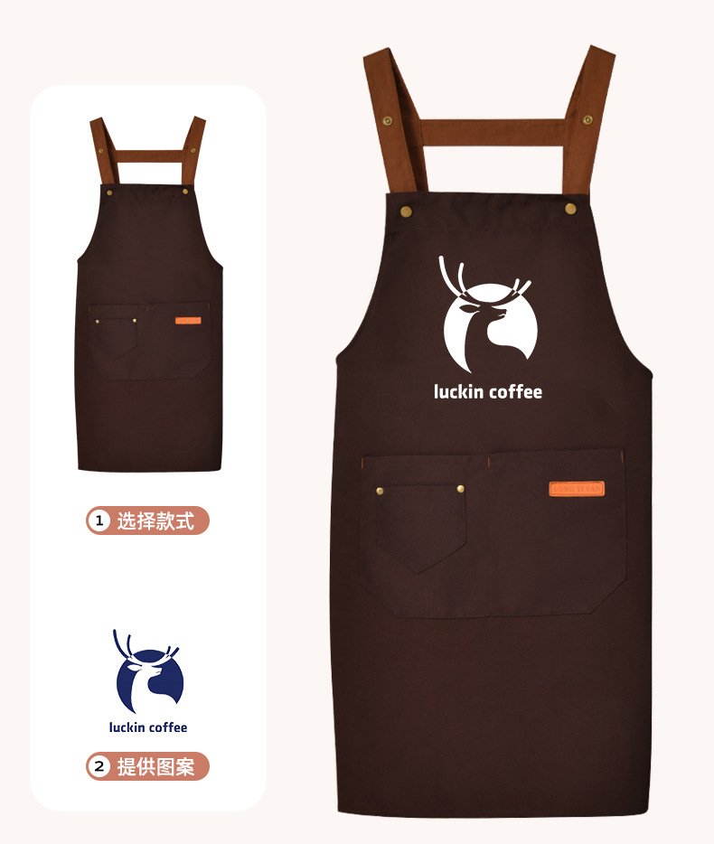 커피숍 여성을 위한 방수 및 방유 로고 프린팅이 있는 여성용 서스펜더 앞치마, 인터넷 연예인 레스토랑 여성 작업복, 주머니가 있는 캔버스스토어 가기