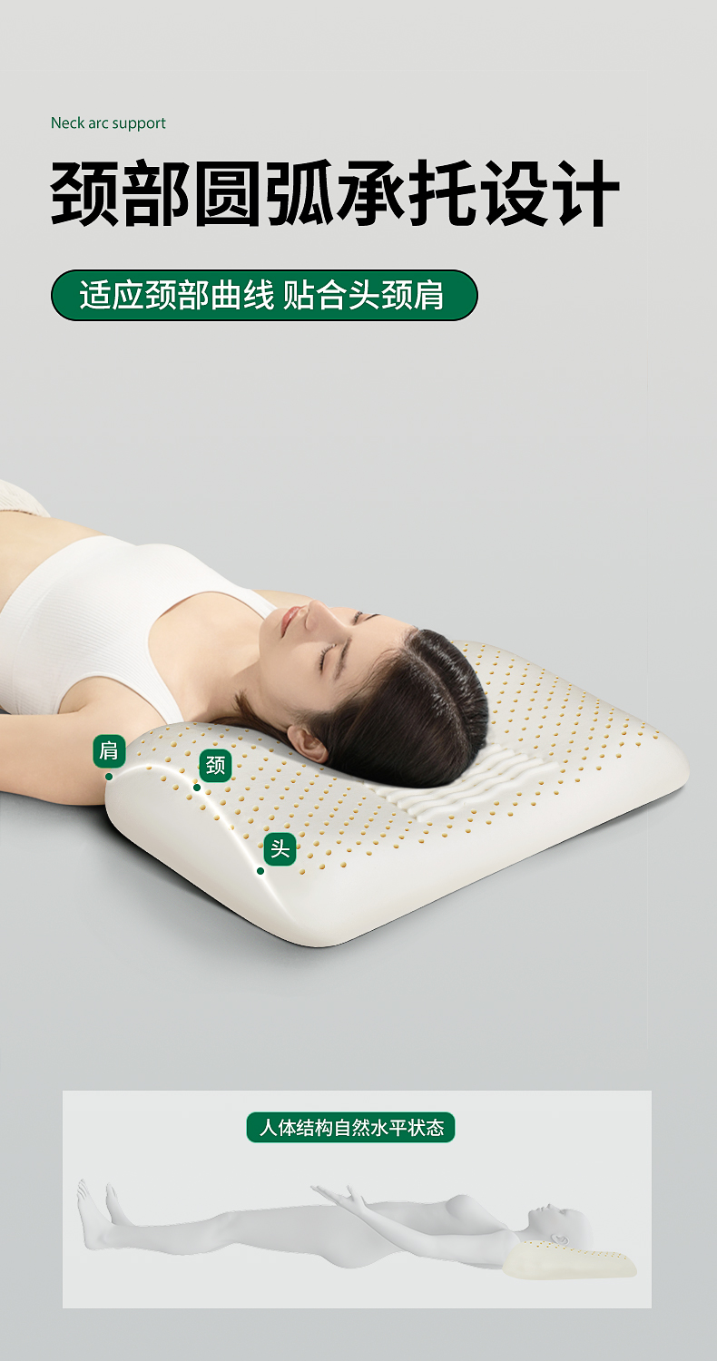 • 泰国乳胶护颈枕(配2个浅灰棉枕套)₪