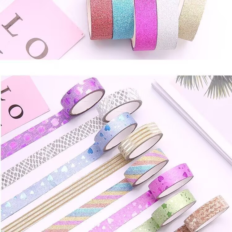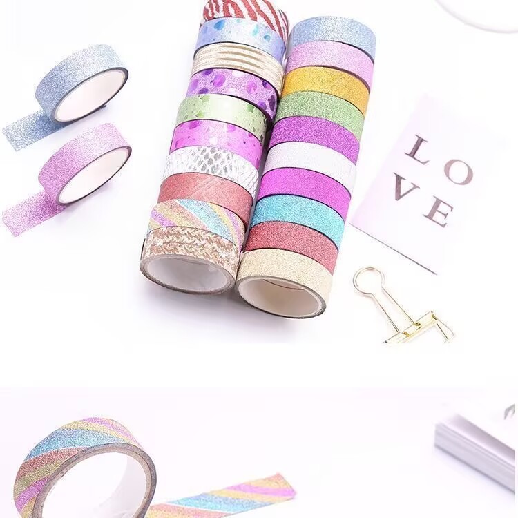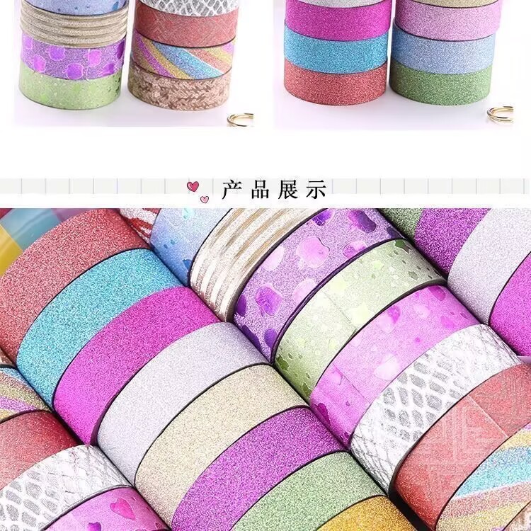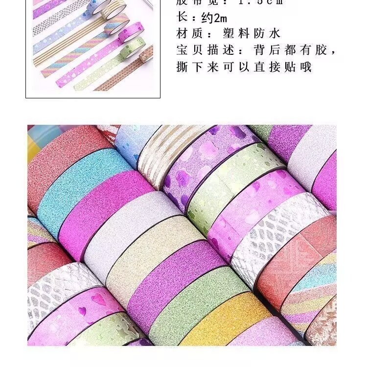 다채로운 반짝이 테이프 크리 에이 티브 반짝이 골드 파우더 테이프 어린이 DIY 수제 장식 핸드북 테이프 만화 스티커