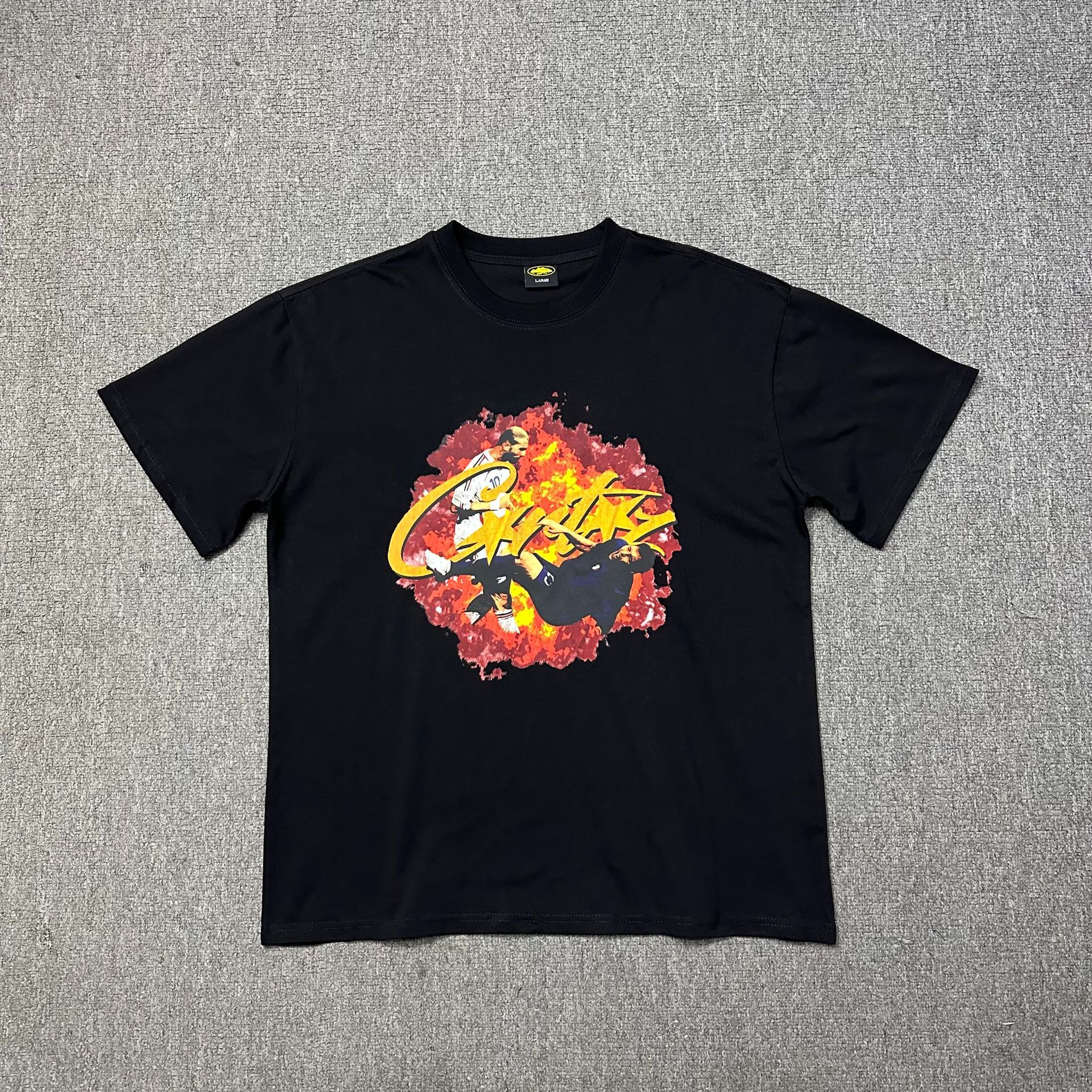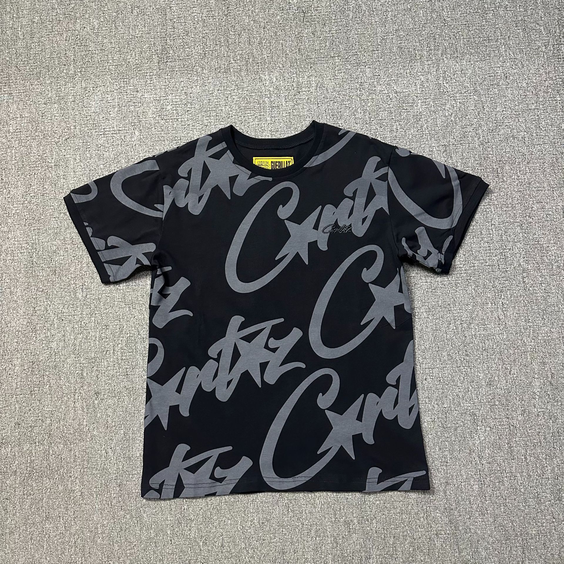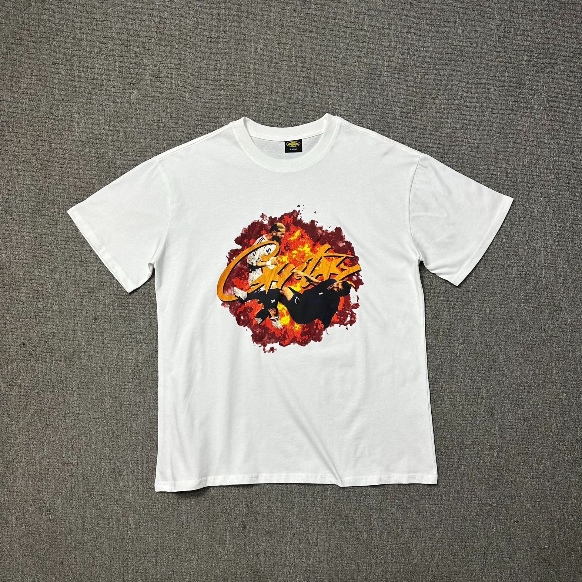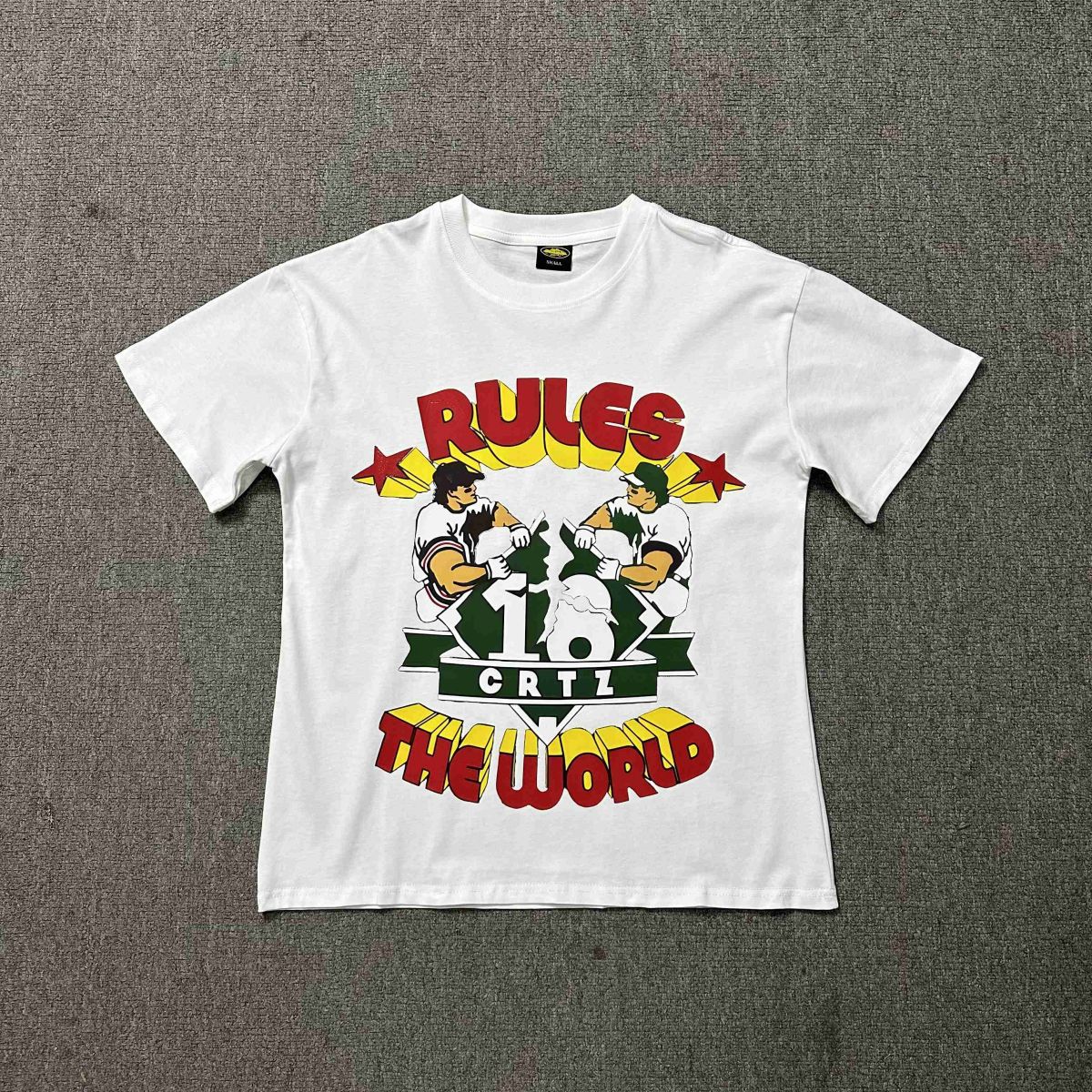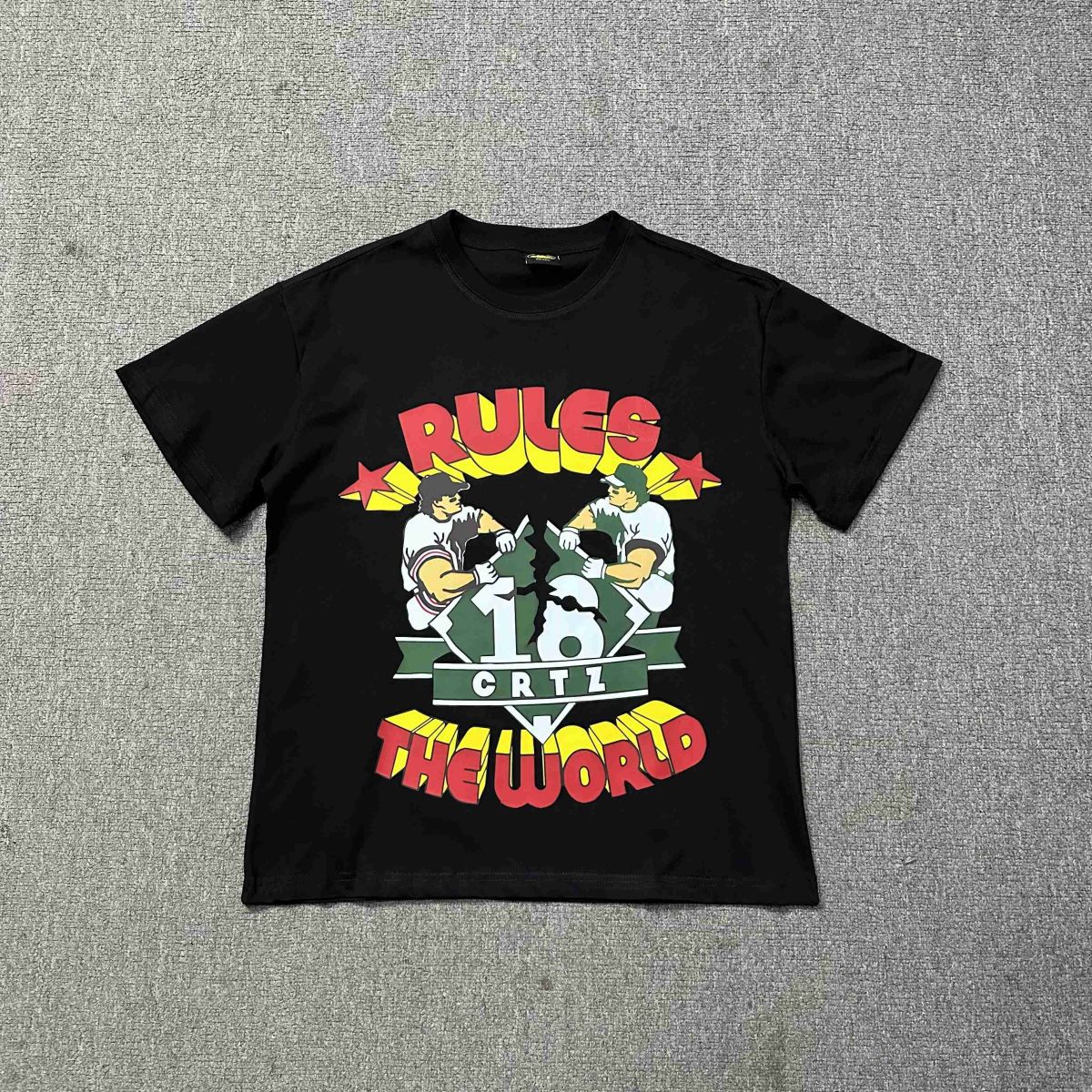 Corteiz 시리즈 폭탄 프린트 반팔 스트리트 하이 스트리트 유럽과 미국 스타일의 캐주얼 힙합 남성과 여성 반팔 탑