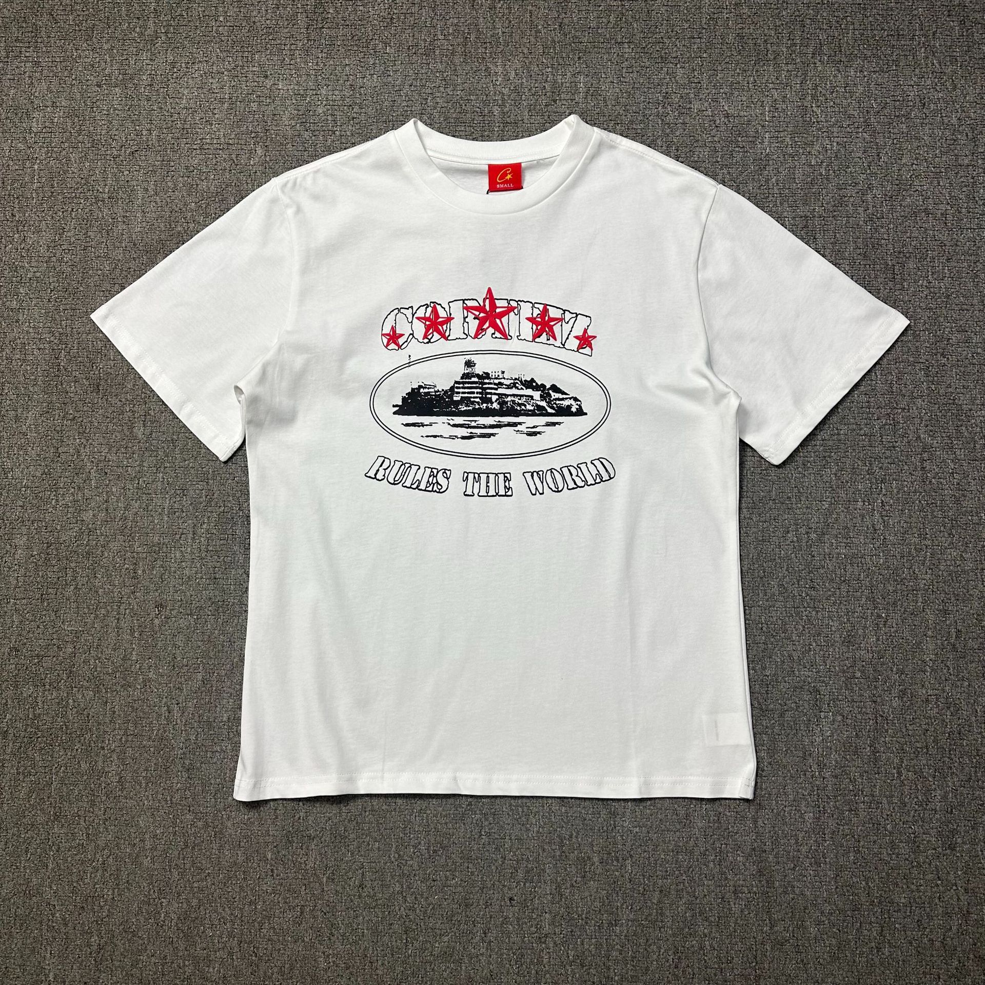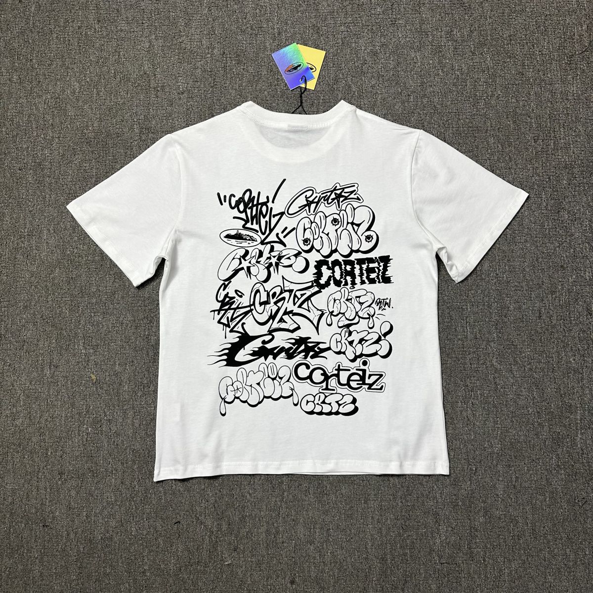 Corteiz 시리즈 폭탄 프린트 반팔 스트리트 하이 스트리트 유럽과 미국 스타일의 캐주얼 힙합 남성과 여성 반팔 탑스토어 가기
