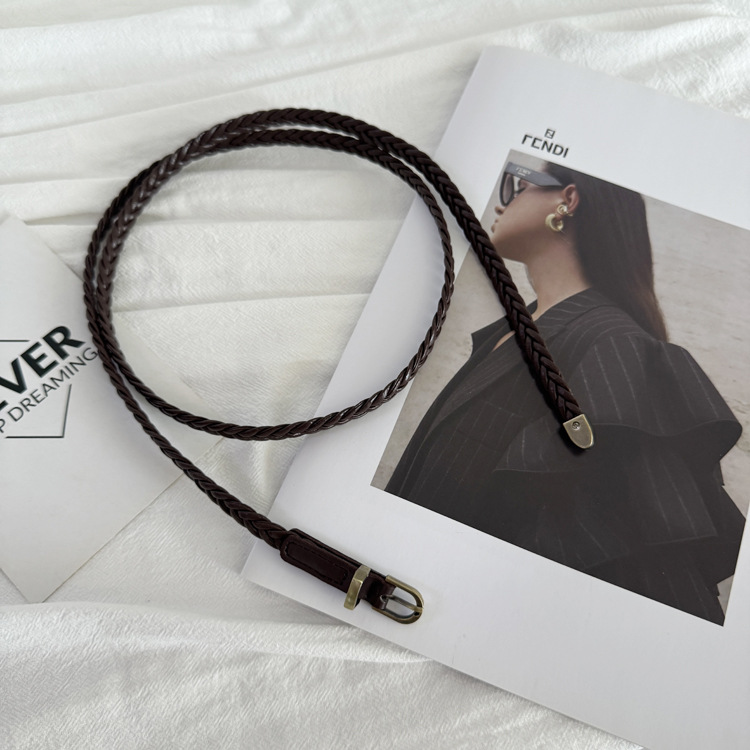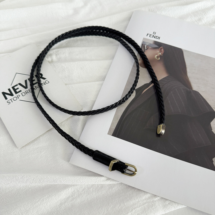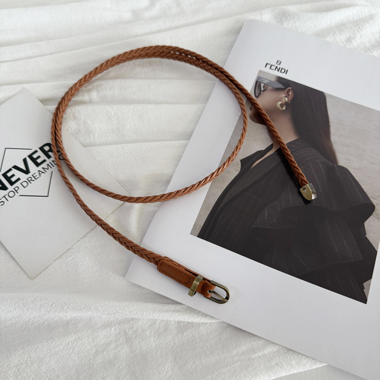 여성용 드레스용 복고풍 직조 벨트, 허리 조절 기능, 심플하고 다재다능한 장식 핀 버클, 얇은 작은 벨트