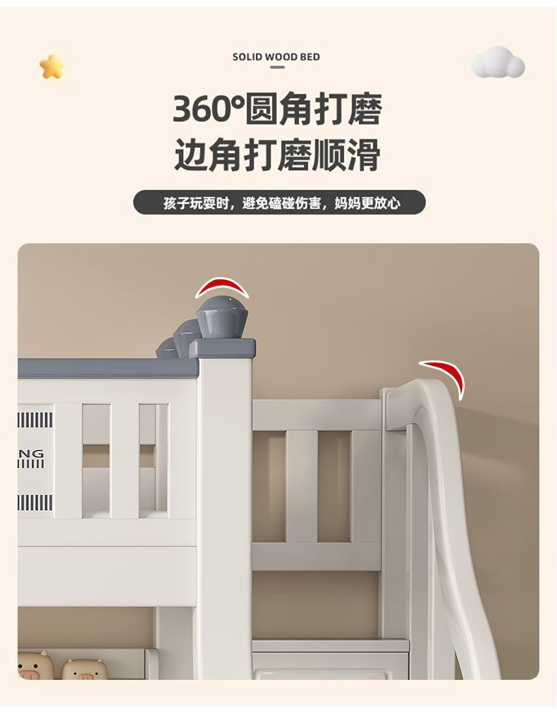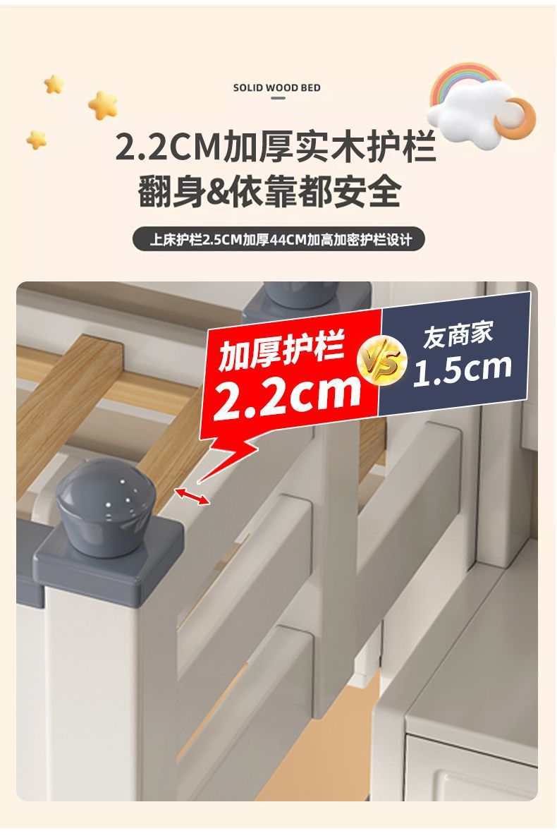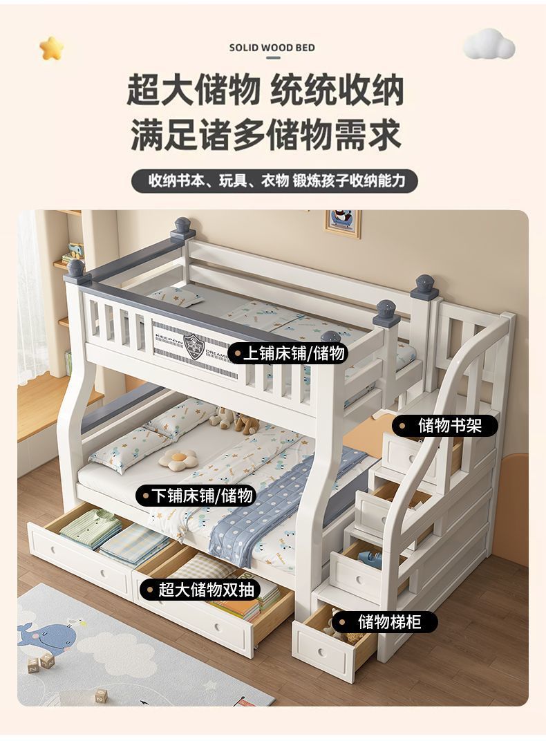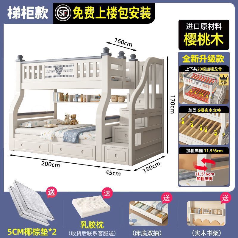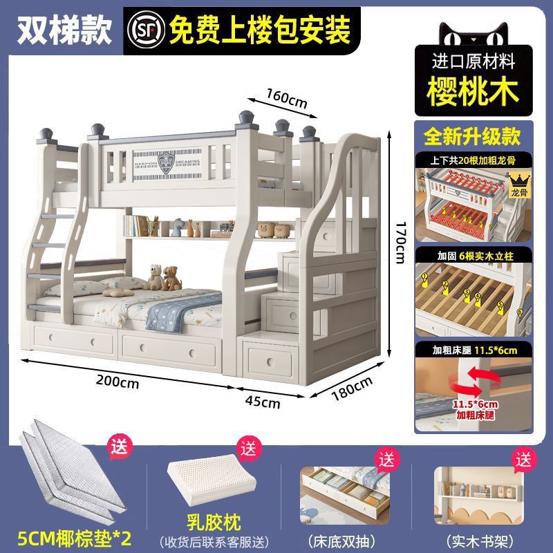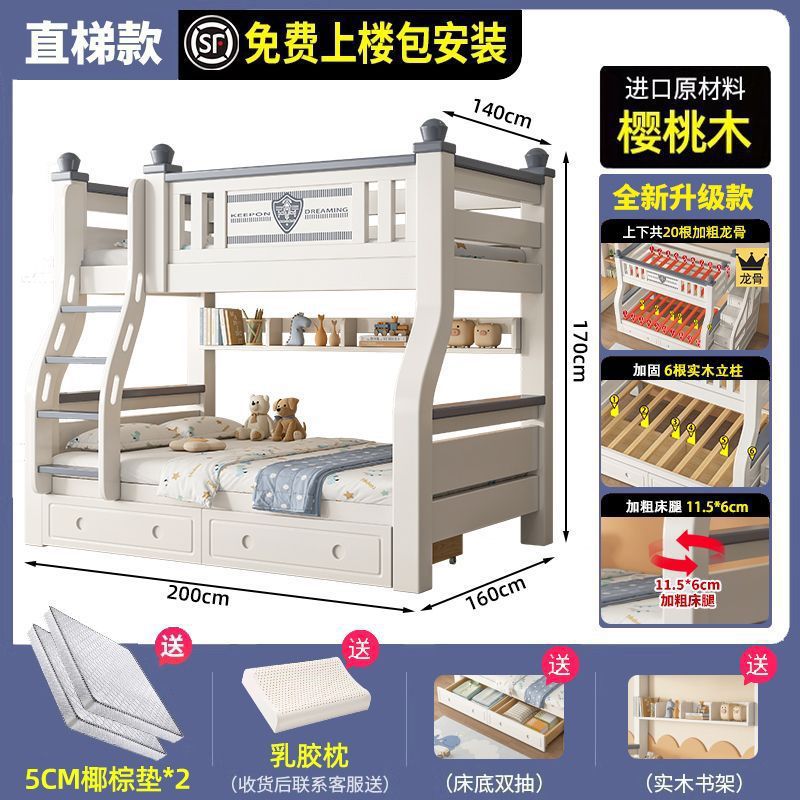 체리우드 어린이 이층침대 이층침대 2층 이층침대 원목 성인용 이층침대 두꺼운 높낮이 어린이침대