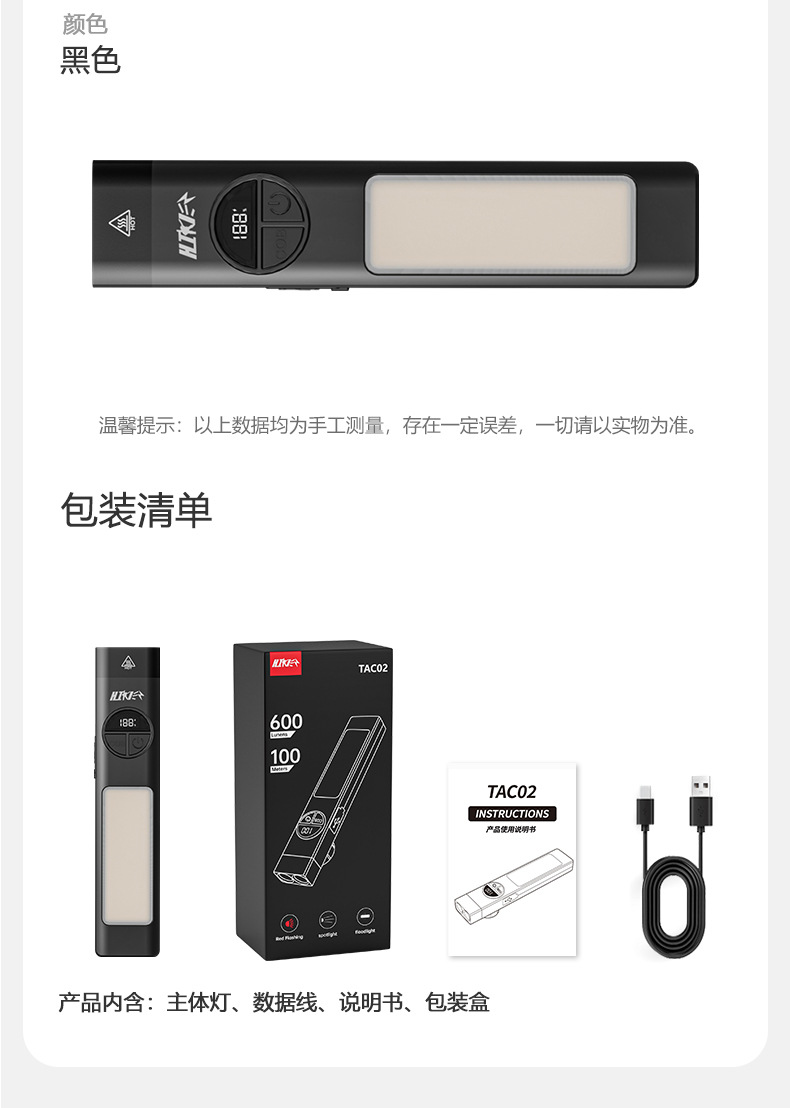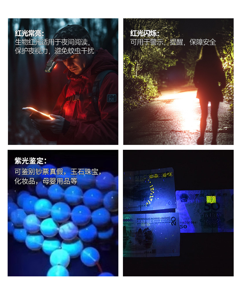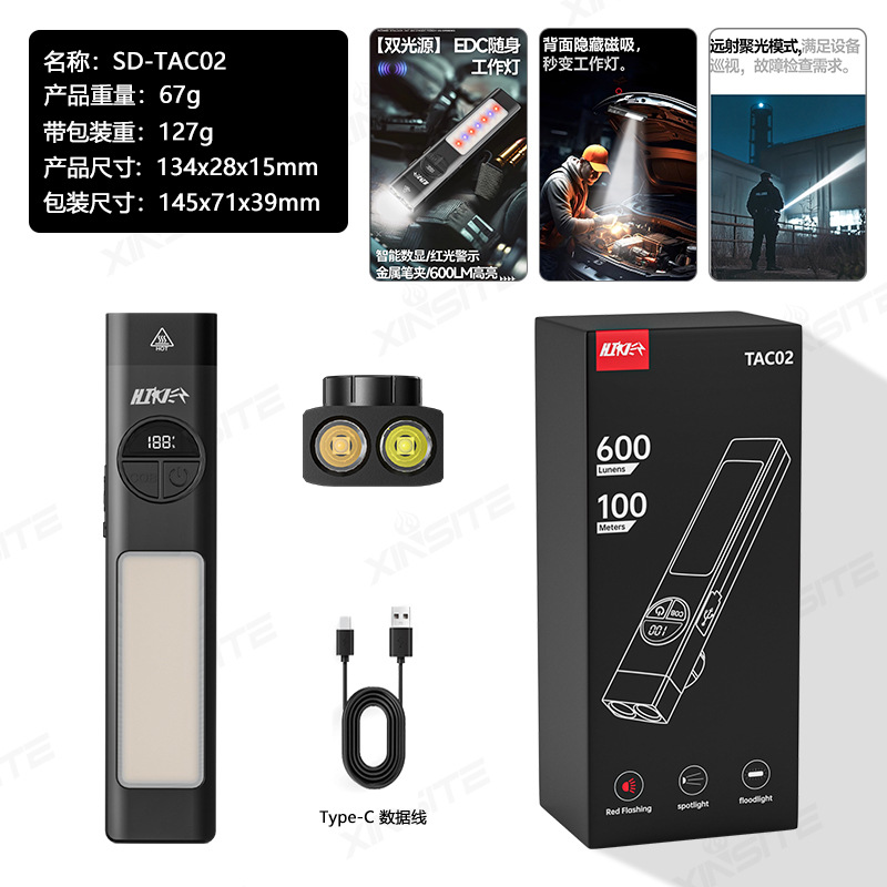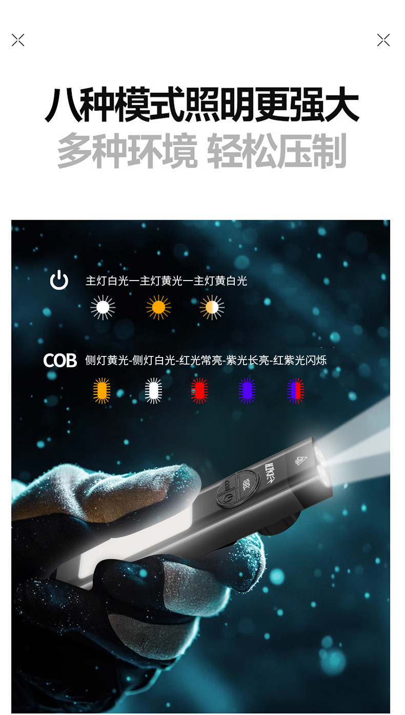 국경을 넘는 신제품 사각형 EDC 휴대용 작업등 다기능 손전등 UV 자외선 RGB 분위기등 양방향 클립