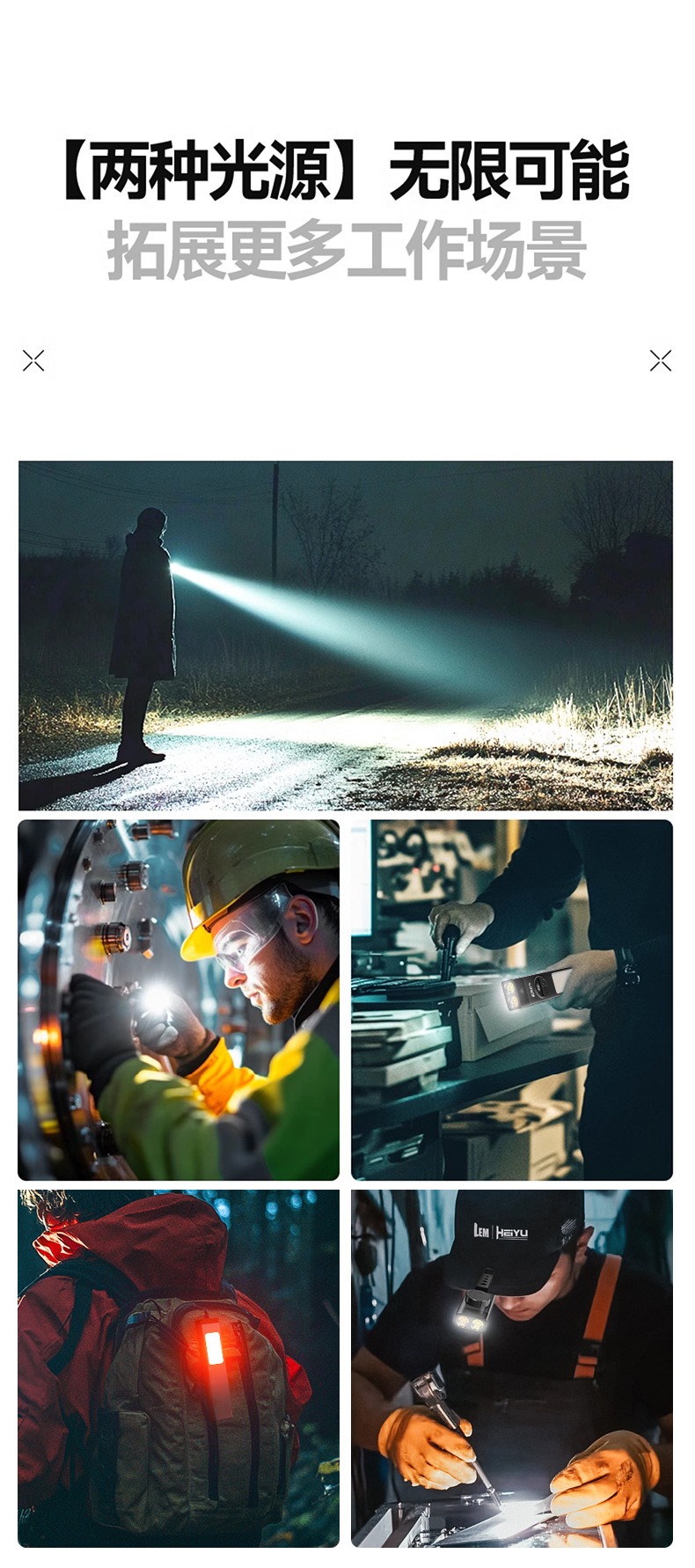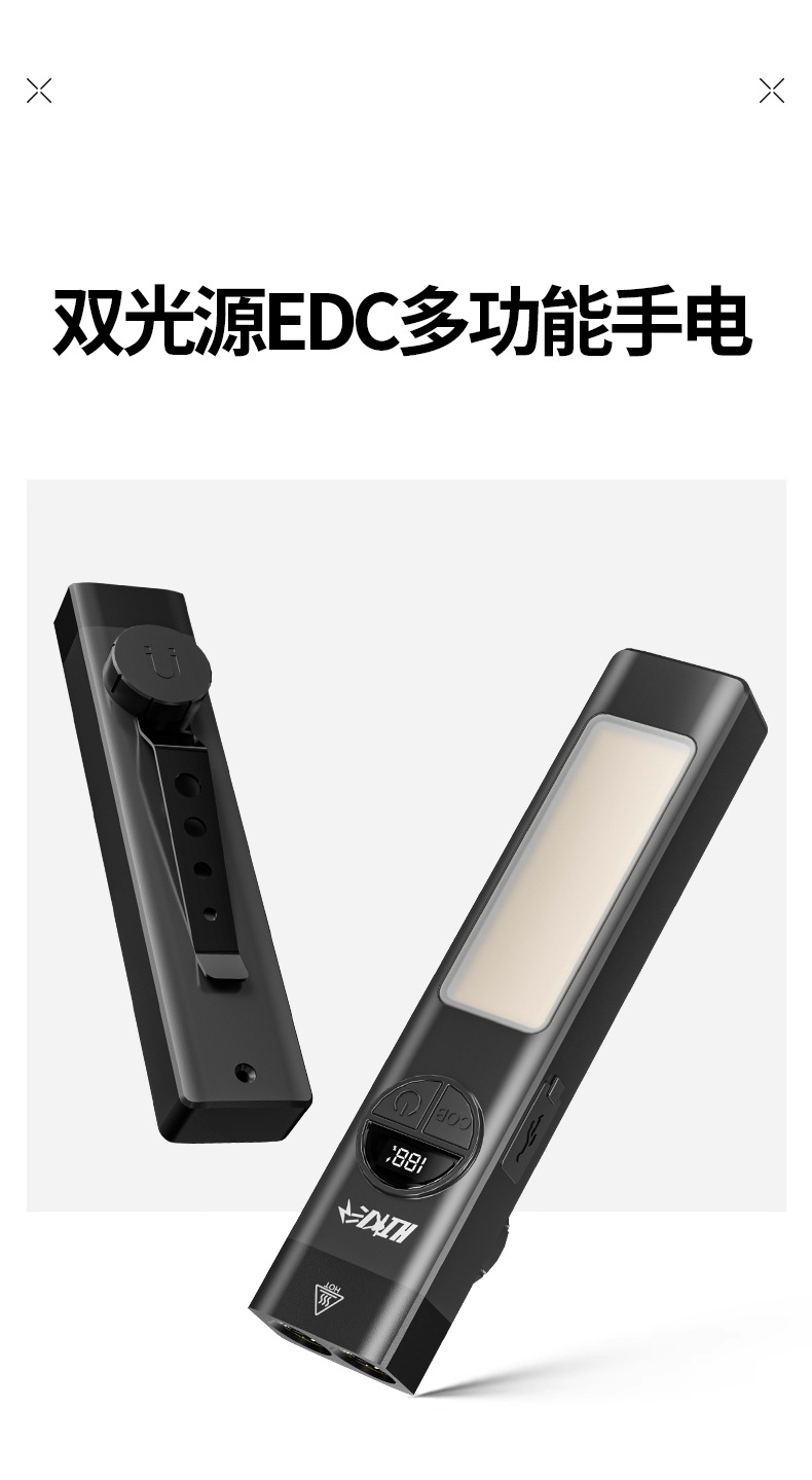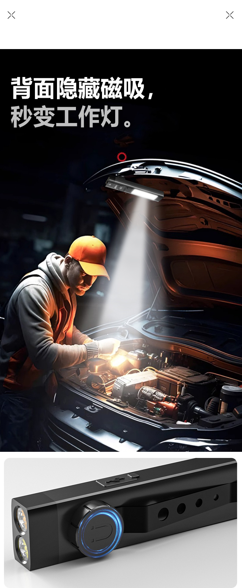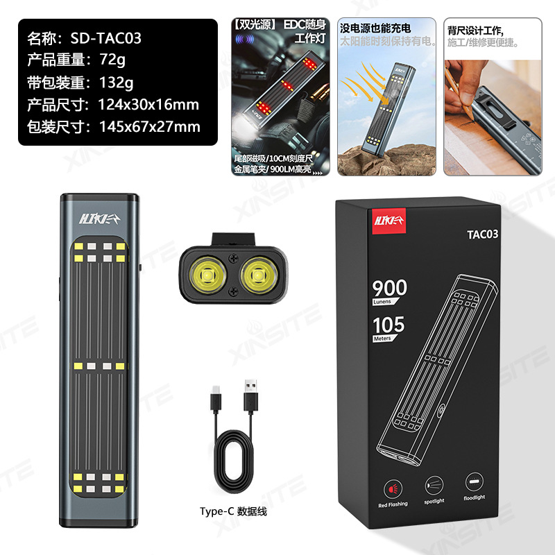 • EDC 손전등 (알루미늄 합금 + 태양광 충전 + 자석 부착 작업등)