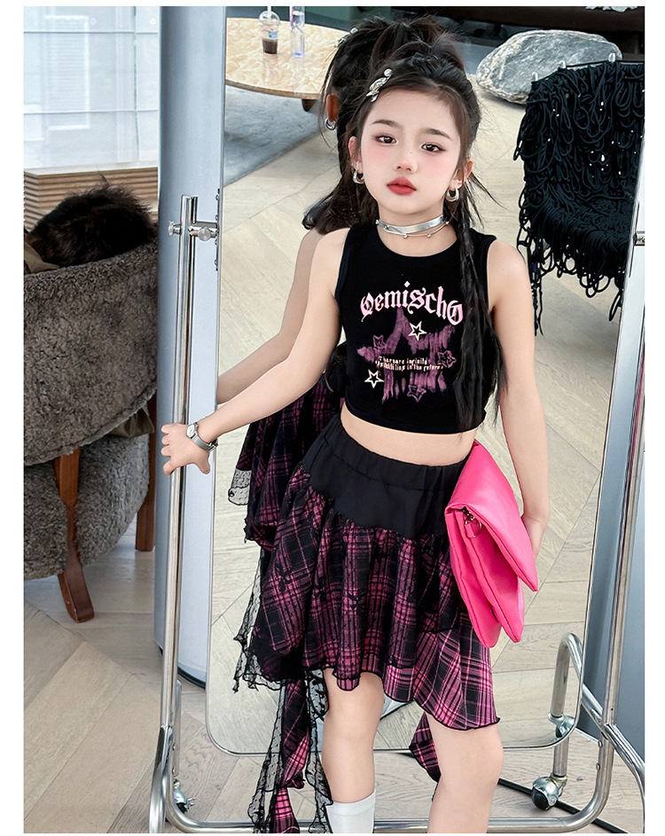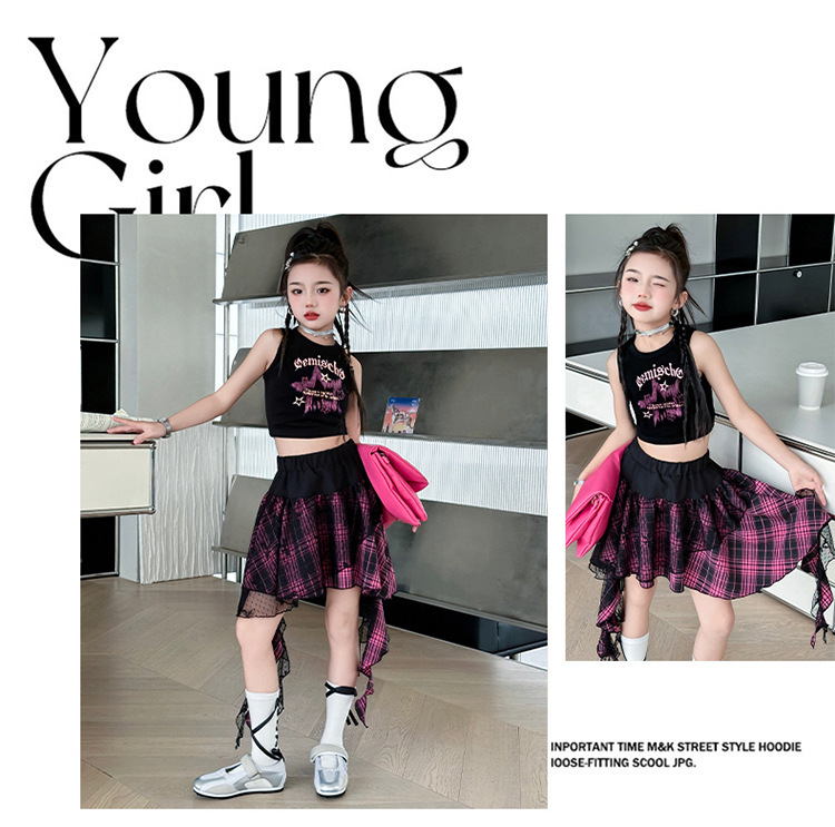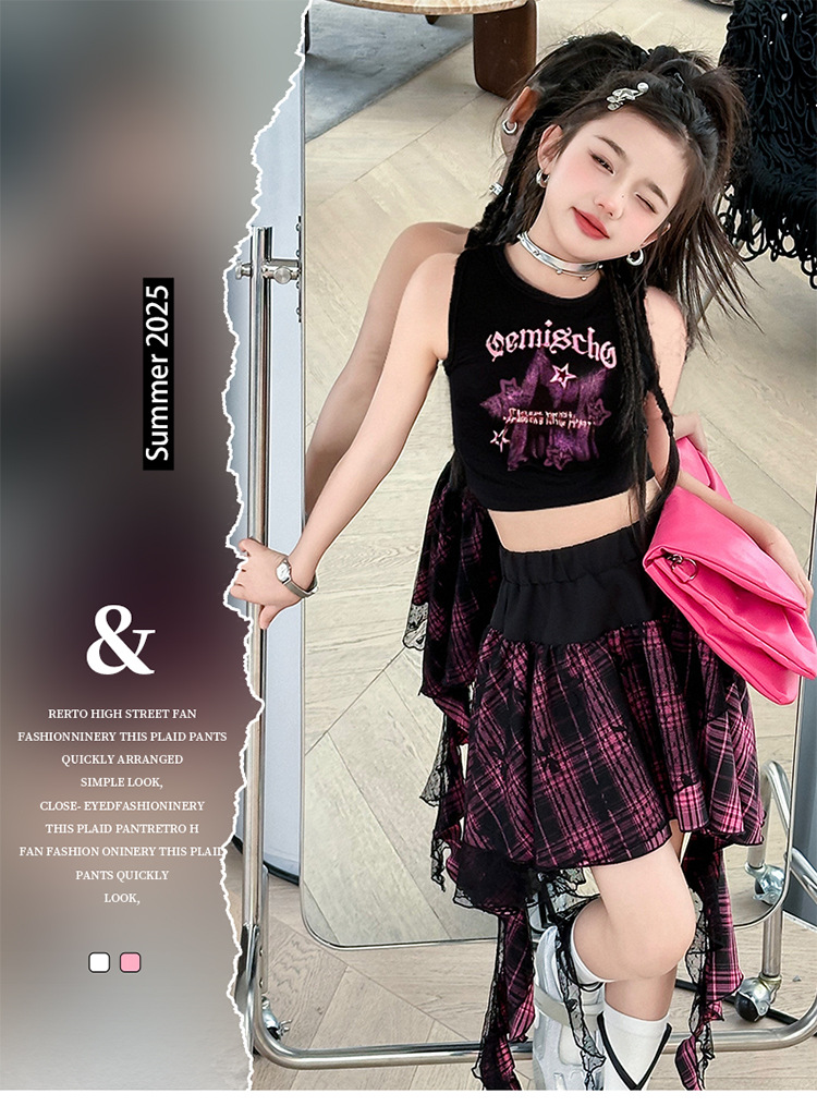 여자 반팔 스커트 정장 여름 2025 새로운 스타일 여자 거즈 스커트 큰 어린이 여름 짧은 치마 투피스 세트스토어 가기