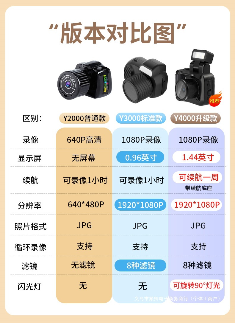 • Y3000 블랙 - 배터리 수명 100분 - 1080P HD 비디오 - 패키지 3개[32g 메모리 카드 포함]