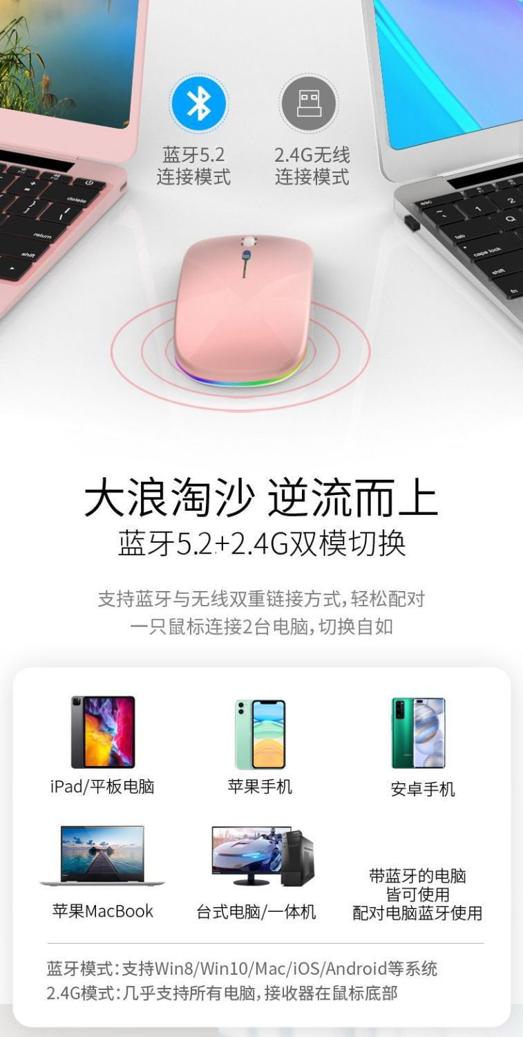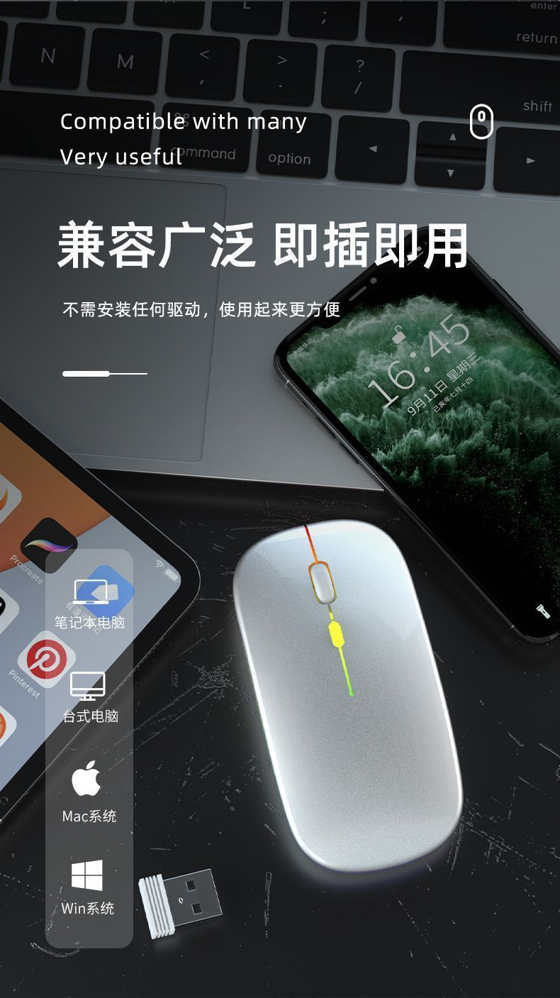 Xiaomi Apple Huawei 노트북 태블릿에 적합한 무선 무음 강화 버전의 다채로운 눈부심 마우스를 직접 공급합니다.스토어 가기