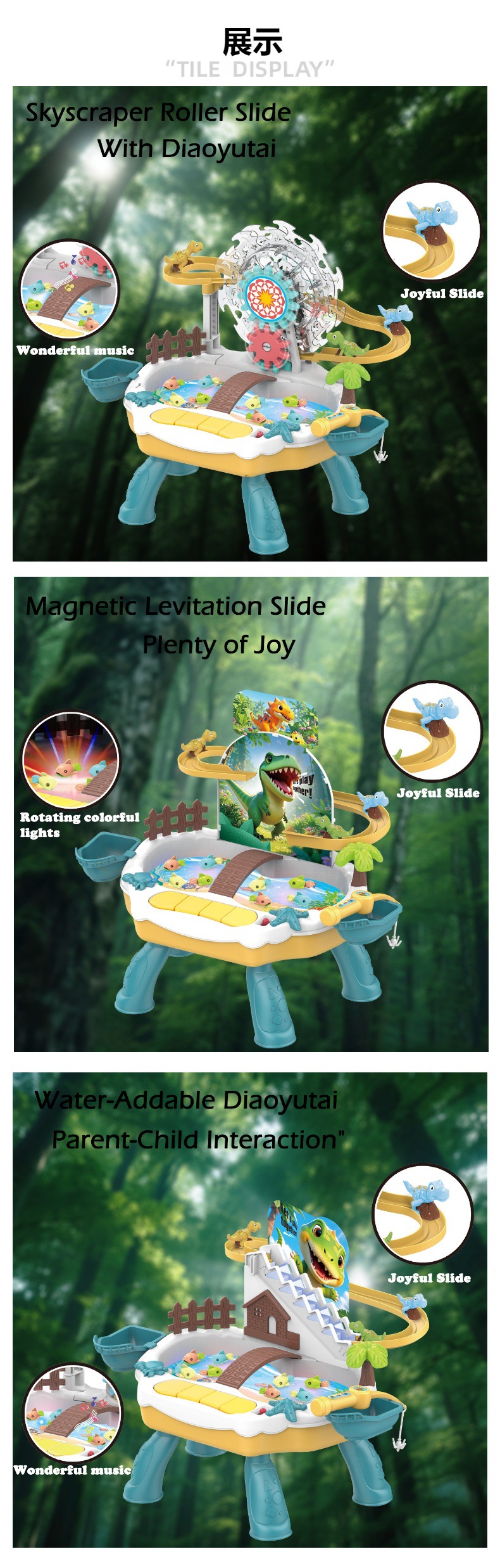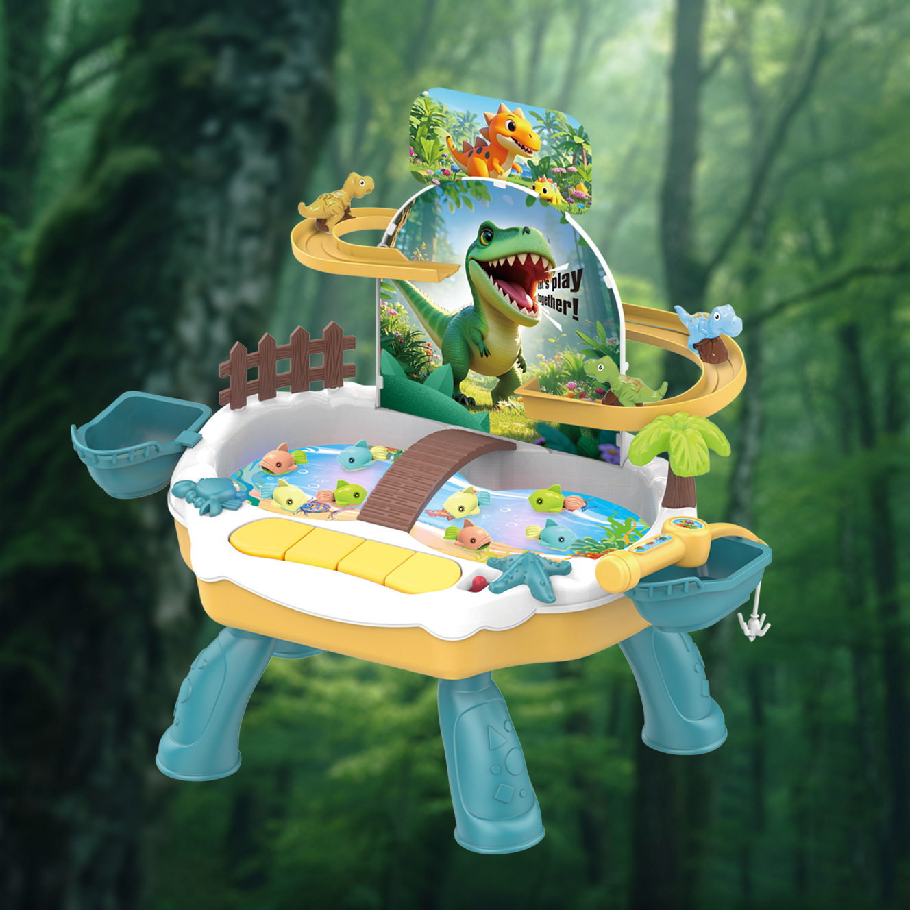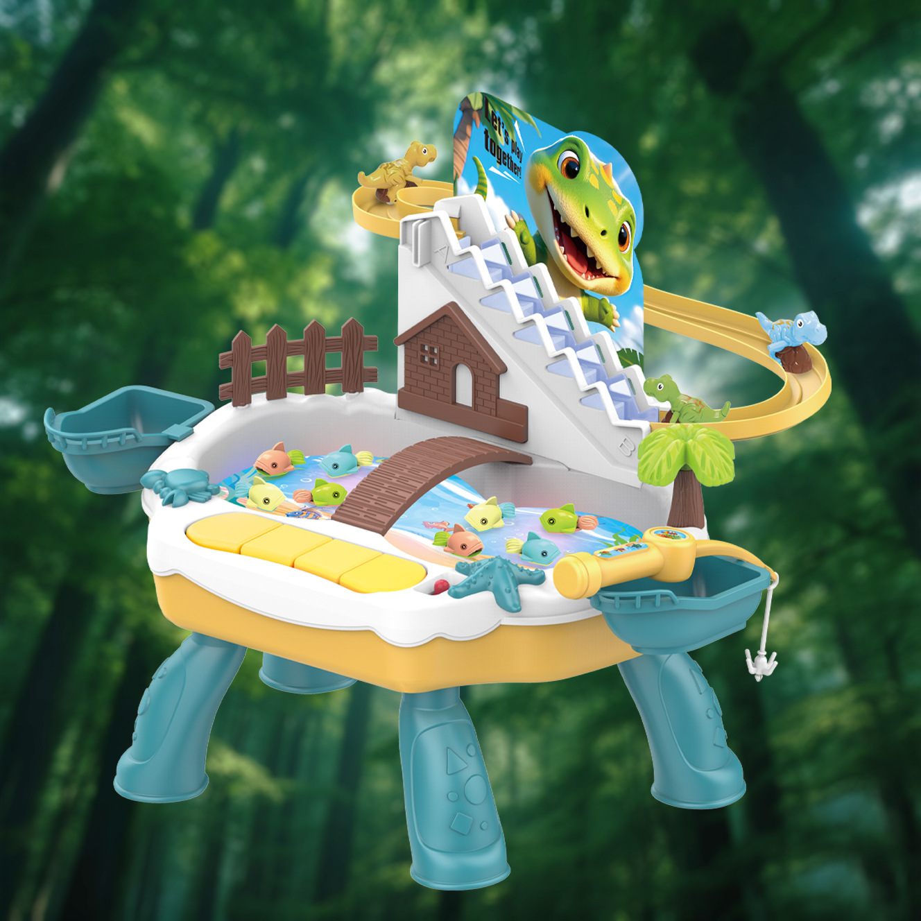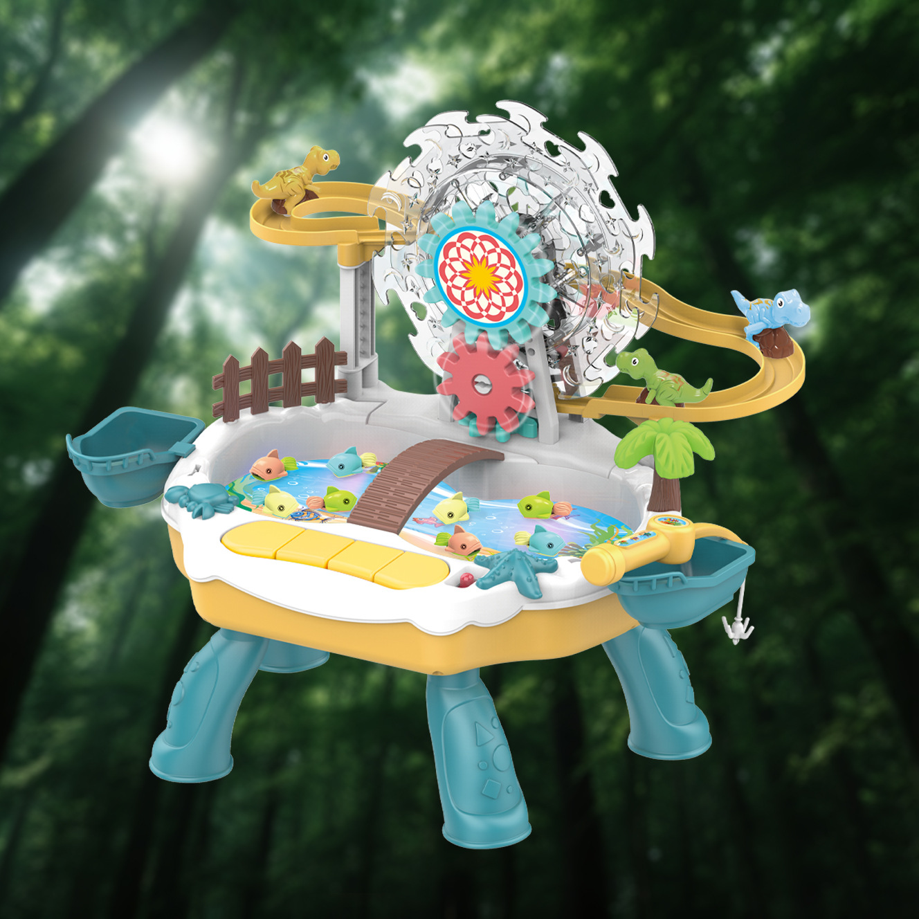 교육용 전기 낚시 장난감 수영장 세트 작은 공룡 크롤링 관람차 트랙 조명 음악 물놀이 낚시 플랫폼스토어 가기