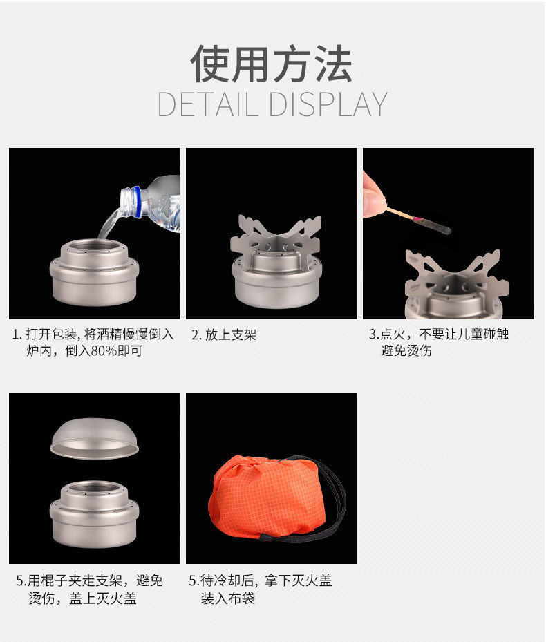 • 스테인레스 스틸 크로스 브래킷 + 순수 티타늄 알코올 스토브