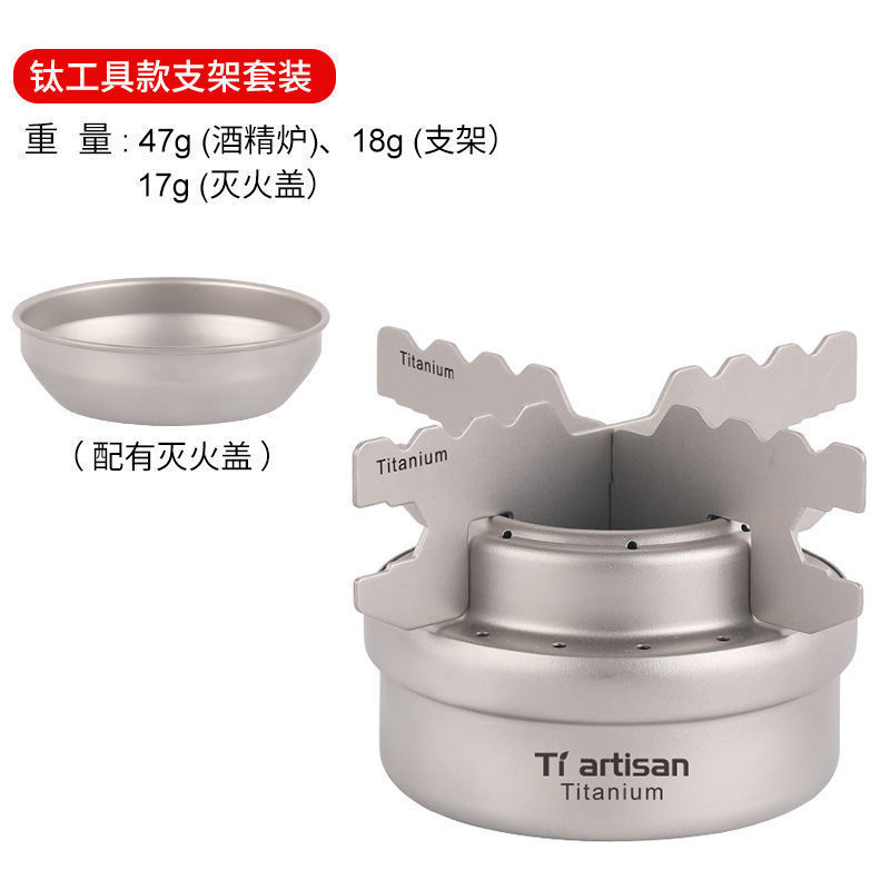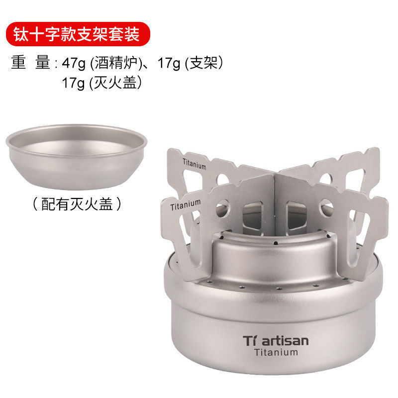 • 티타늄 크로스 브래킷 + 순수 티타늄 알코올 스토브 + 소화 커버
