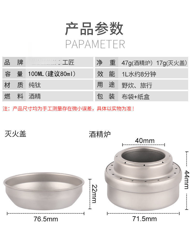 티타늄 장인 순수 티타늄 알코올 스토브 액체 고체 알코올 범용 야외 스토브 휴대용 및 보관이 쉬운 캠핑 피크닉 스토브스토어 가기