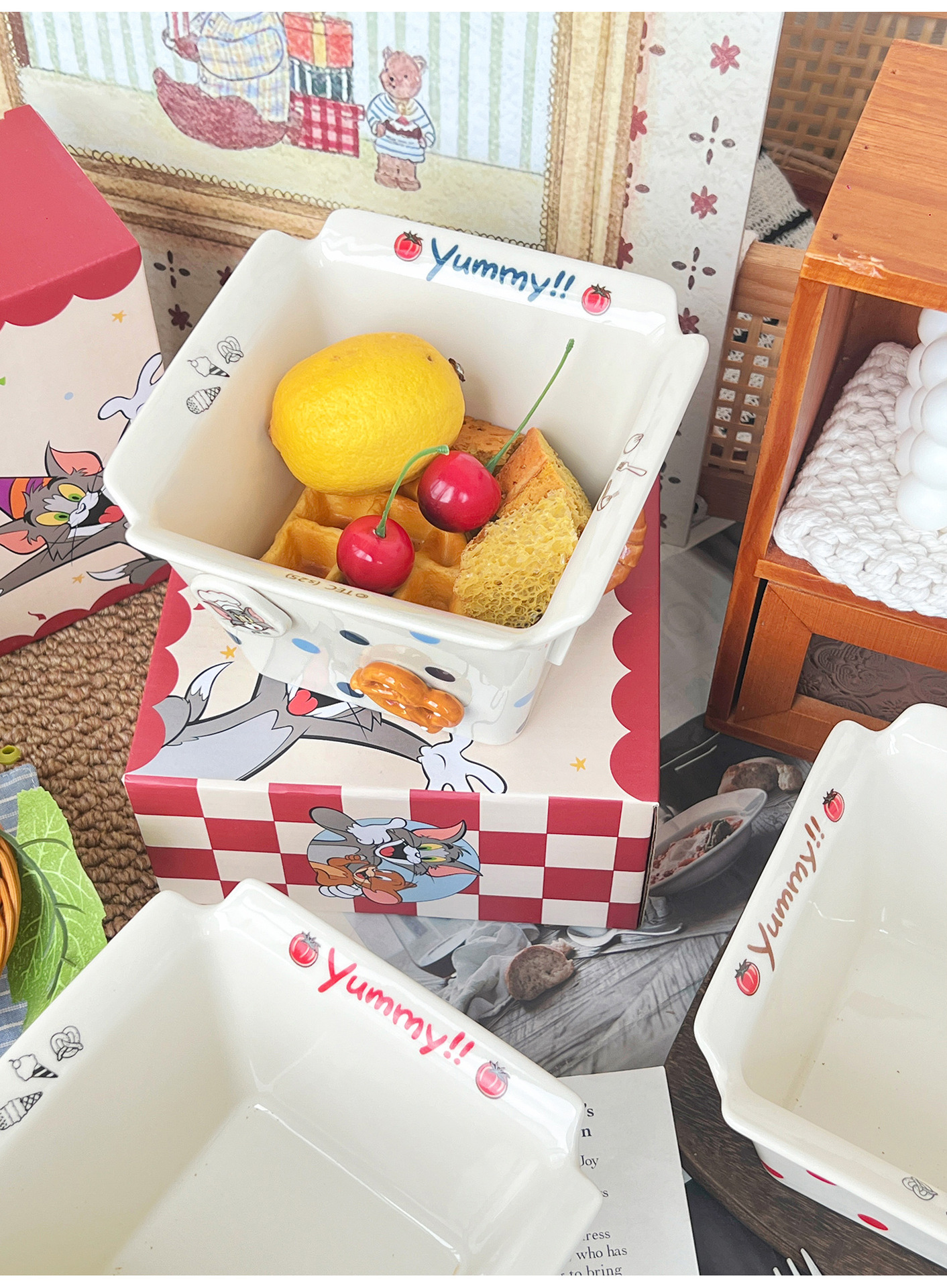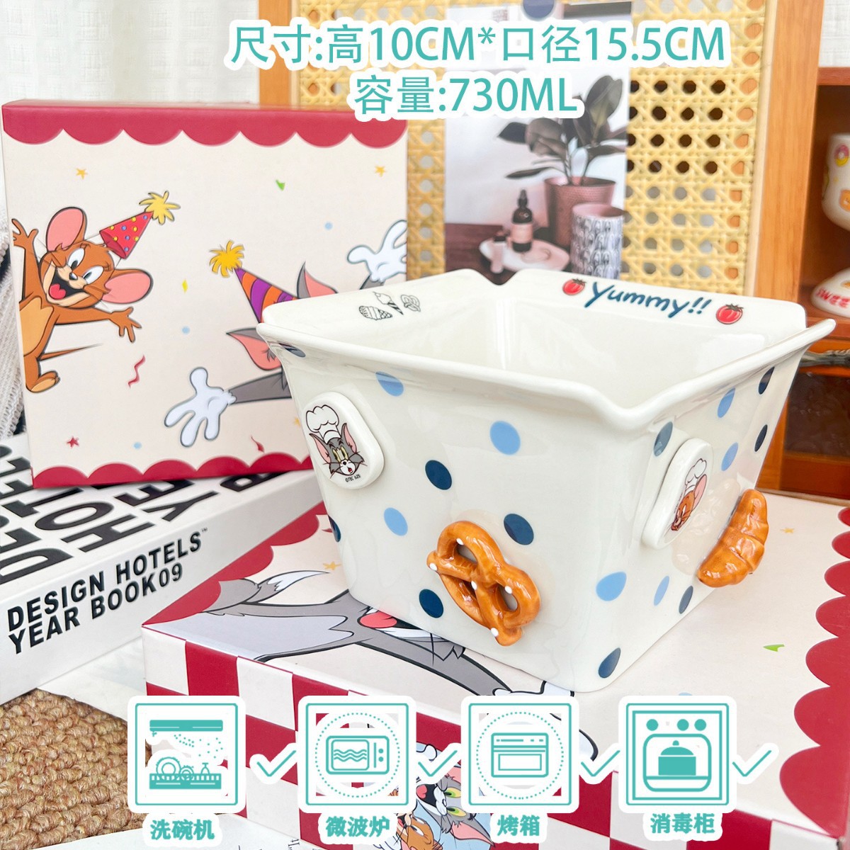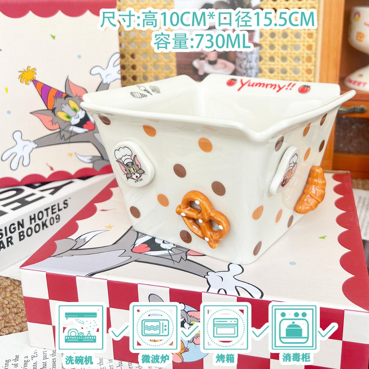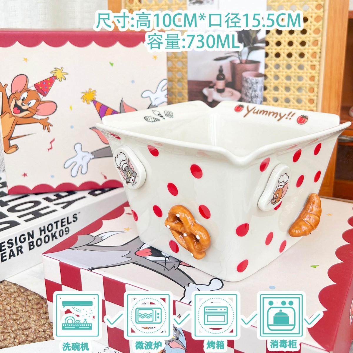 톰과 제리 주변 세라믹 감자 튀김 그릇 커플 팝콘 과일 샐러드 그릇 고급스러운 사각형 그릇 대용량