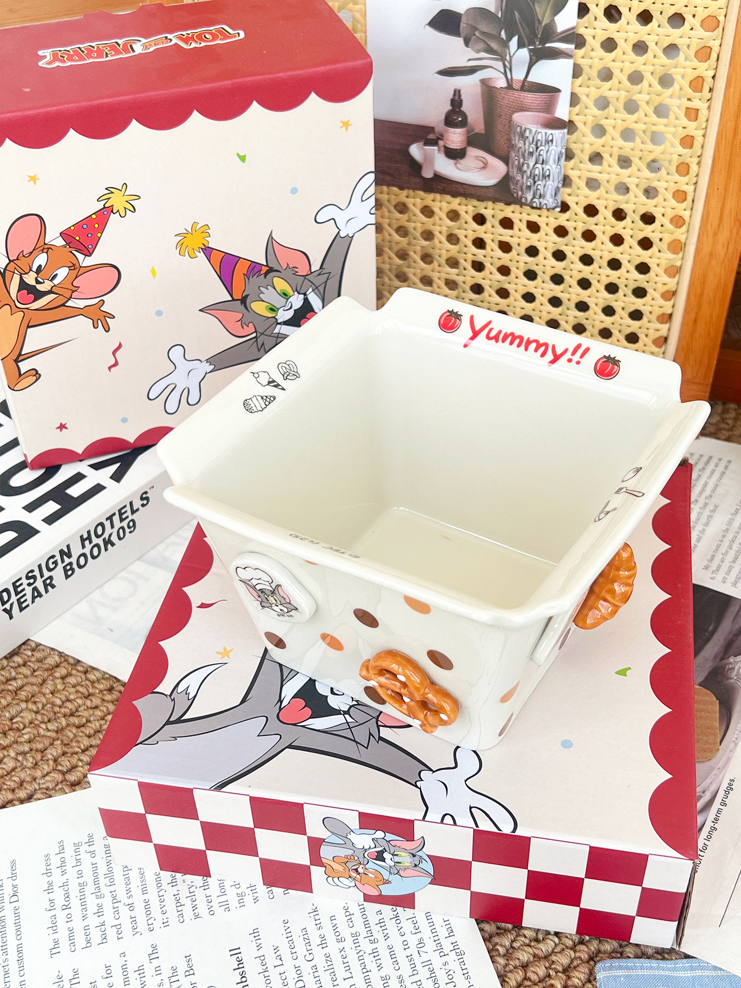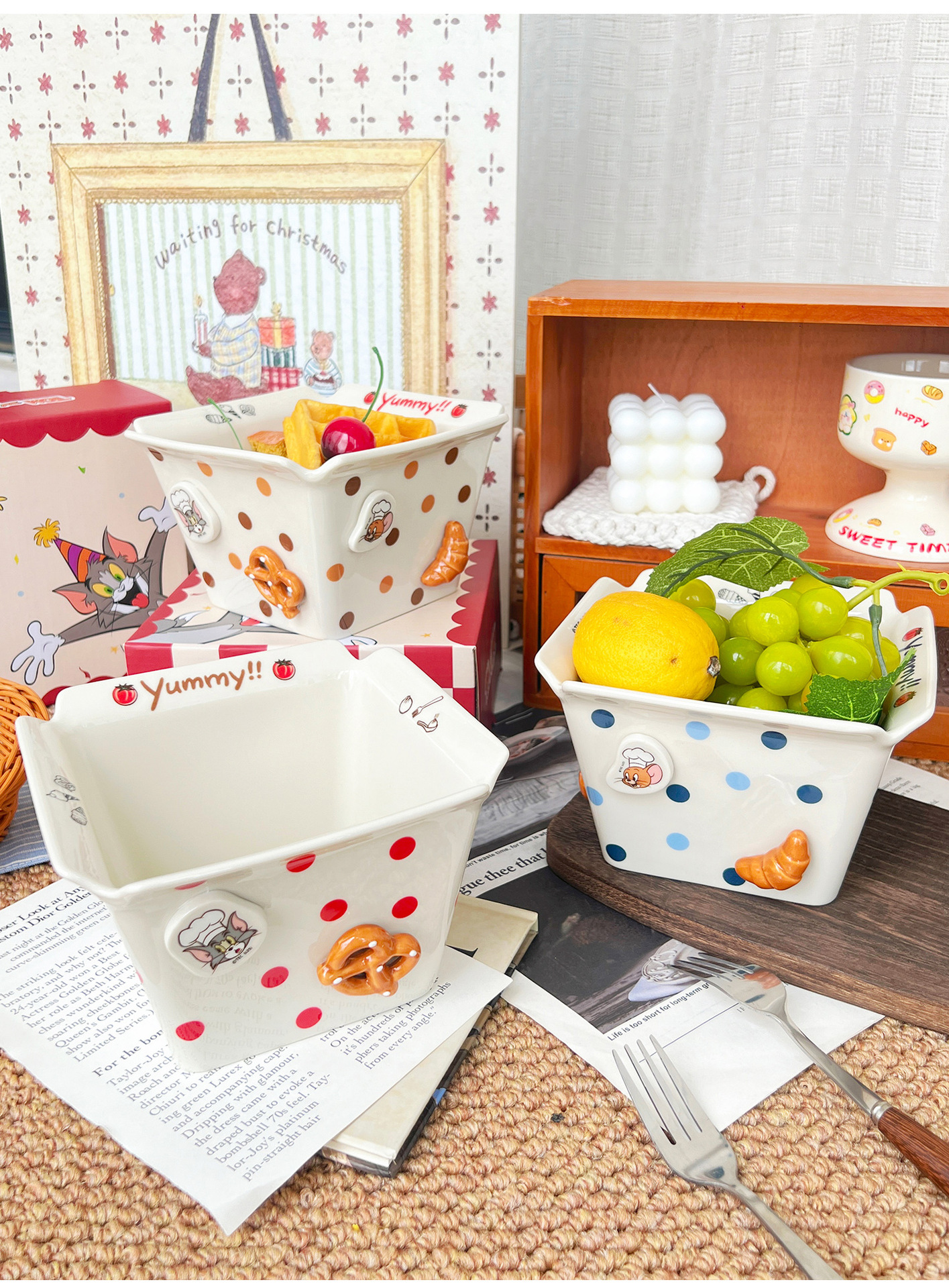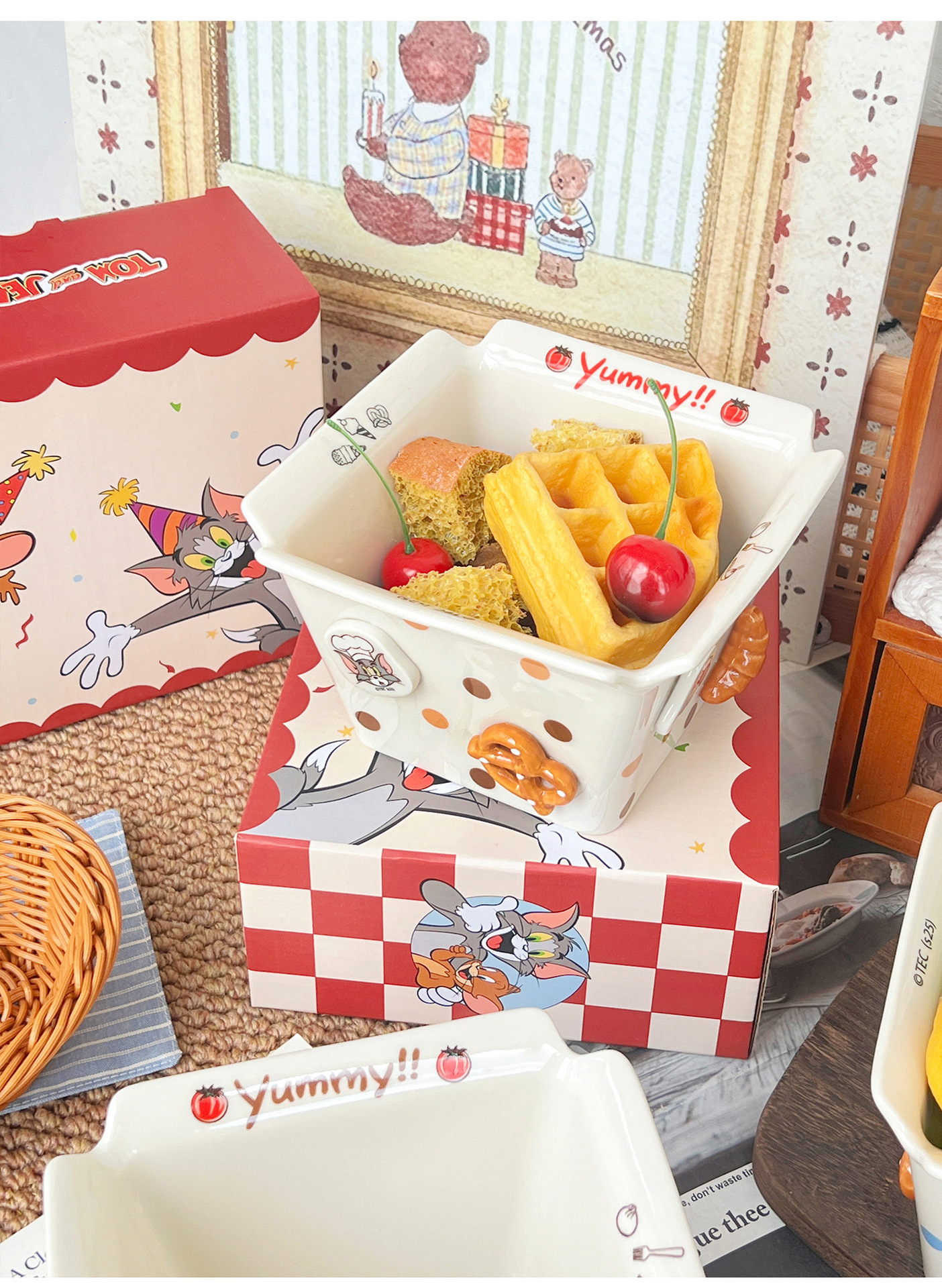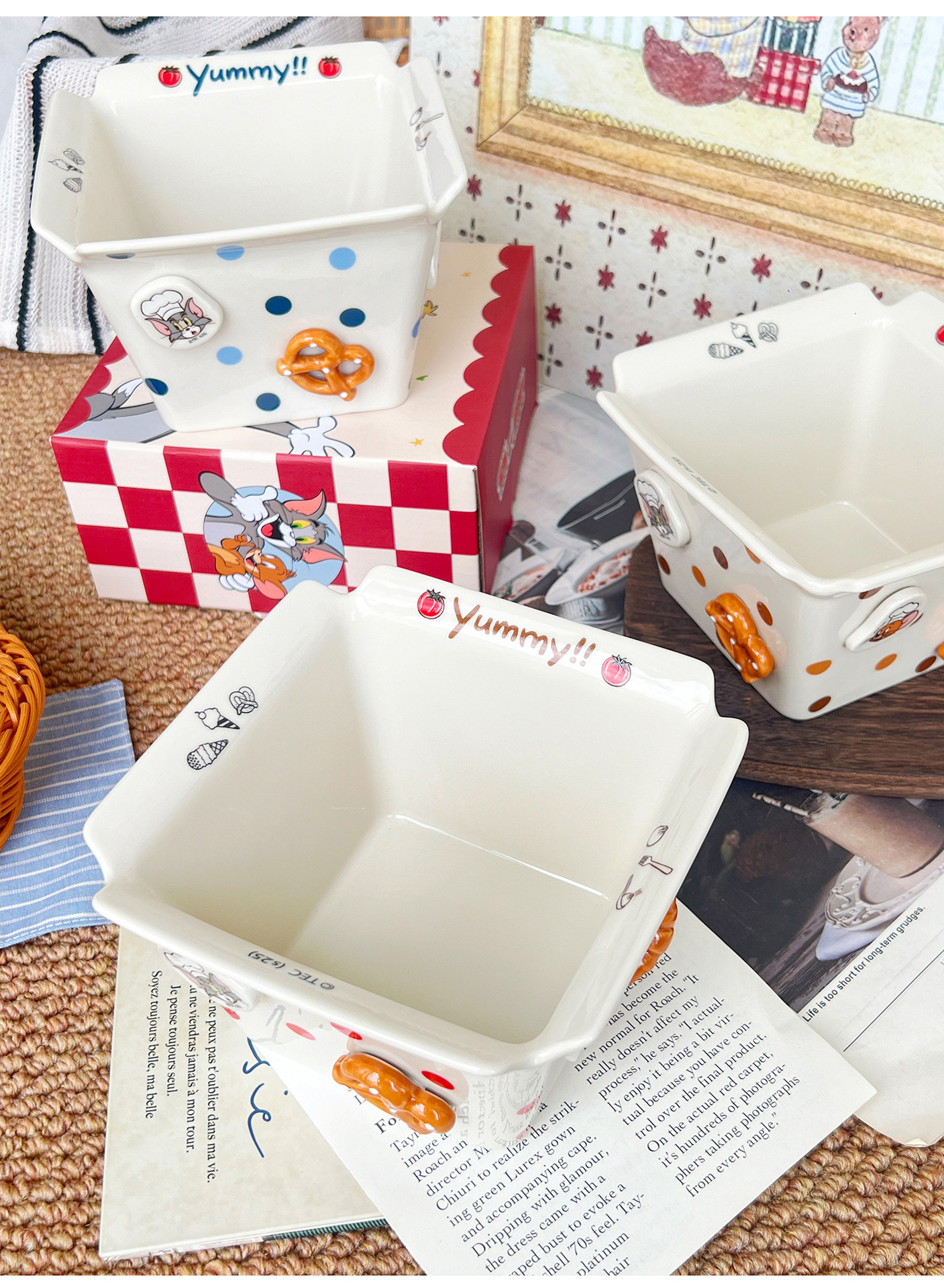 톰과 제리 주변 세라믹 감자 튀김 그릇 커플 팝콘 과일 샐러드 그릇 고급스러운 사각형 그릇 대용량