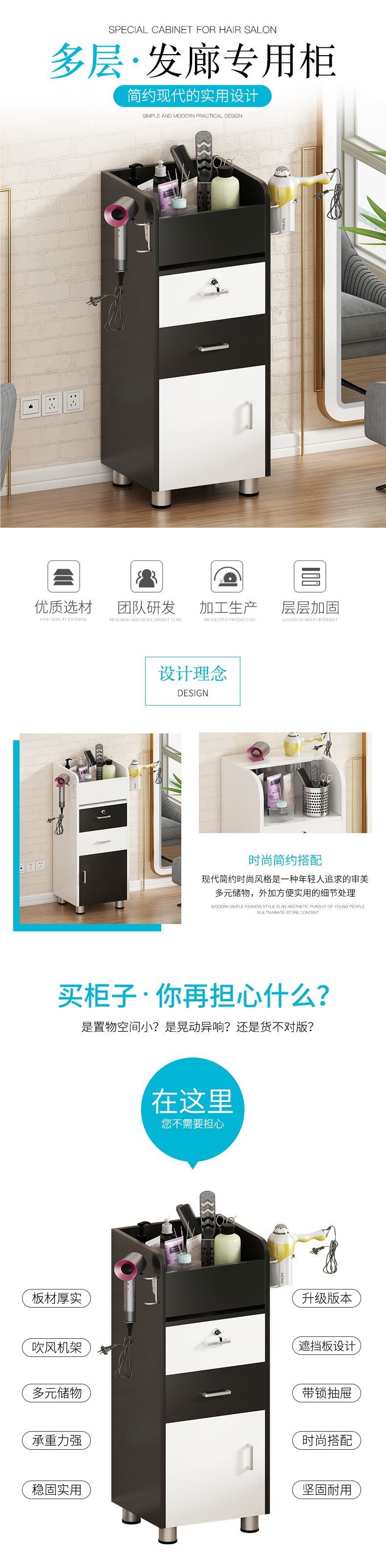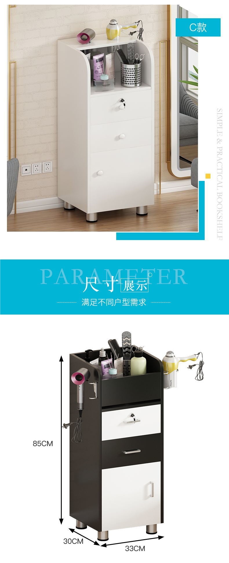 이발소 캐비닛, 미용실 캐비닛, 미용실 제품 도구 카트, 바닥형 보관 캐비닛, 이동식 이발소 캐비닛