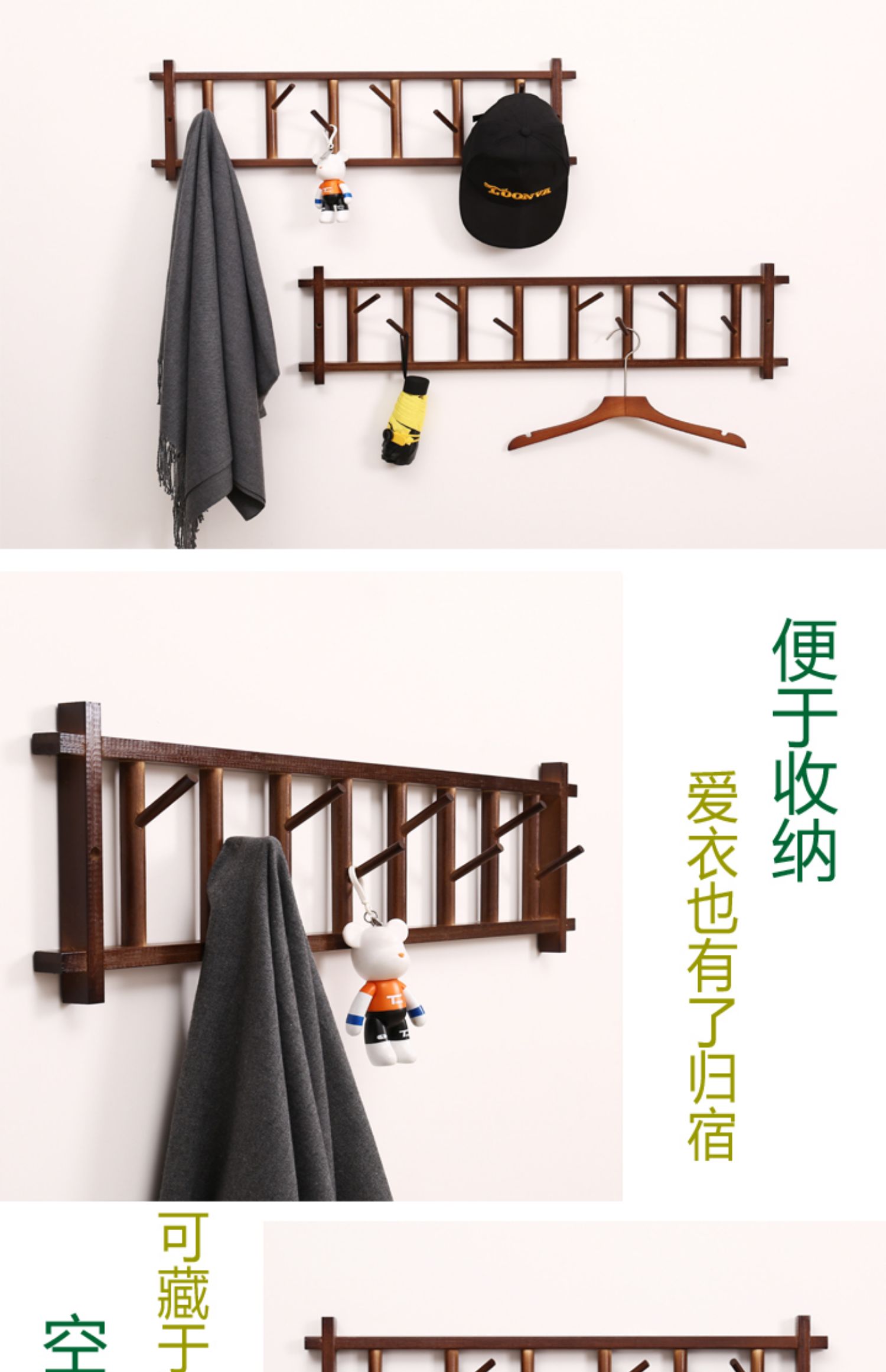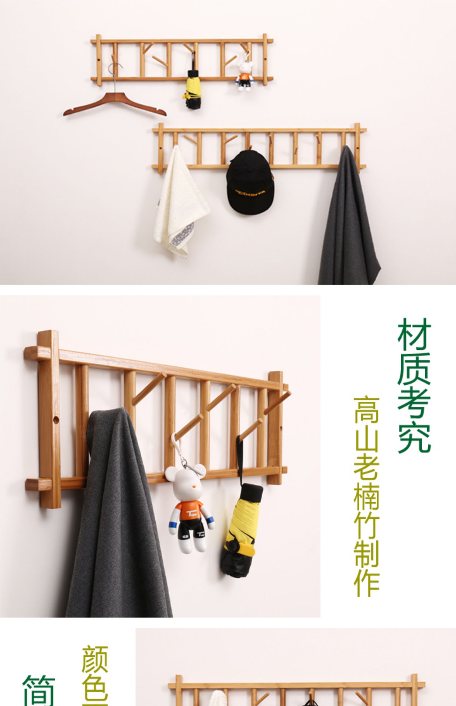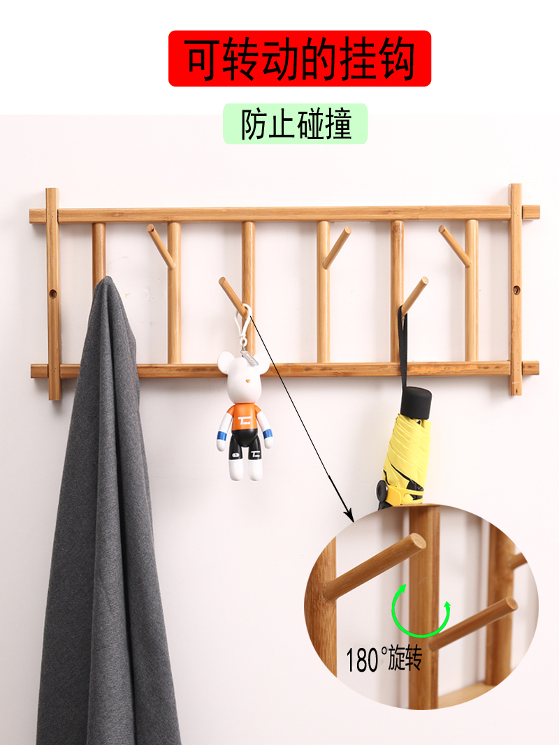 단단한 나무 옷걸이 벽걸이 옷걸이 입구 벽 침실 옷걸이 입구 옷 걸이 수납 대나무스토어 가기