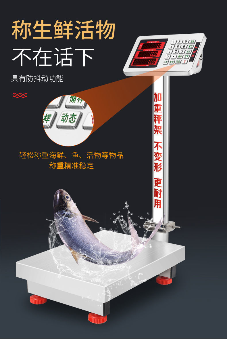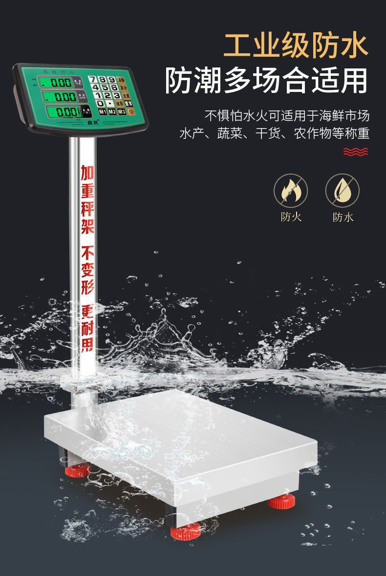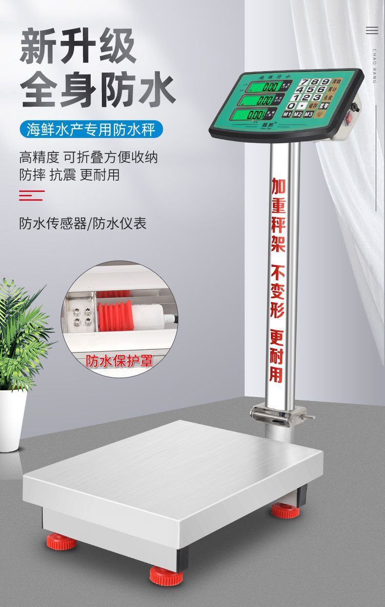 초월 전체 스테인레스 스틸 새로운 전자 저울 방수 60kg 해산물 및 수산물 300kg 가정용 전자 저울