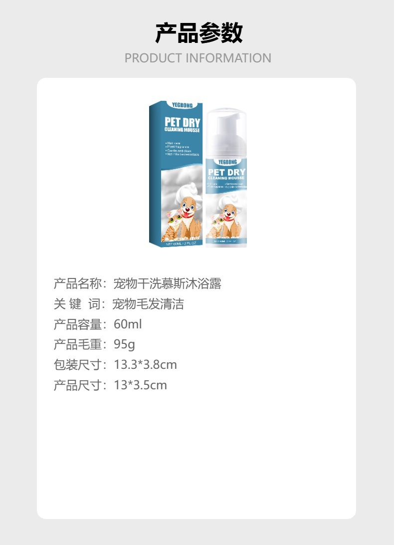 Yegbong 애완 동물 드라이 클리닝 무스 샤워 젤 새끼 고양이와 개를 위한 무수 세척, 냄새 제거, 부드러운 모발 청소