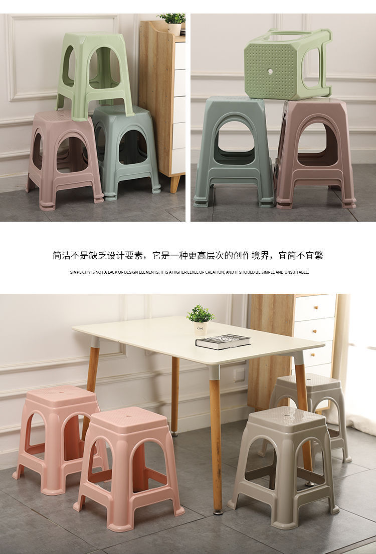 플라스틱 의자, 가정용 두꺼운 사각형 의자, 간단한 거실, 욕실 벤치, 높은 벤치, 경제적인 식탁 및 의자스토어 가기