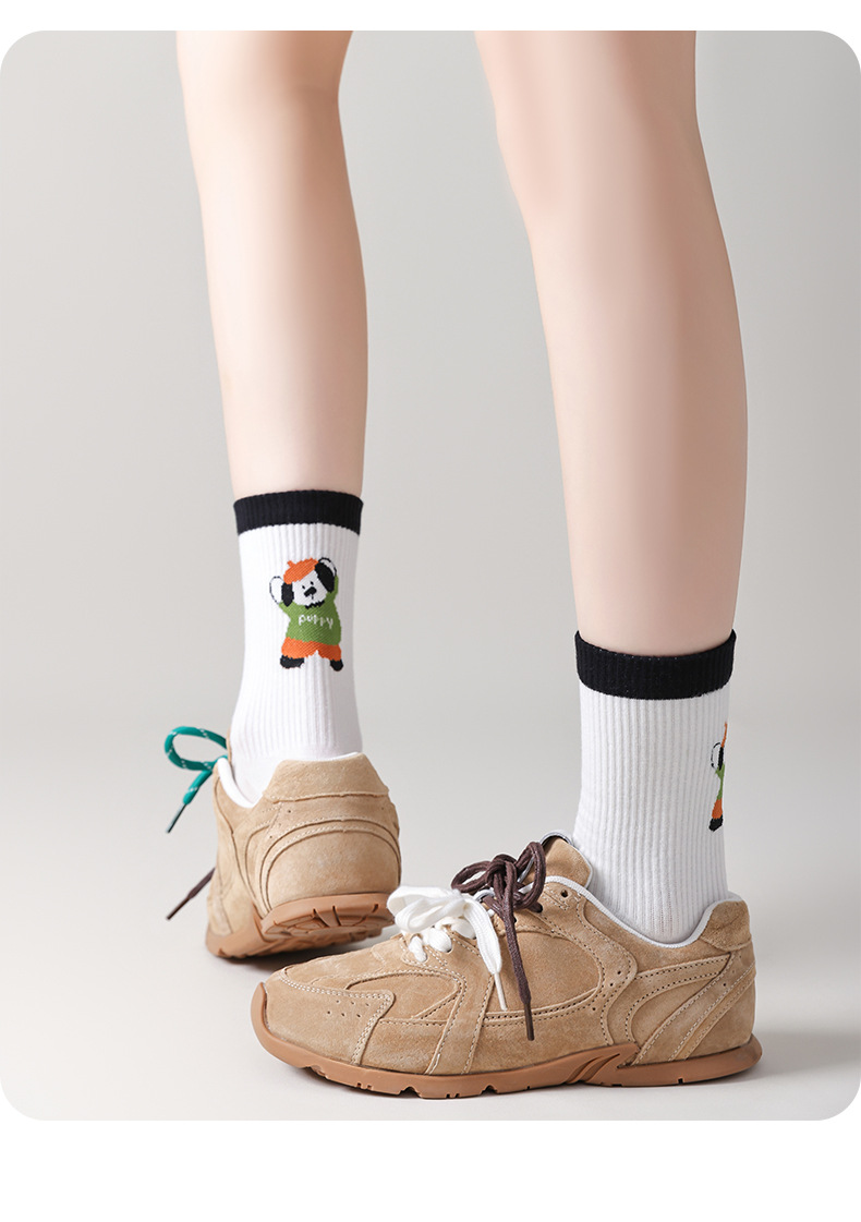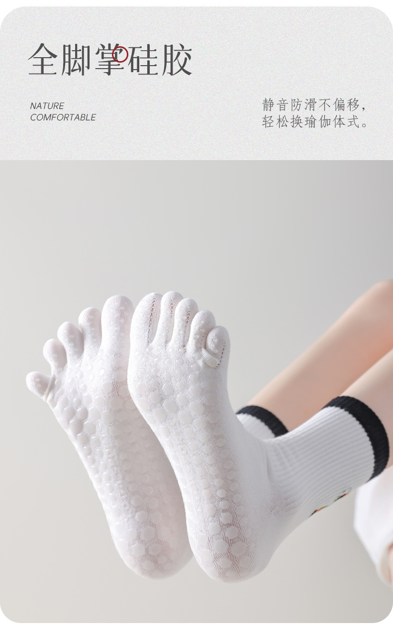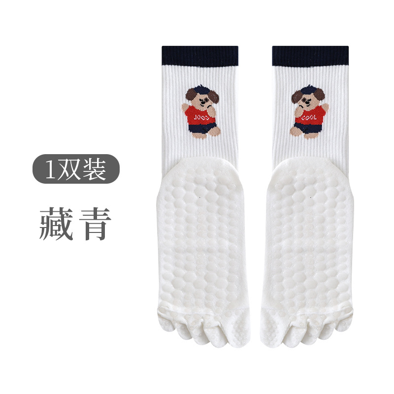 여성용 스포츠 및 피트니스용 Zhuzhi 미끄럼 방지 요가 양말, 특수 필라테스 다섯 손가락 중간 튜브 양말, 귀여운 발 뒤꿈치 강아지