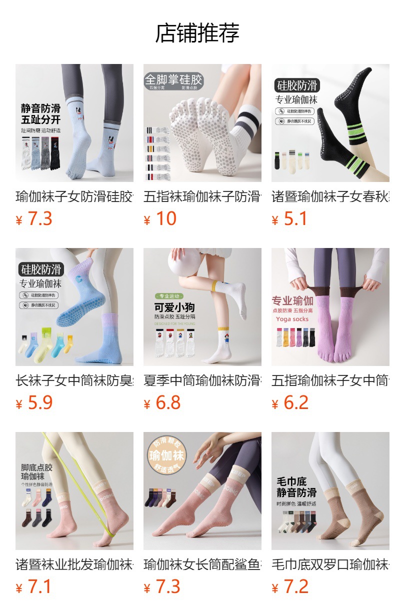 여성용 스포츠 및 피트니스용 Zhuzhi 미끄럼 방지 요가 양말, 특수 필라테스 다섯 손가락 중간 튜브 양말, 귀여운 발 뒤꿈치 강아지스토어 가기