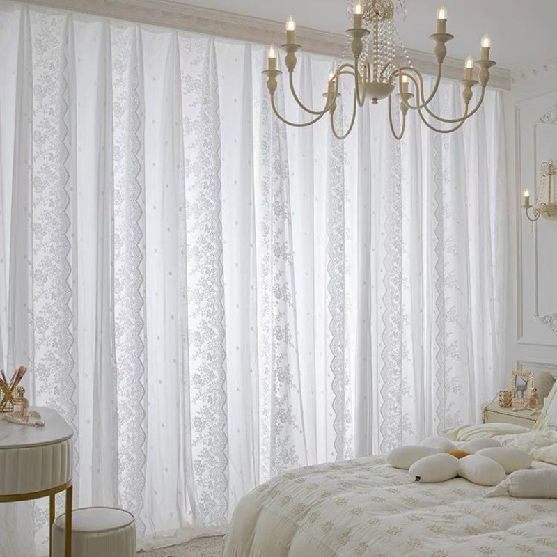 빛이 잘 통과하지 않고 사람을 막아주는 이중 자수 커튼, 한국식 거실 원단과 거즈 일체형 커튼, 유럽식 프렌치 화이트 거즈 발코니, 우아한 마음