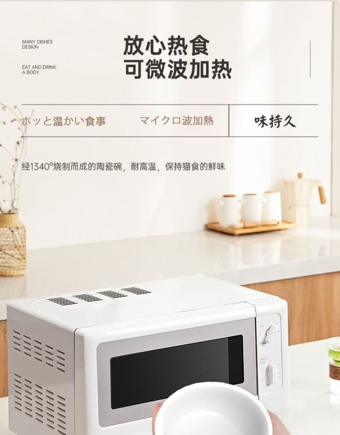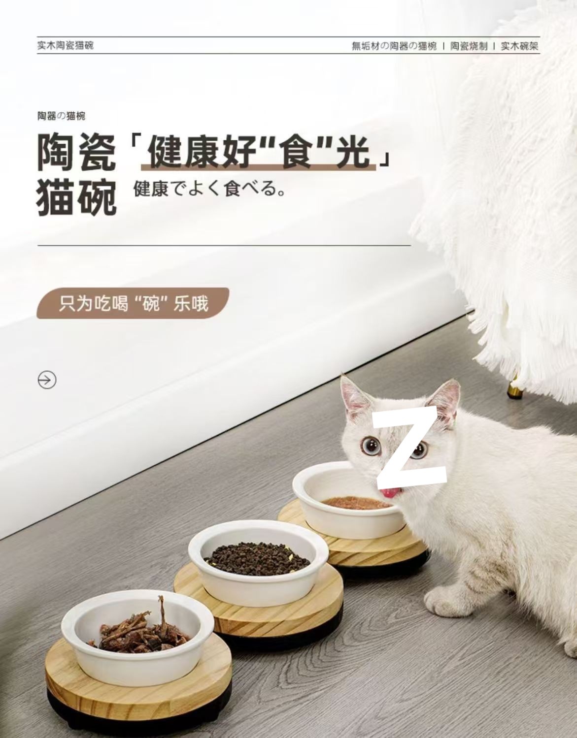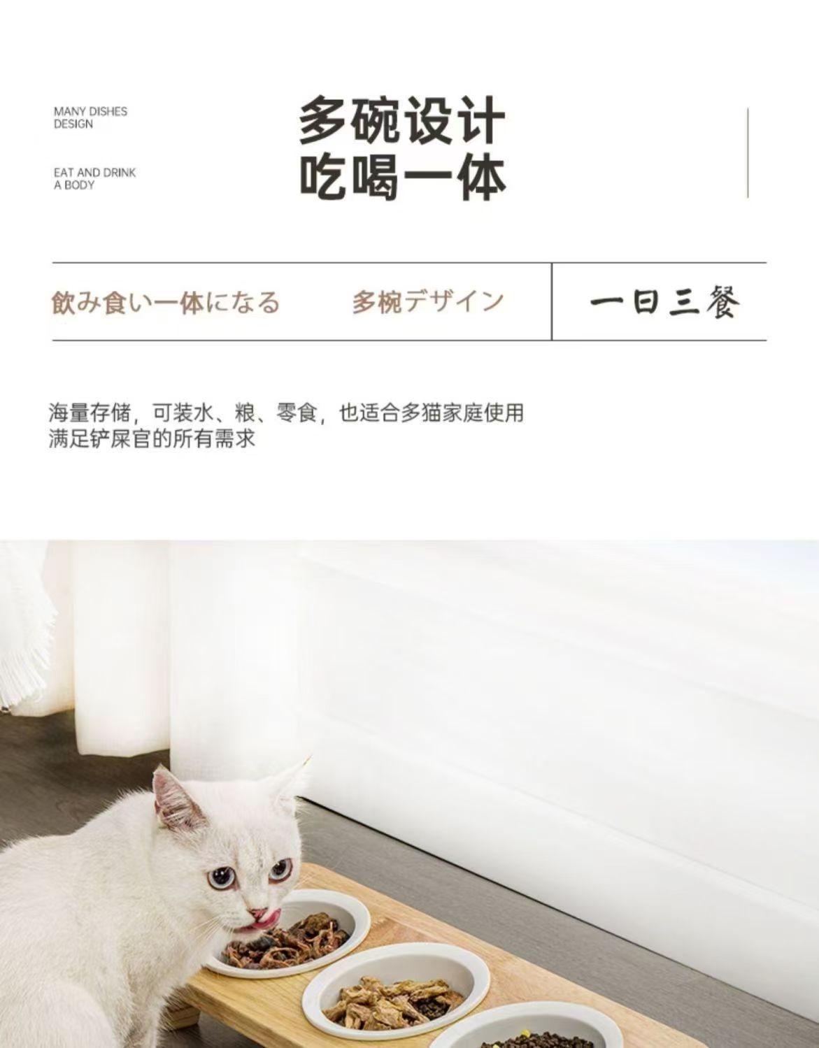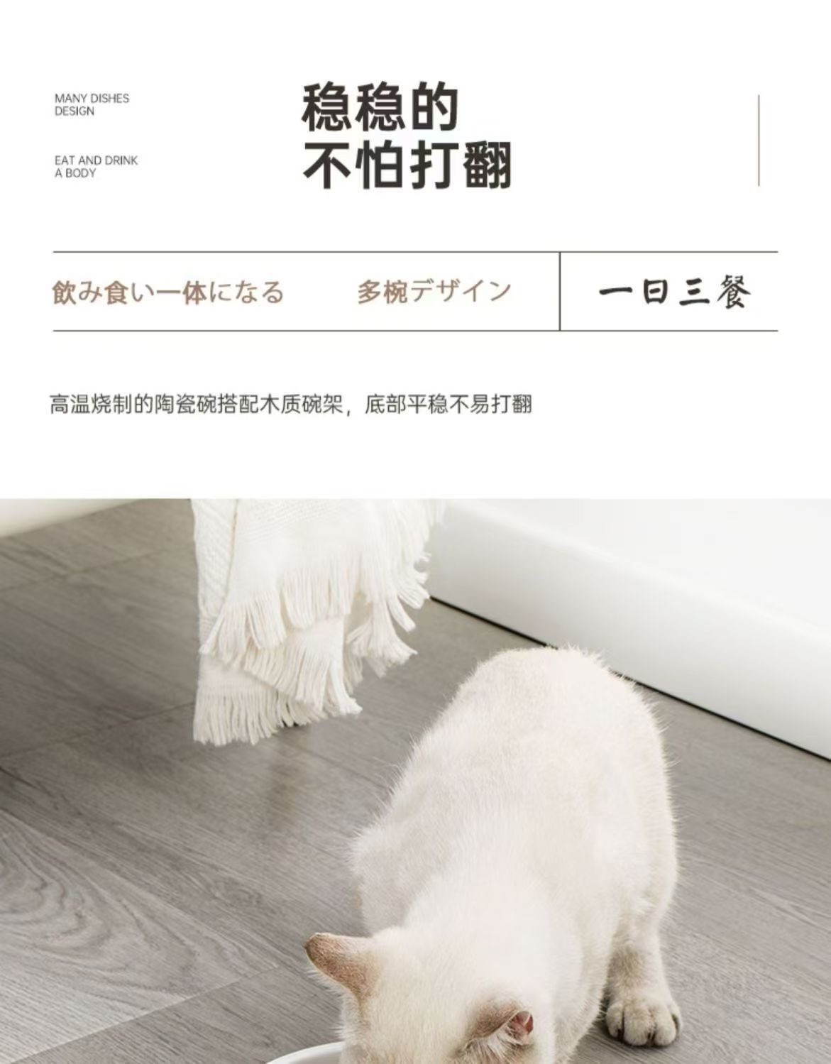 • 넘어짐 방지 소나무 그릇걸이 + 세라믹 고양이 그릇 세트 [그릇 3개 세트]