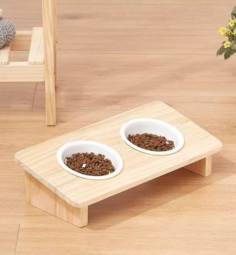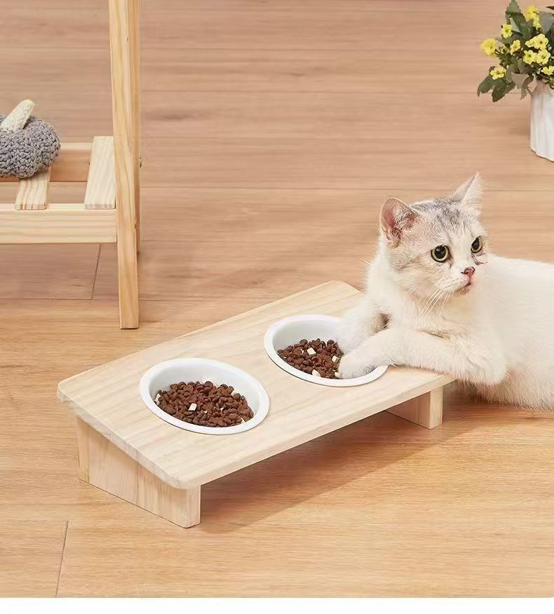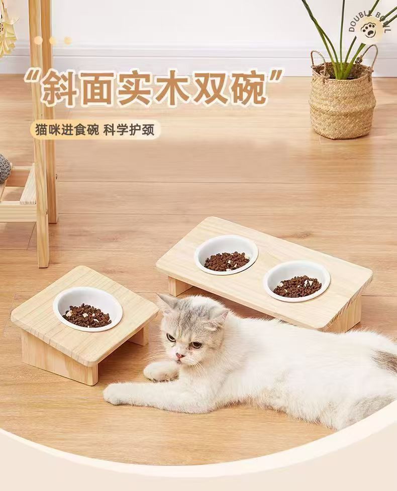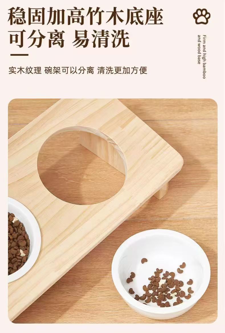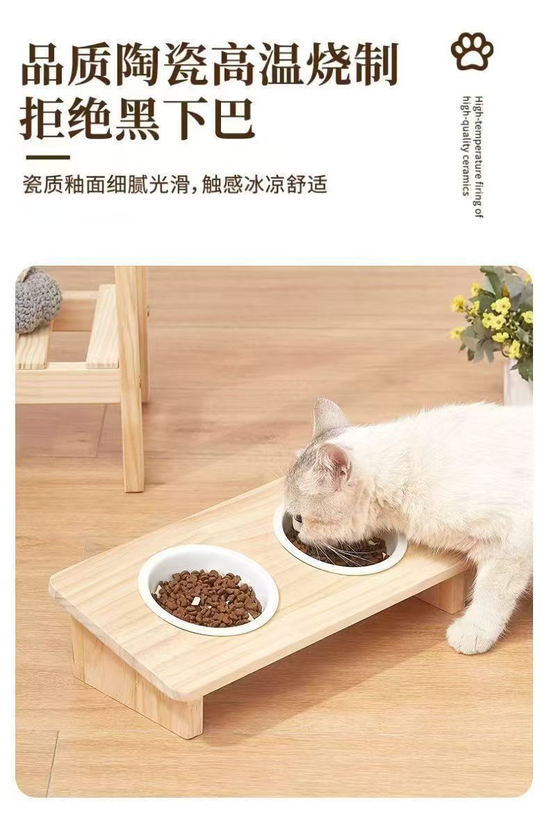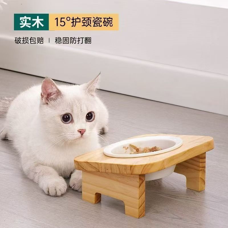 세라믹 보호 경추 뒤집히는 사료 그릇 애완 동물 경사 입 고양이 밥 그릇 식품 그릇 물 그릇 식수 더블 그릇 식품 그릇 단단한 나무