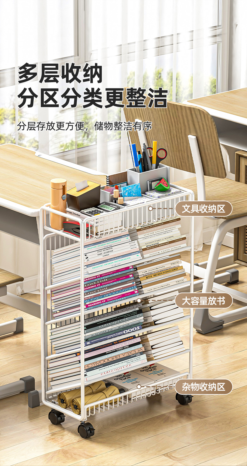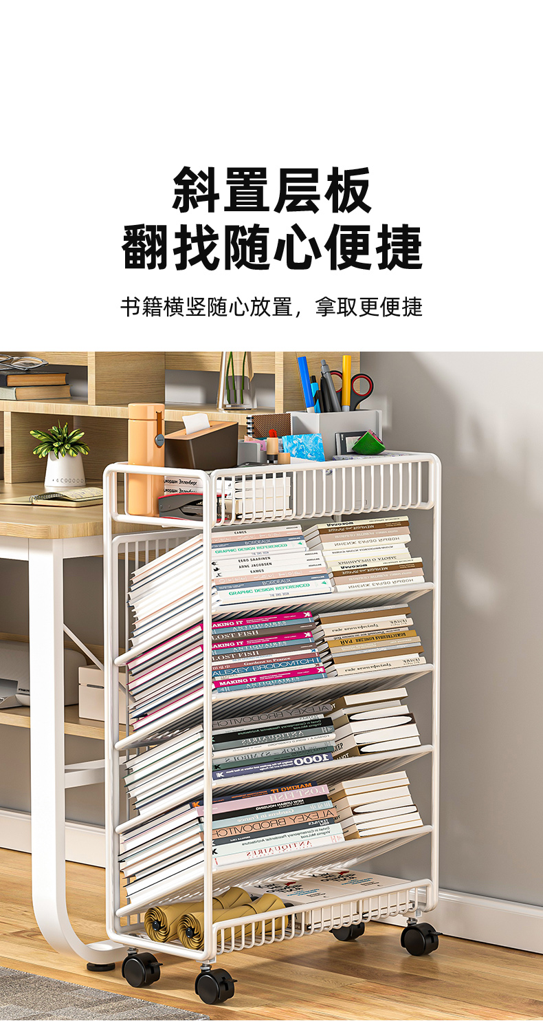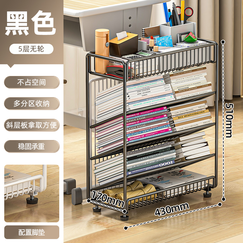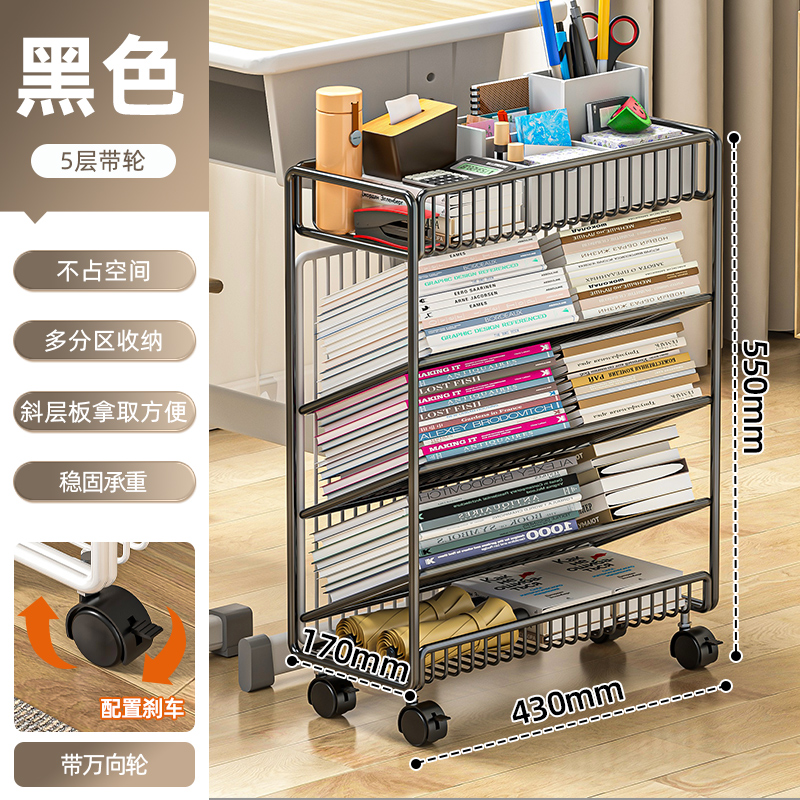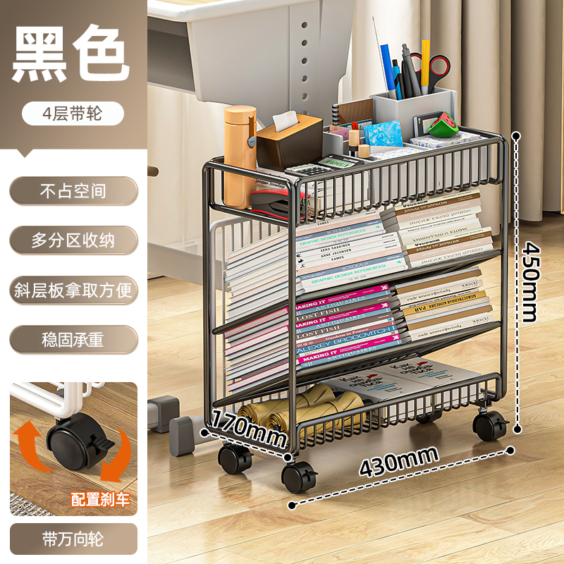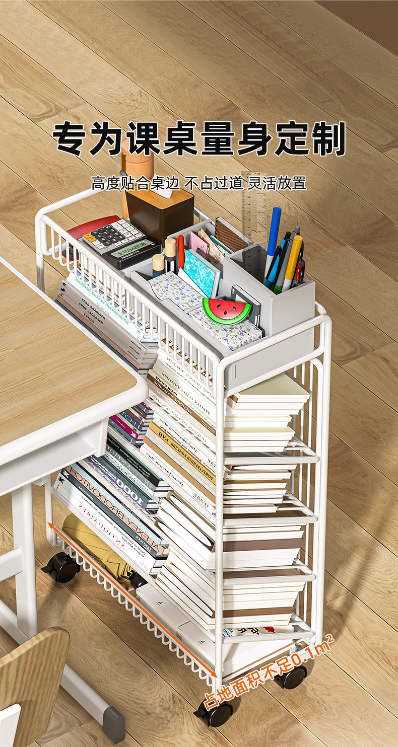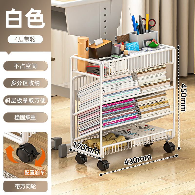 이동식 책장, 책상 옆 바닥형 수납선반, 바퀴 달린 책상 옆 초등학생 학습책 수납선반, 건강장