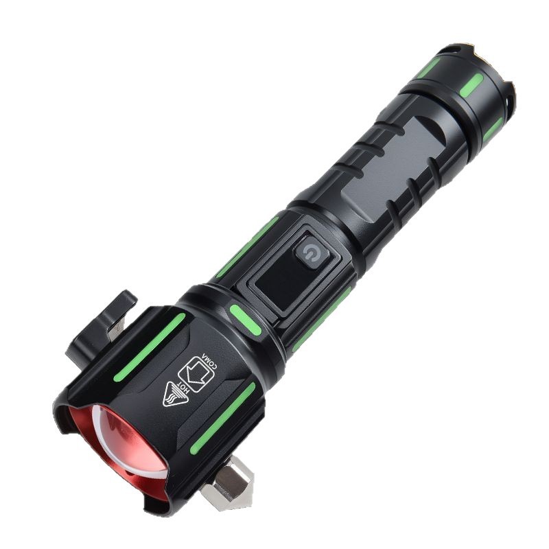 LED 알루미늄 합금 손전등, 강한 빛, 충전식, 긴 배터리 수명, 밝은 야외 자체 구조 안전 망치, 다기능 작업 조명