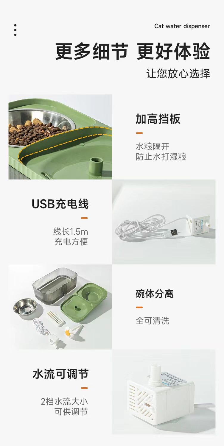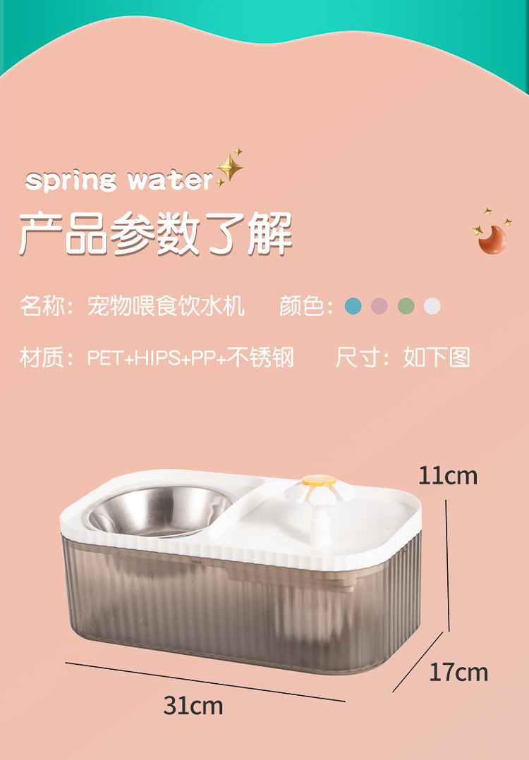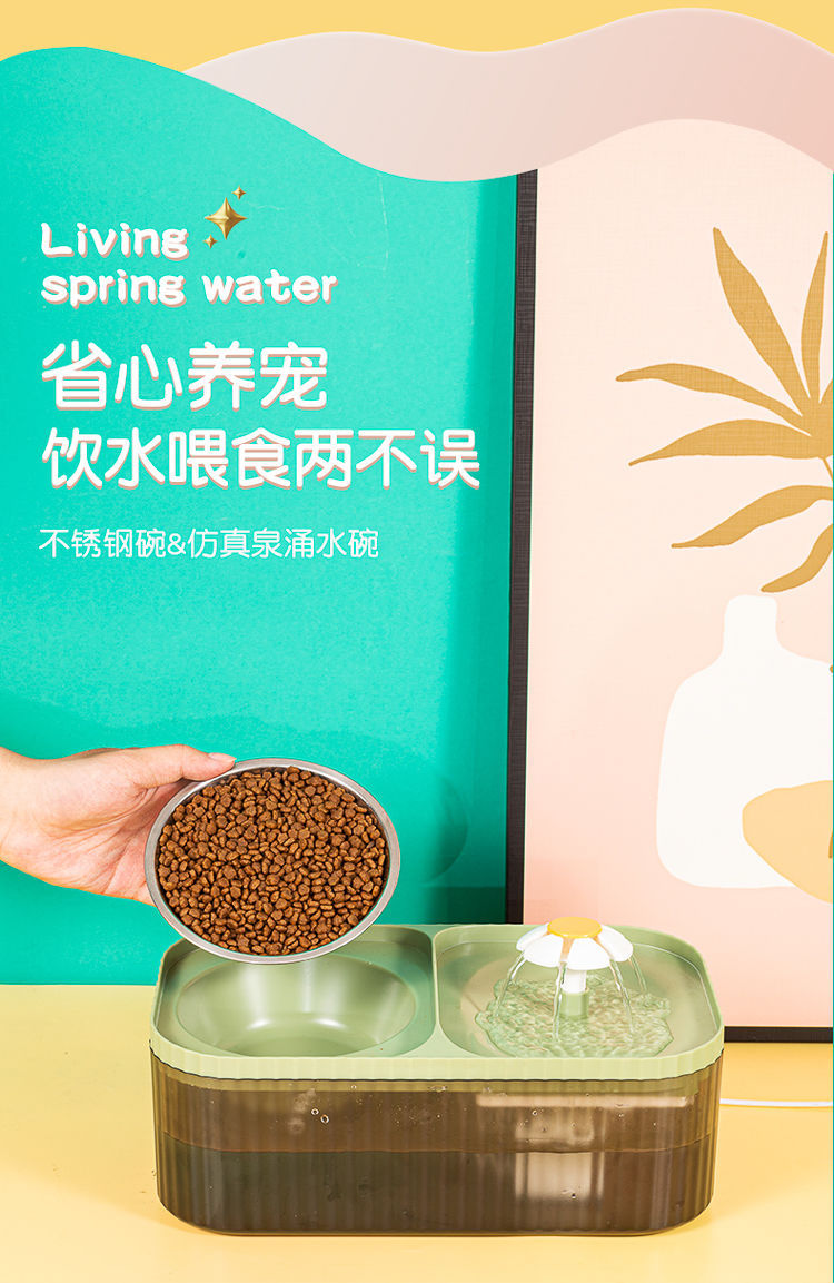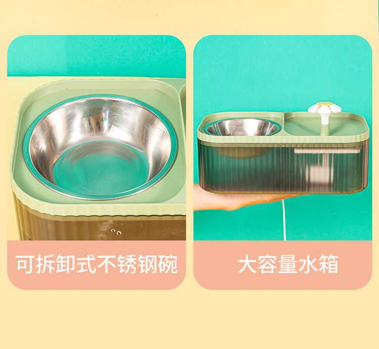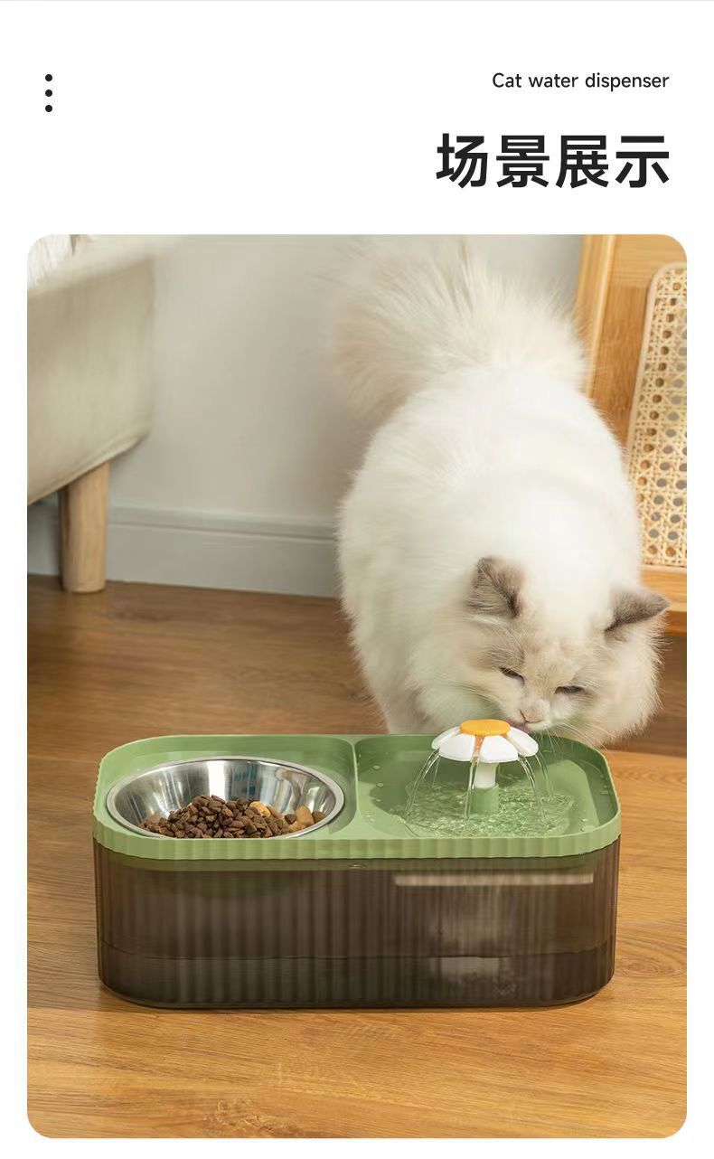고양이 정수기, 자동 순환 흐르는 생수 정수기, 먹이와 물을 주는 투인원 개 물통과 밥그릇