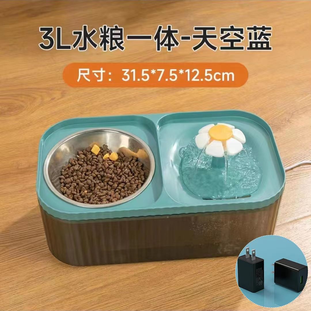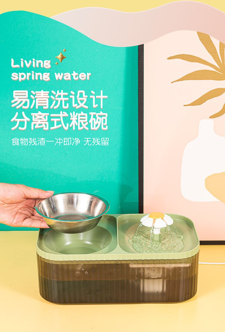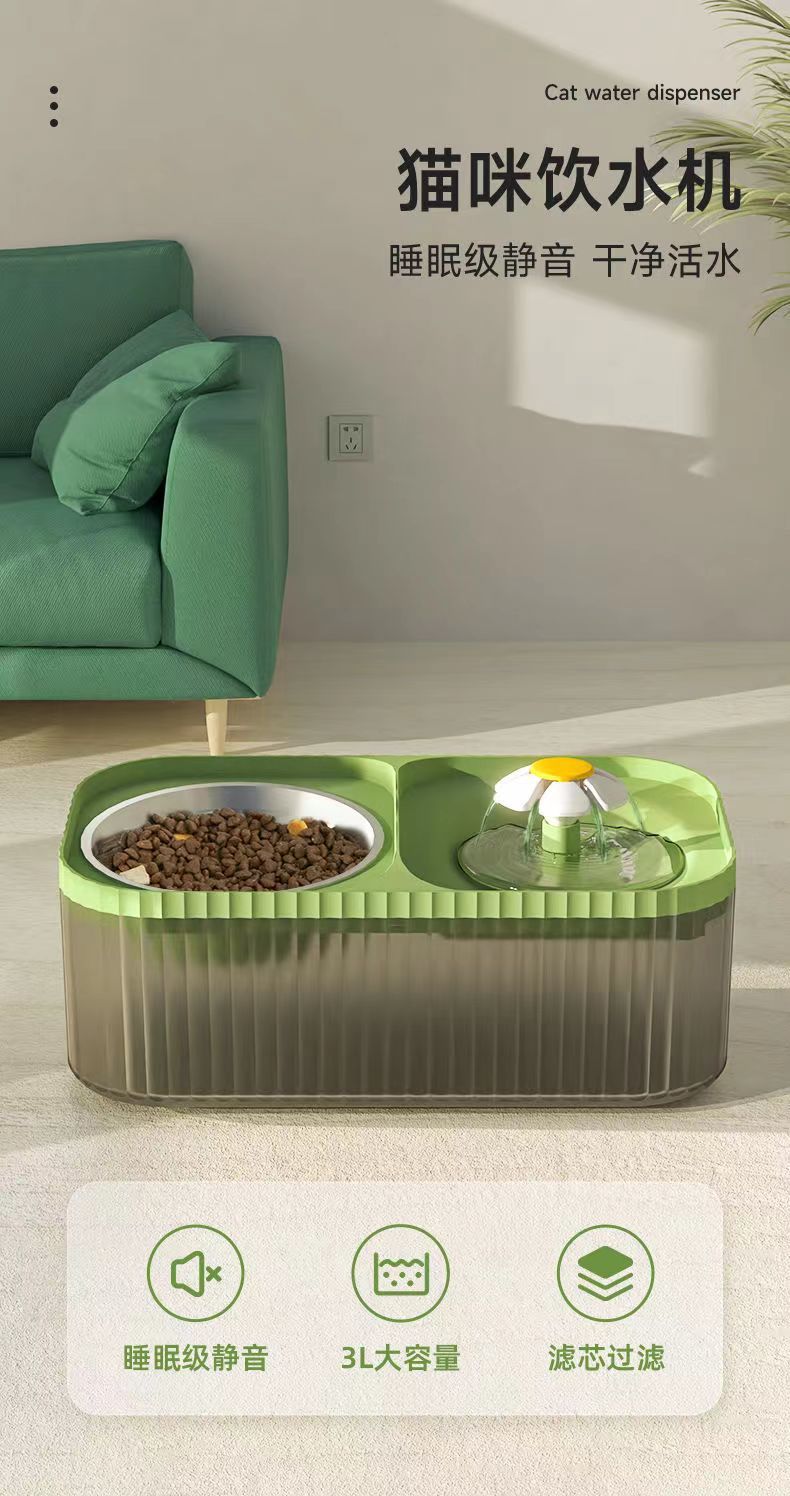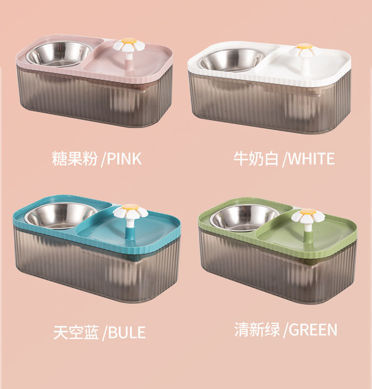 고양이 정수기, 자동 순환 흐르는 생수 정수기, 먹이와 물을 주는 투인원 개 물통과 밥그릇