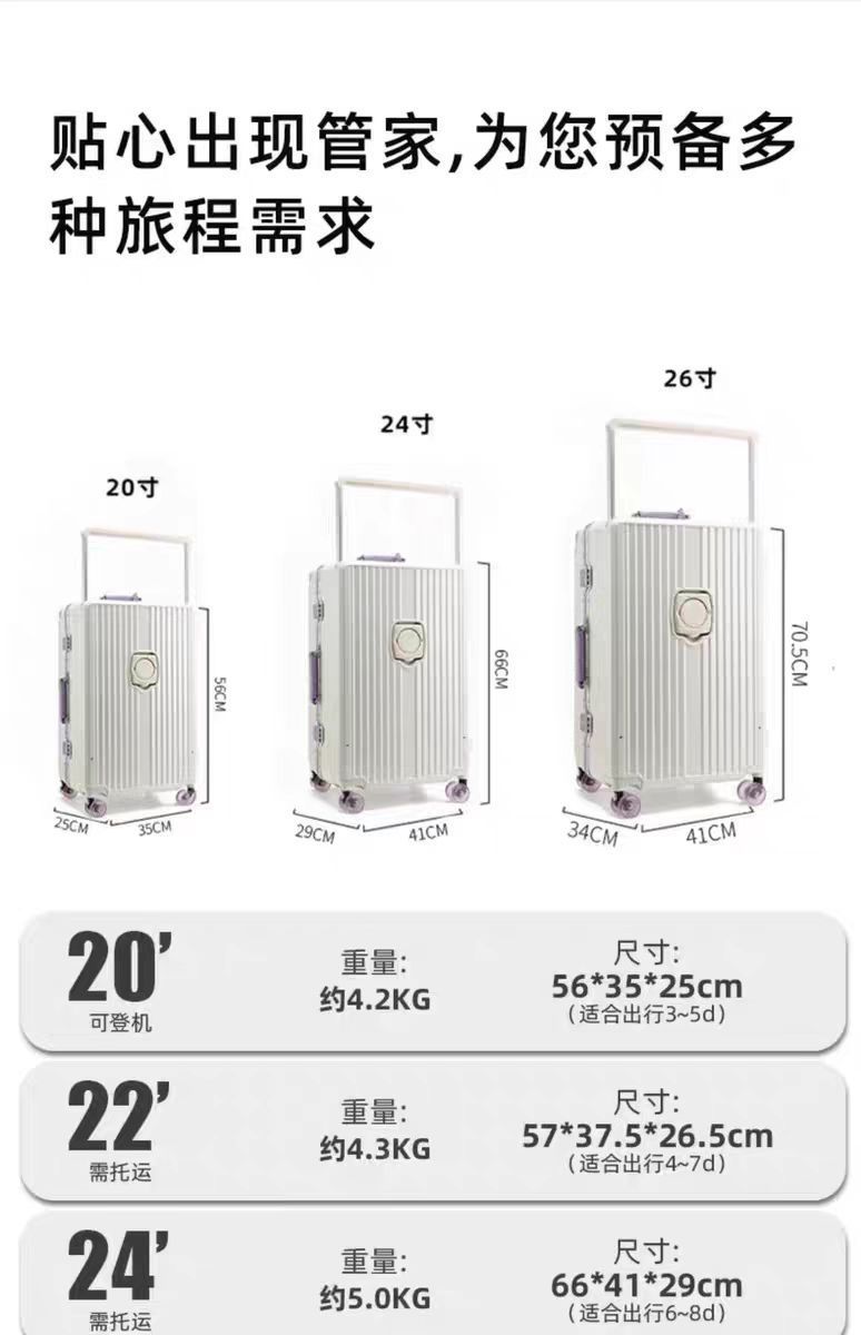 여성용 와이드 트롤리 가방 2025 새로운 스타일 20inch 탑승 케이스 무료 체크 코드 박스 소형 가방 트롤리 케이스스토어 가기
