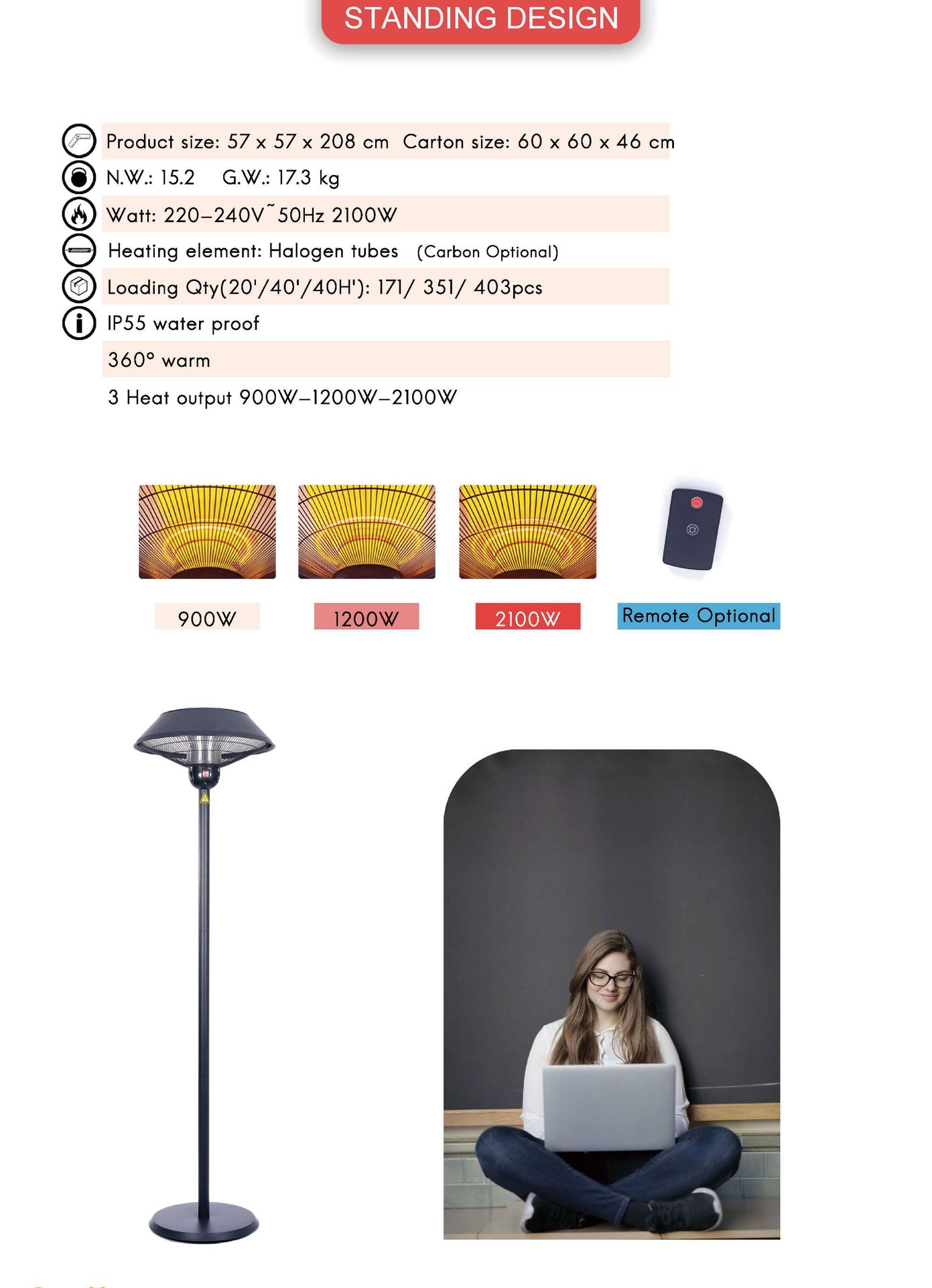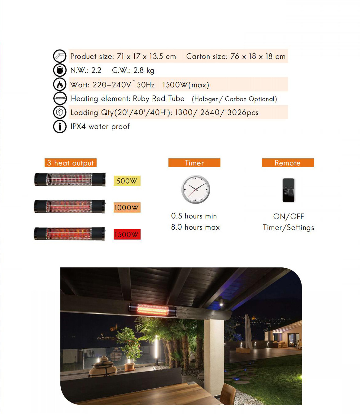 방수 벽걸이형 야외 안뜰 야외 크로스보더 Amazon 전용 고출력 전기 히터