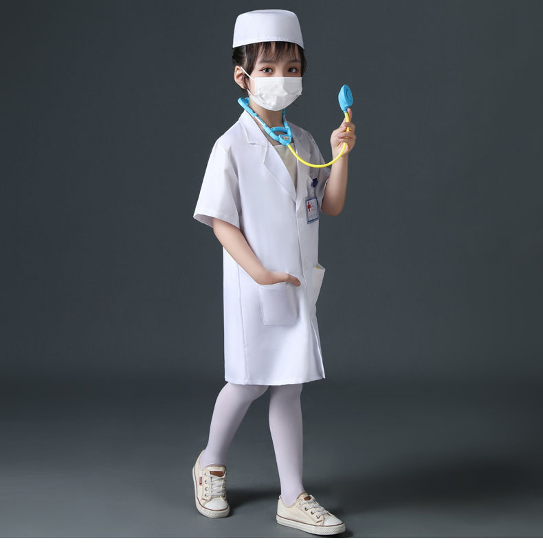 어린이 의사 간호사 정장 과학 실험 흰색 코트 의상 3-6 세 직업 놀이 집 역할 놀이 의상