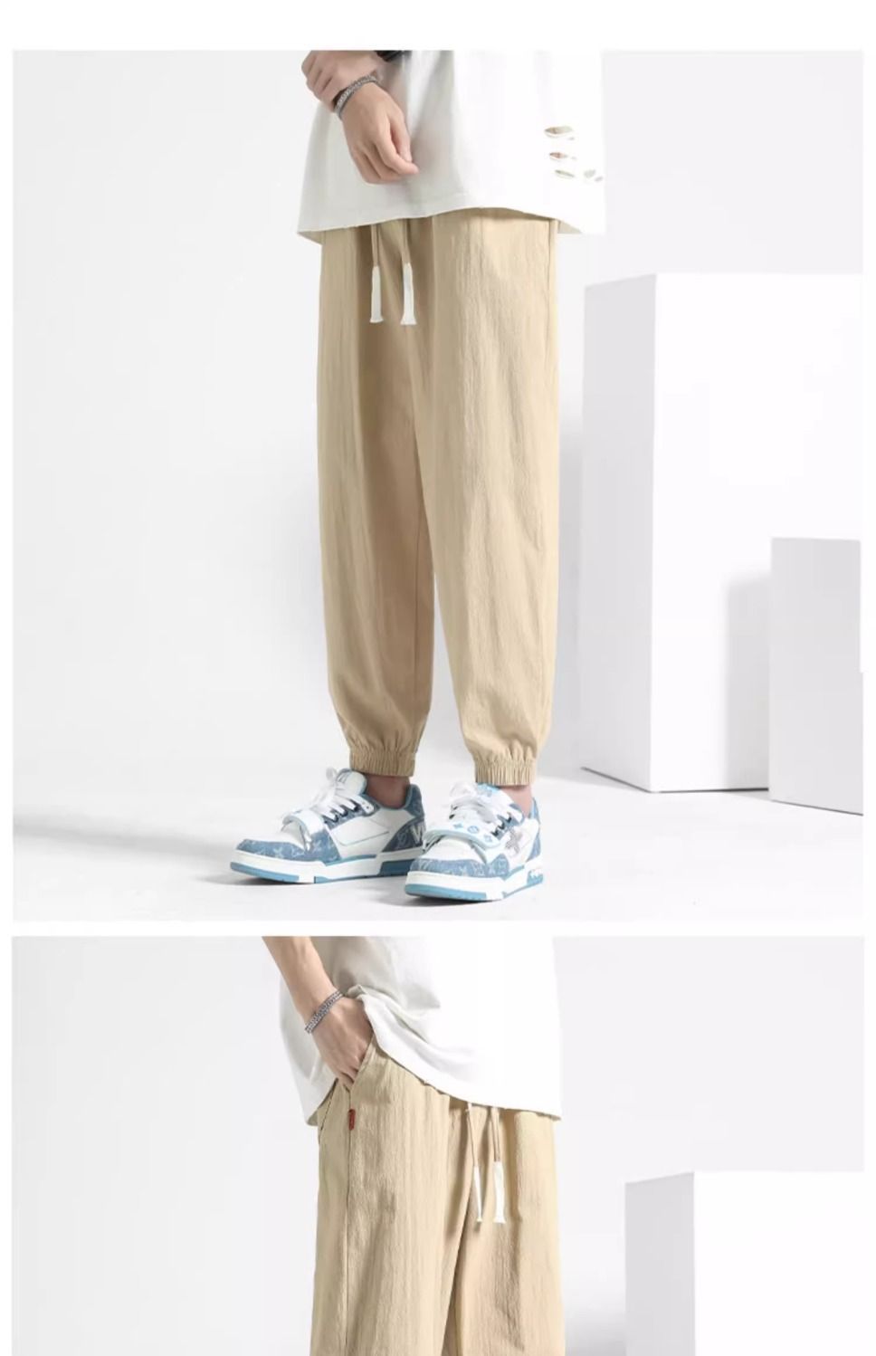 가을 겨울 남성용 일본 린넨 9부 팬츠 플러스 사이즈 플러스 사이즈 트렌디 와이드 레그 타이 작업복 플러스 벨벳 캐주얼 바지스토어 가기