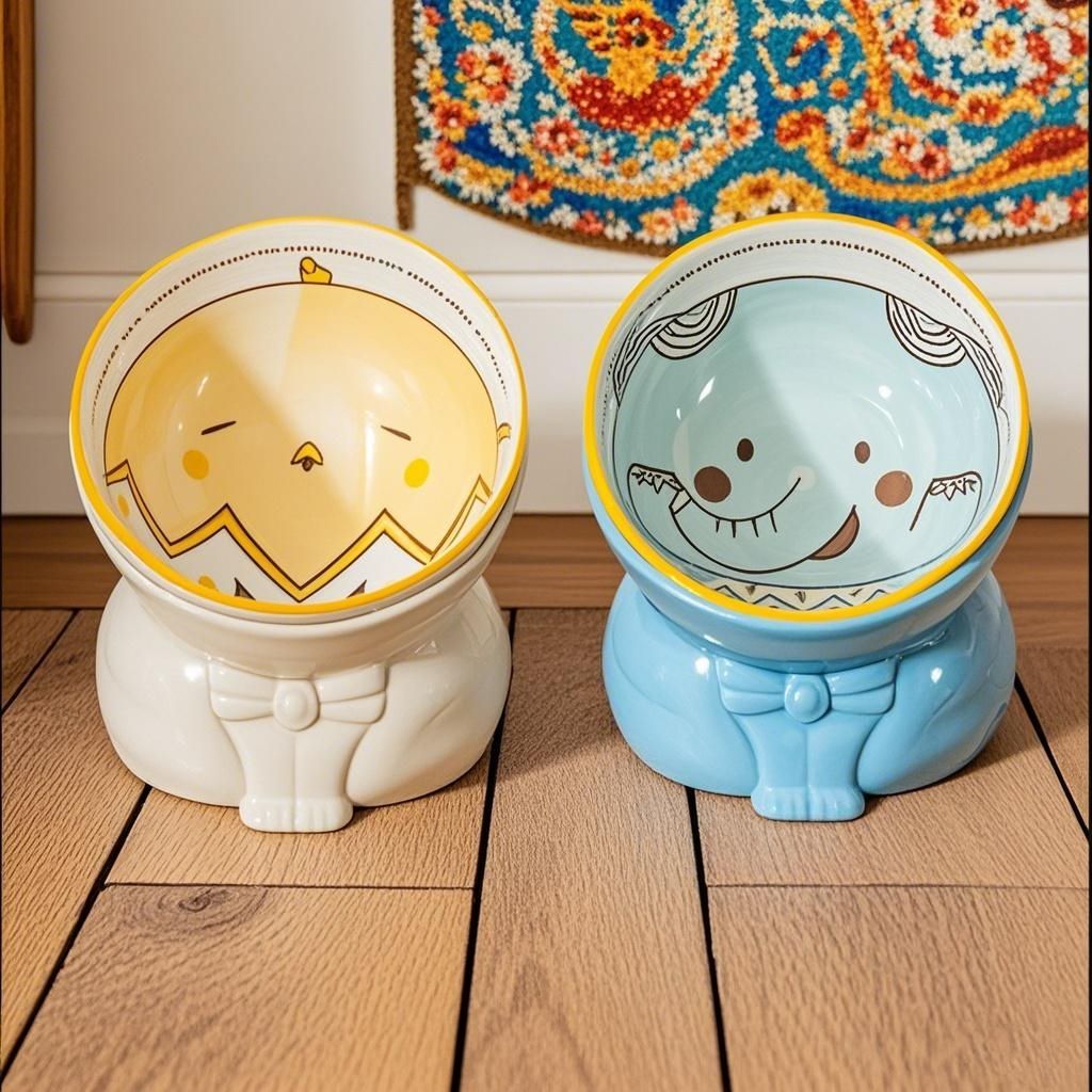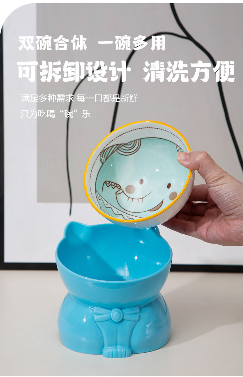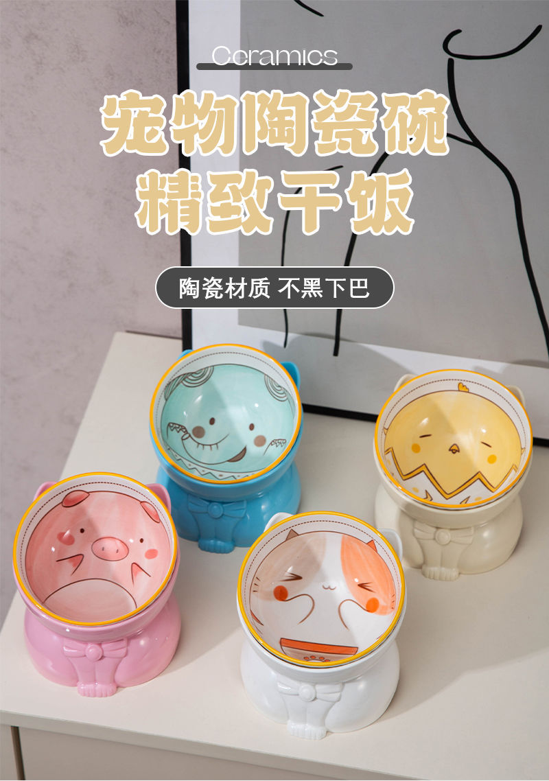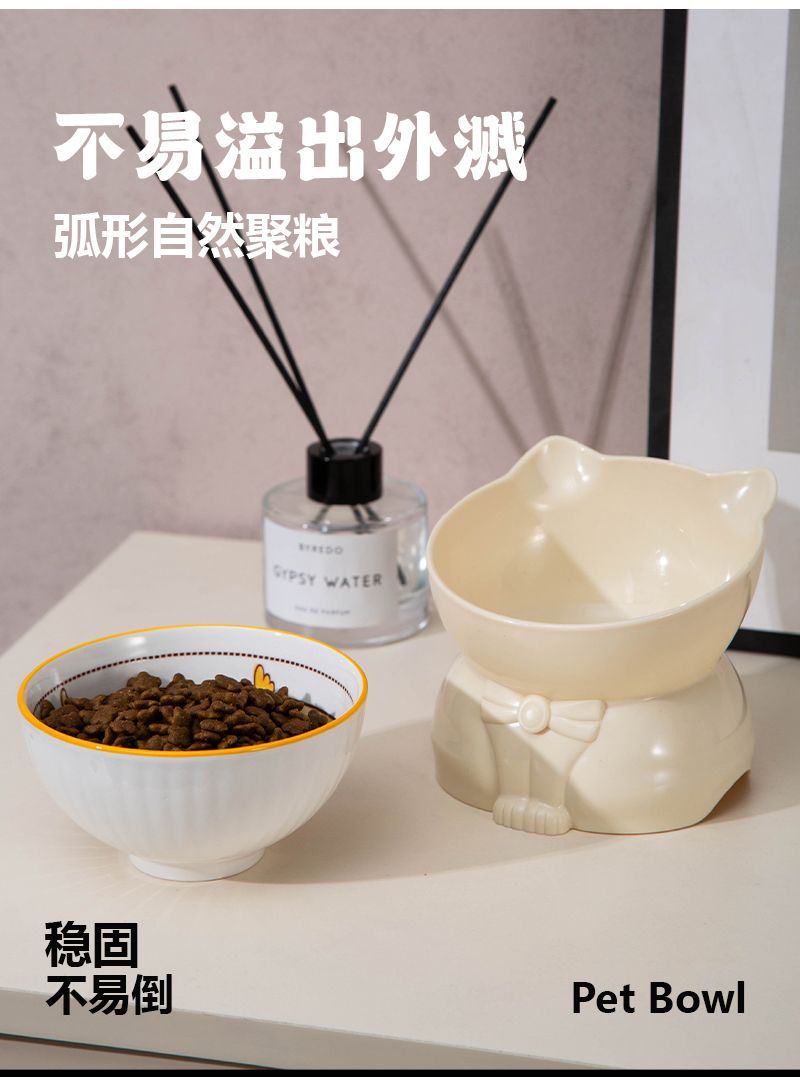 세라믹 고양이 그릇, 넘어짐 방지, 목 보호, 고양이 사료 그릇, 마시는 물, 높은 발, 고양이 사료 그릇, 경사진 입, 검은 턱 방지 고양이 밥 그릇스토어 가기