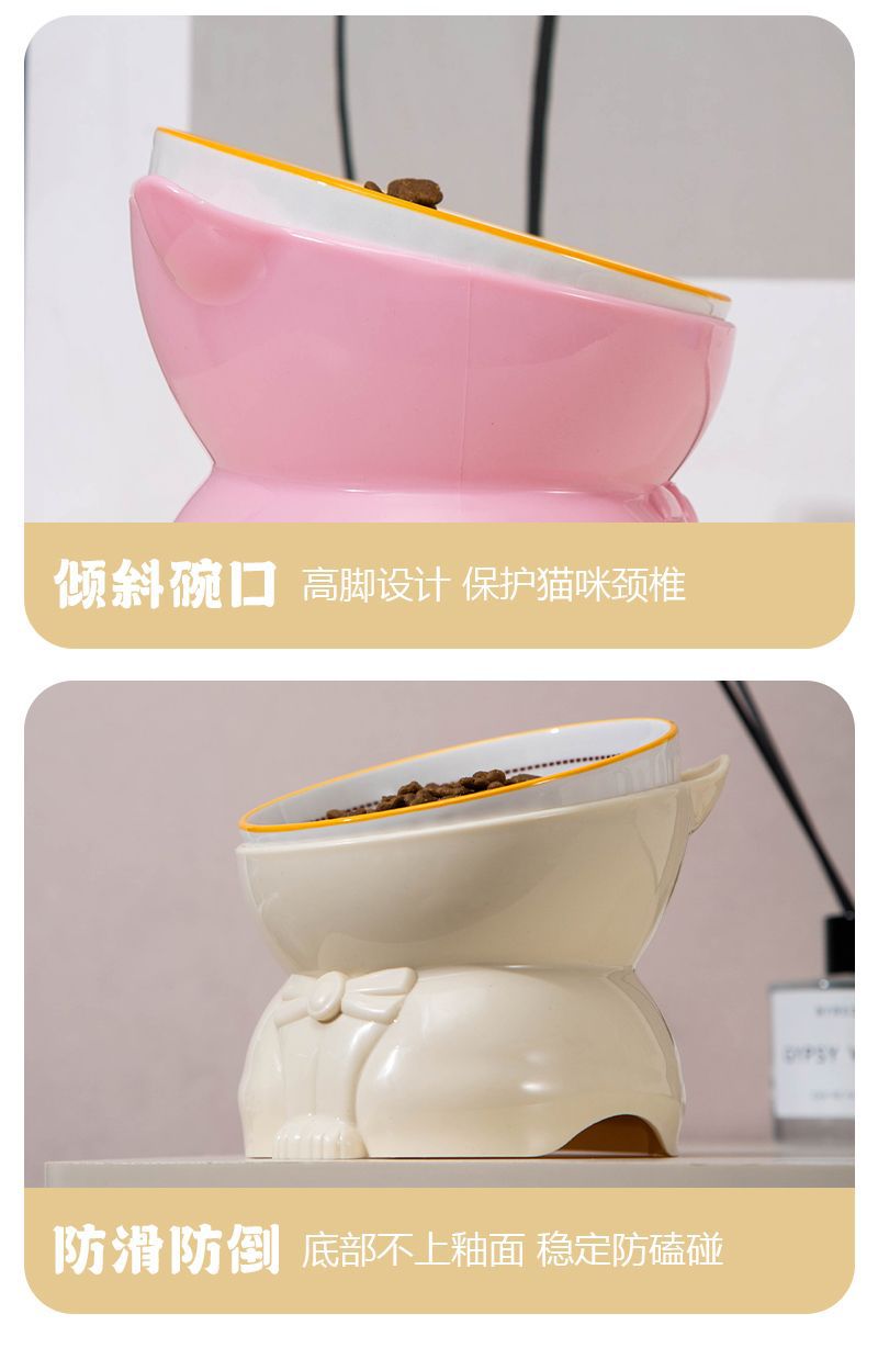 세라믹 고양이 그릇, 넘어짐 방지, 목 보호, 고양이 사료 그릇, 마시는 물, 높은 발, 고양이 사료 그릇, 경사진 입, 검은 턱 방지 고양이 밥 그릇