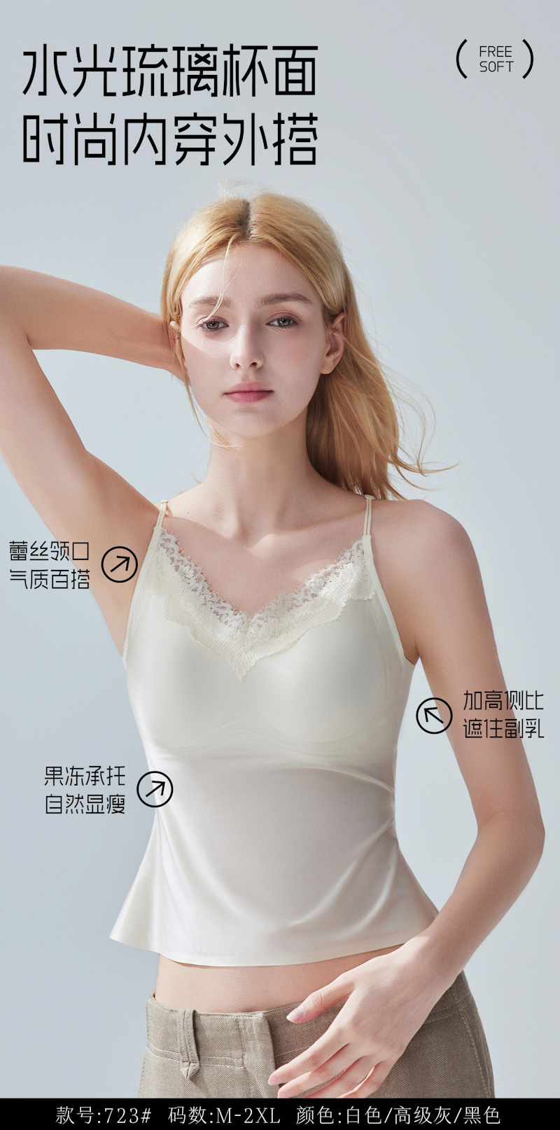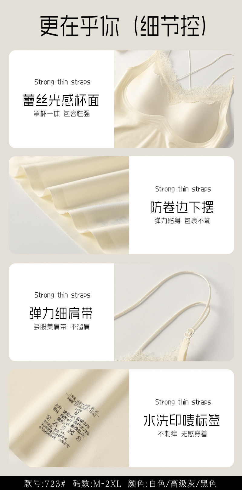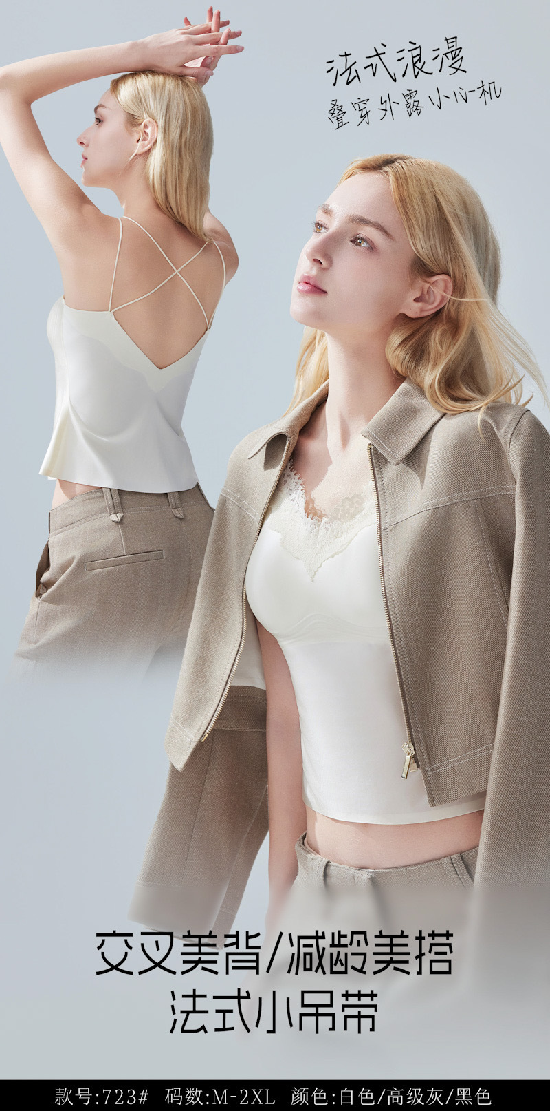 法式 V 领蕾丝+细肩带设计