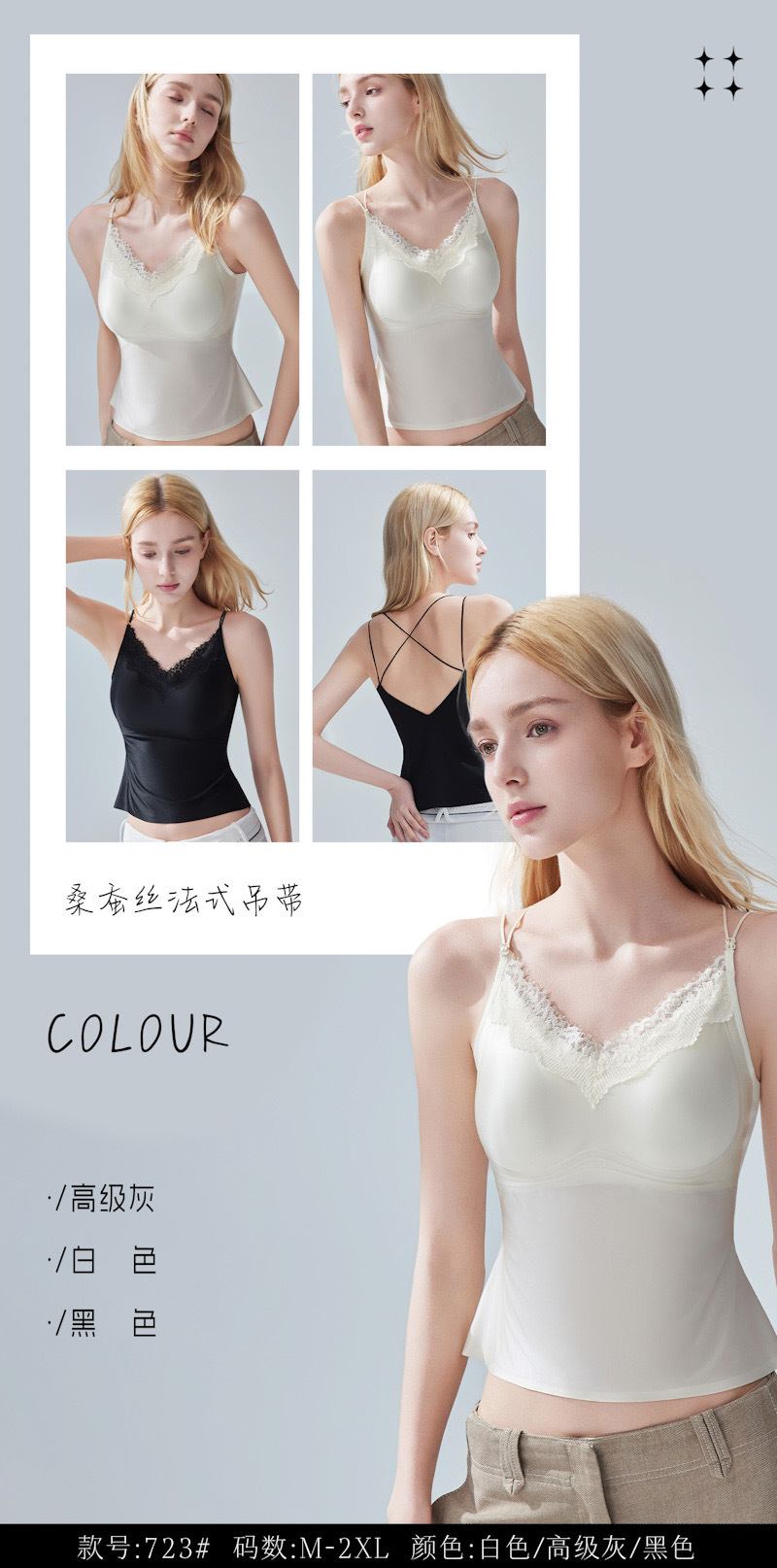 品名:水光琉璃~桑蚕丝法式吊带