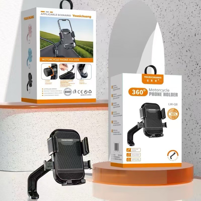 Uschuang LW-Q8 오토바이 백미러 브래킷 360도 회전 한 손으로 작동 1초 액세스 중력 감지