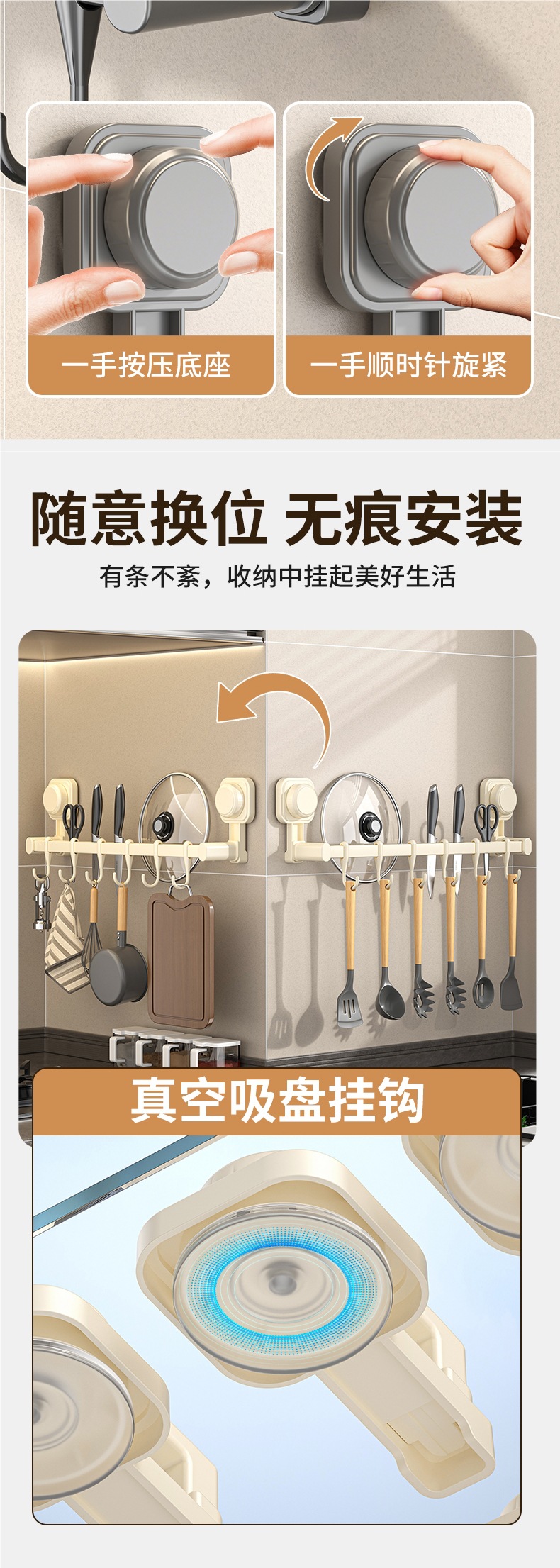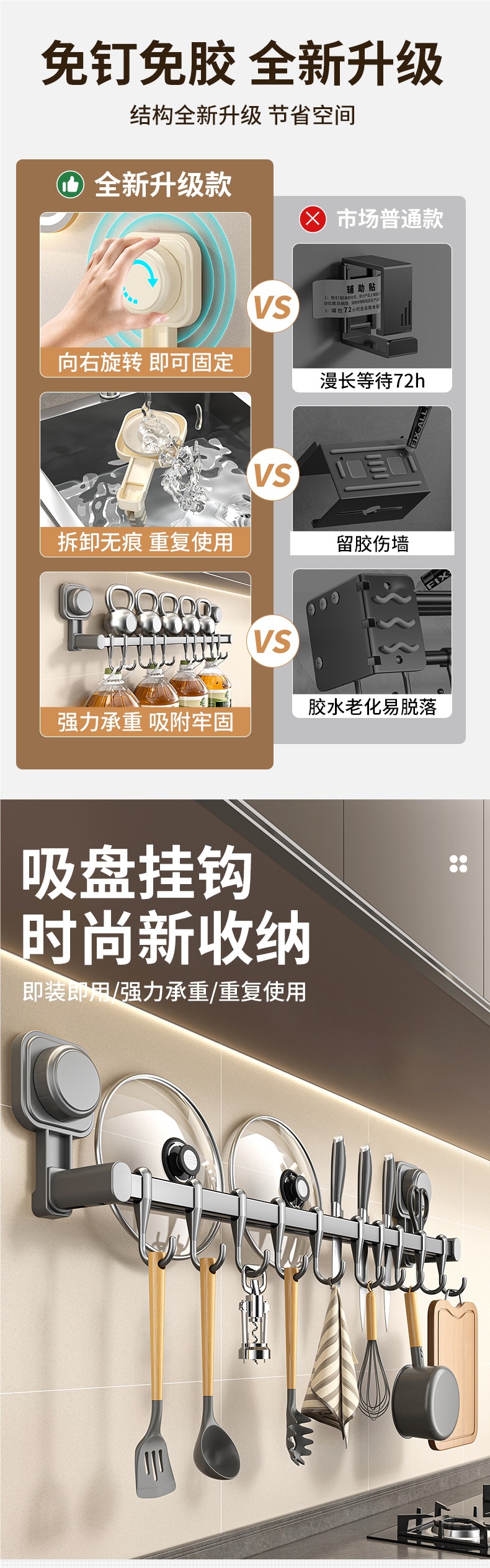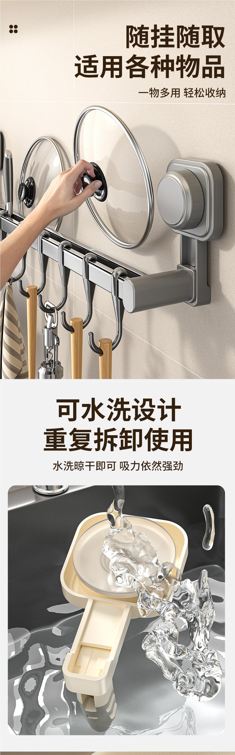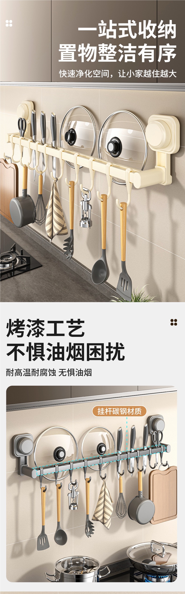 흡착식 주방후크, 펀치프리 걸이봉, 냄비뚜껑 수납선반, 행후크, 주걱, 스푼, 칼 수납선반, 다기능